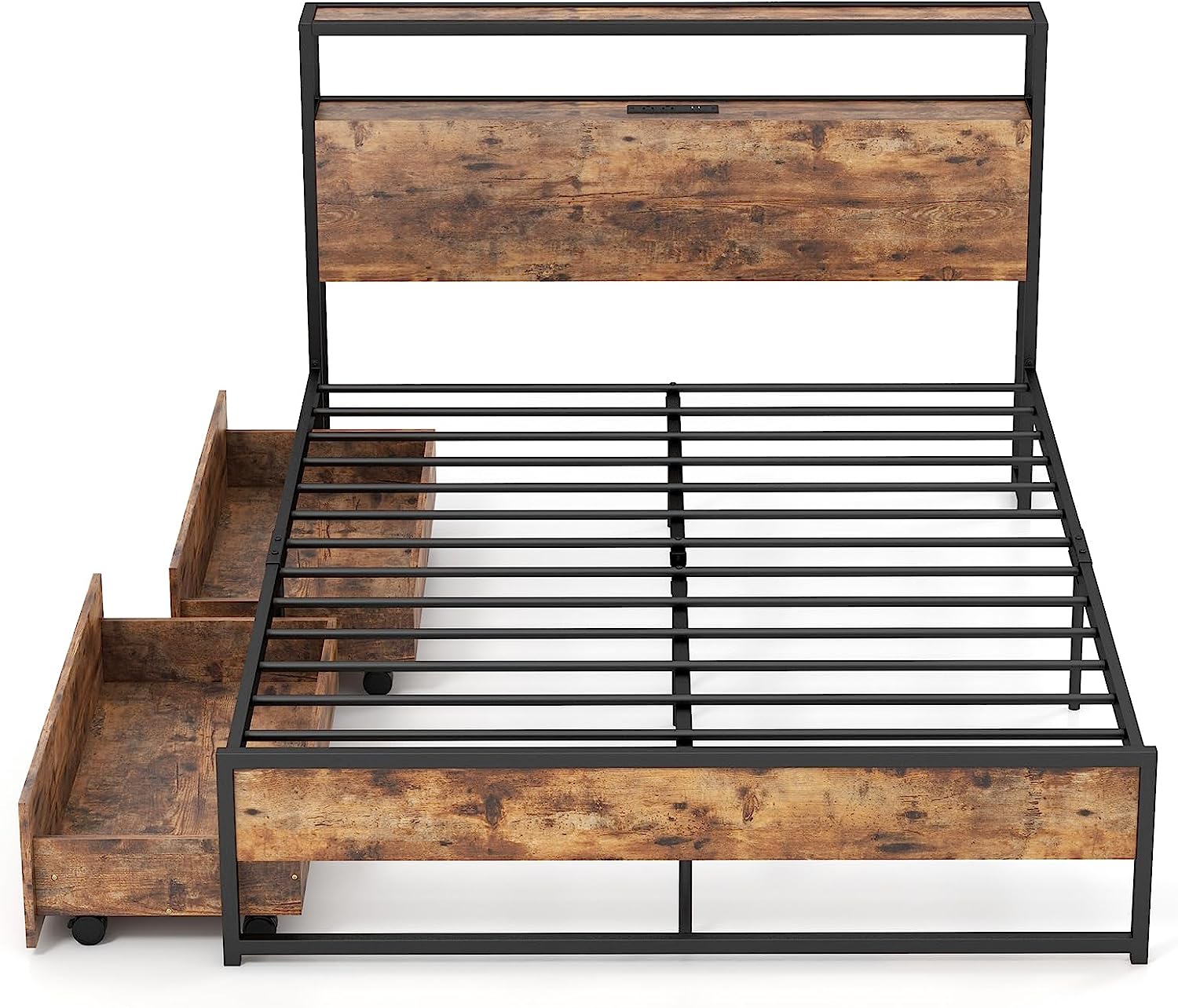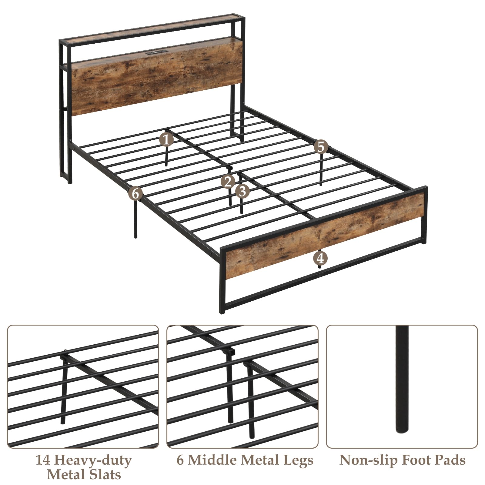 - [Industrial Style & Simple Assembly]: With industrial style and rustic surface, the bed frame is a piece of versatile furniture that goes well with different furnishing styles. By the way, all parts of the bed frame are clearly labeled to simplify the assembly process.