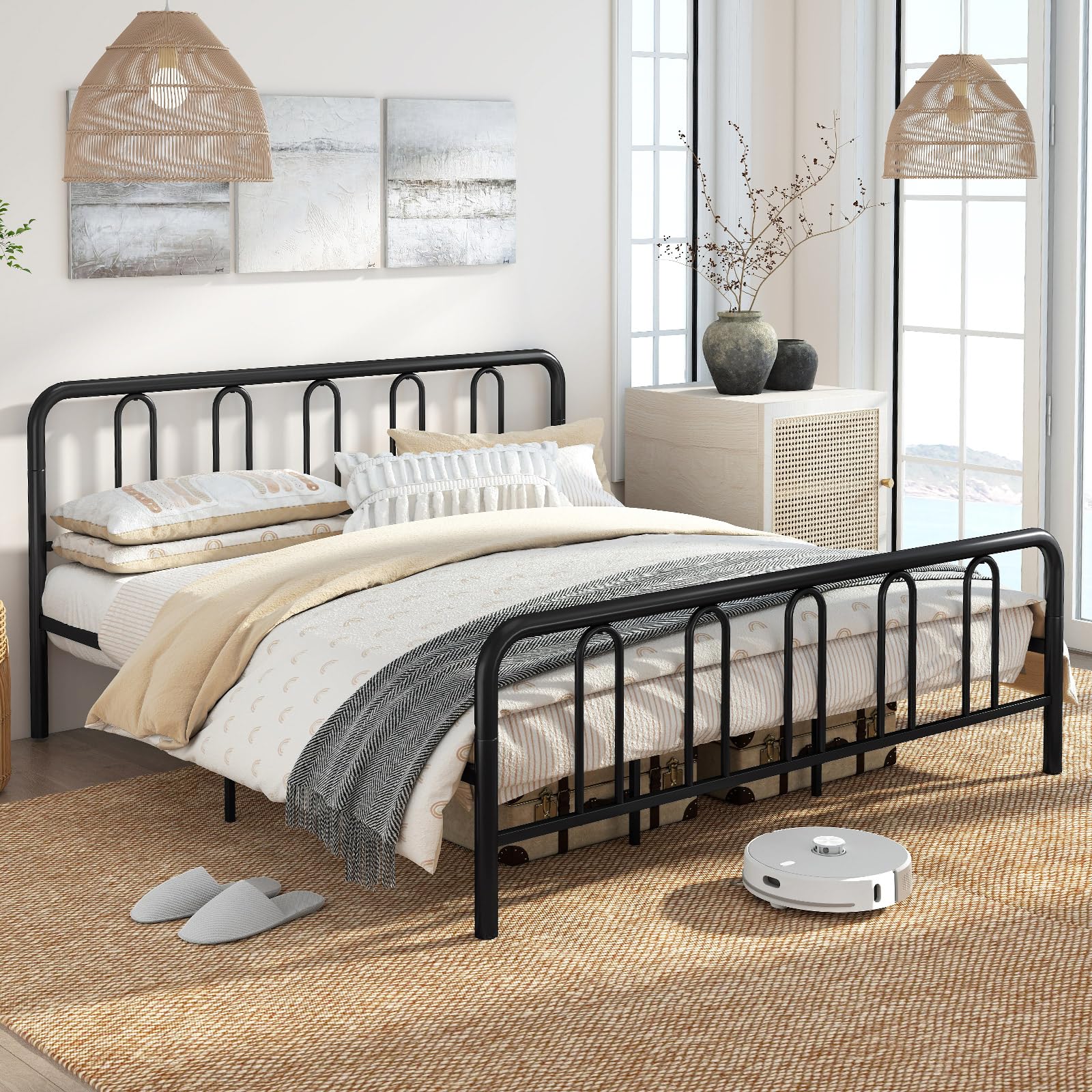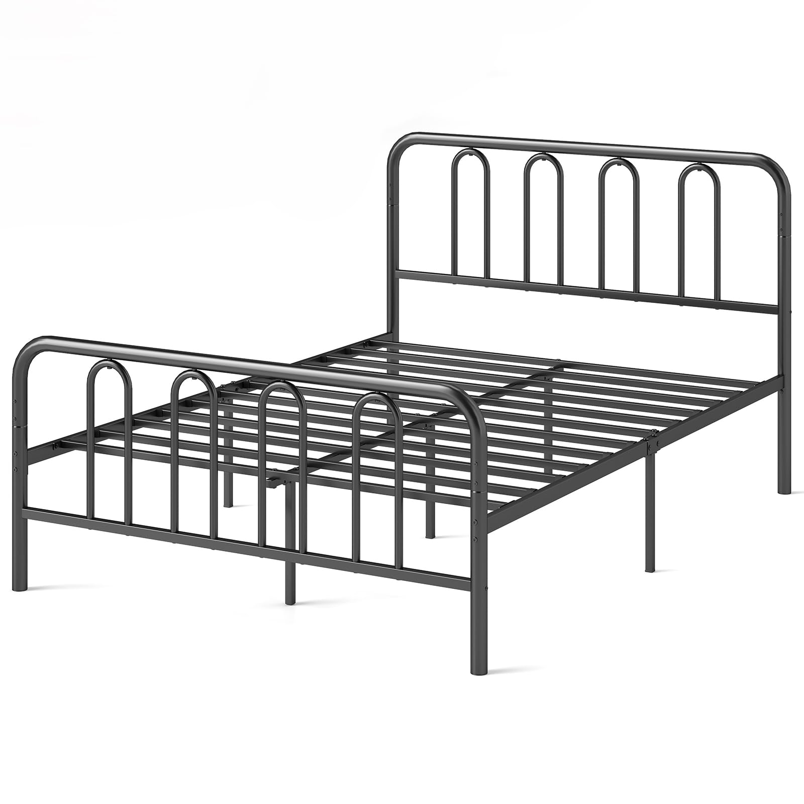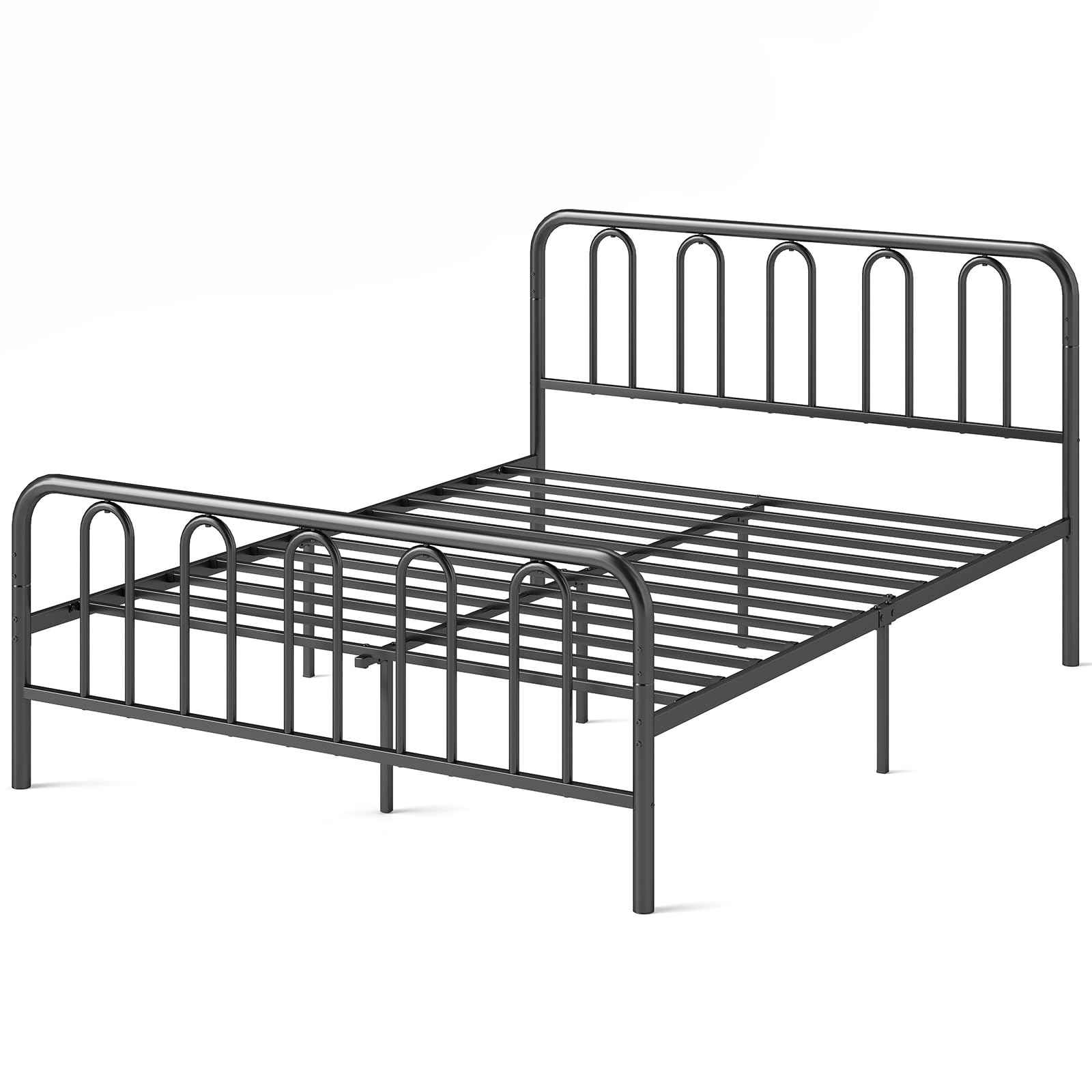 Discover the perfect blend of style, durability, and convenience with our metal platform bed. The modern design features an elegant headboard and footboard with safe rounded corners, enhancing the style and preventing bumps. Built to last, it supports up to 660 lbs and includes 9 sturdy legs for unmatched stability. Say goodbye to sleep interruptions with our special noise-free design, ensuring a serene slumber every night. Need storage? Enjoy 12 inches of under-bed space to declutter your life! Plus, setup is a snap—literally—with easy-to-place slats that support your mattress so well you won't need a box spring! Why wait? Make your sleep space dreamy and organized today!