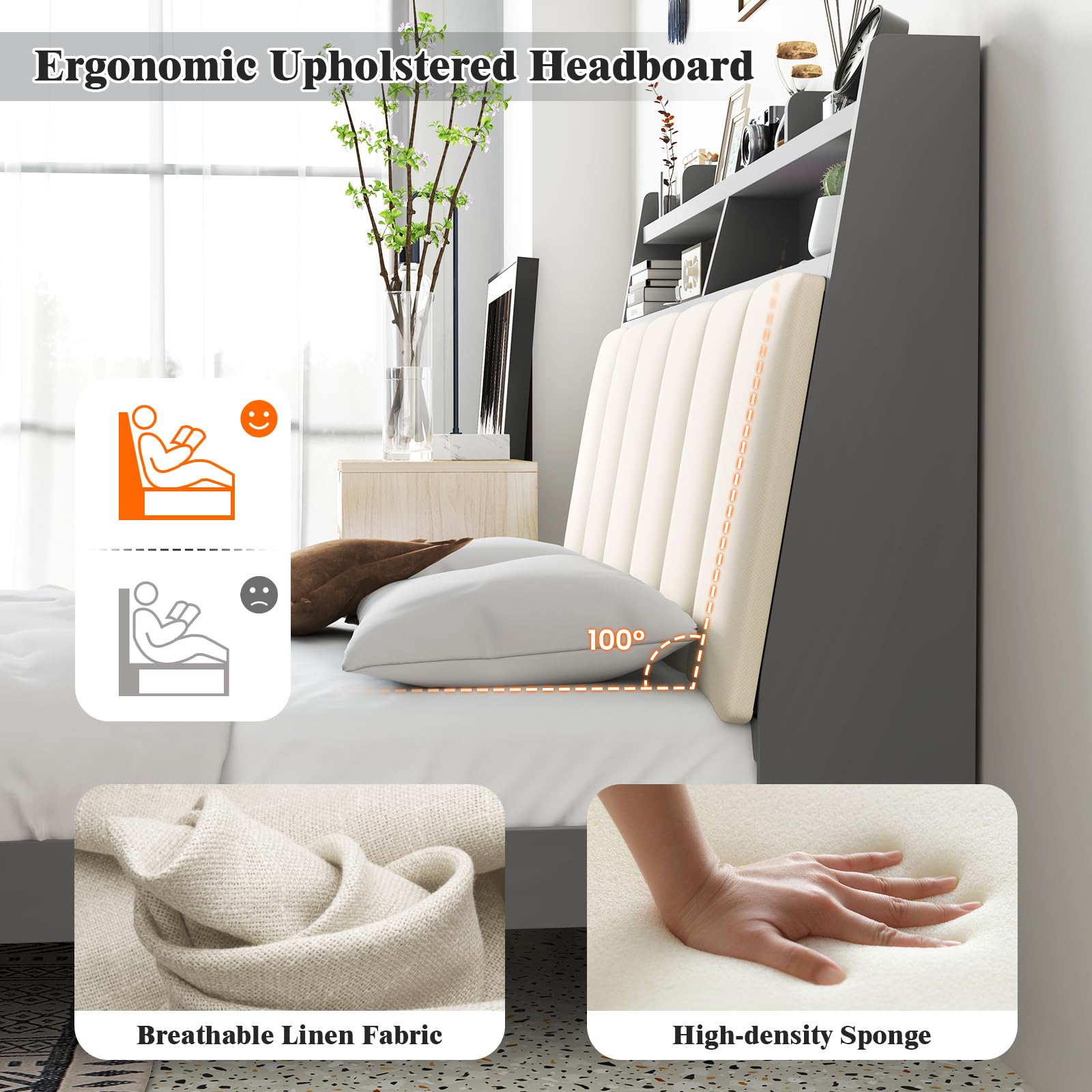 Ergonomic upholstered headboard with 100° tilting angle for comfortable leaning