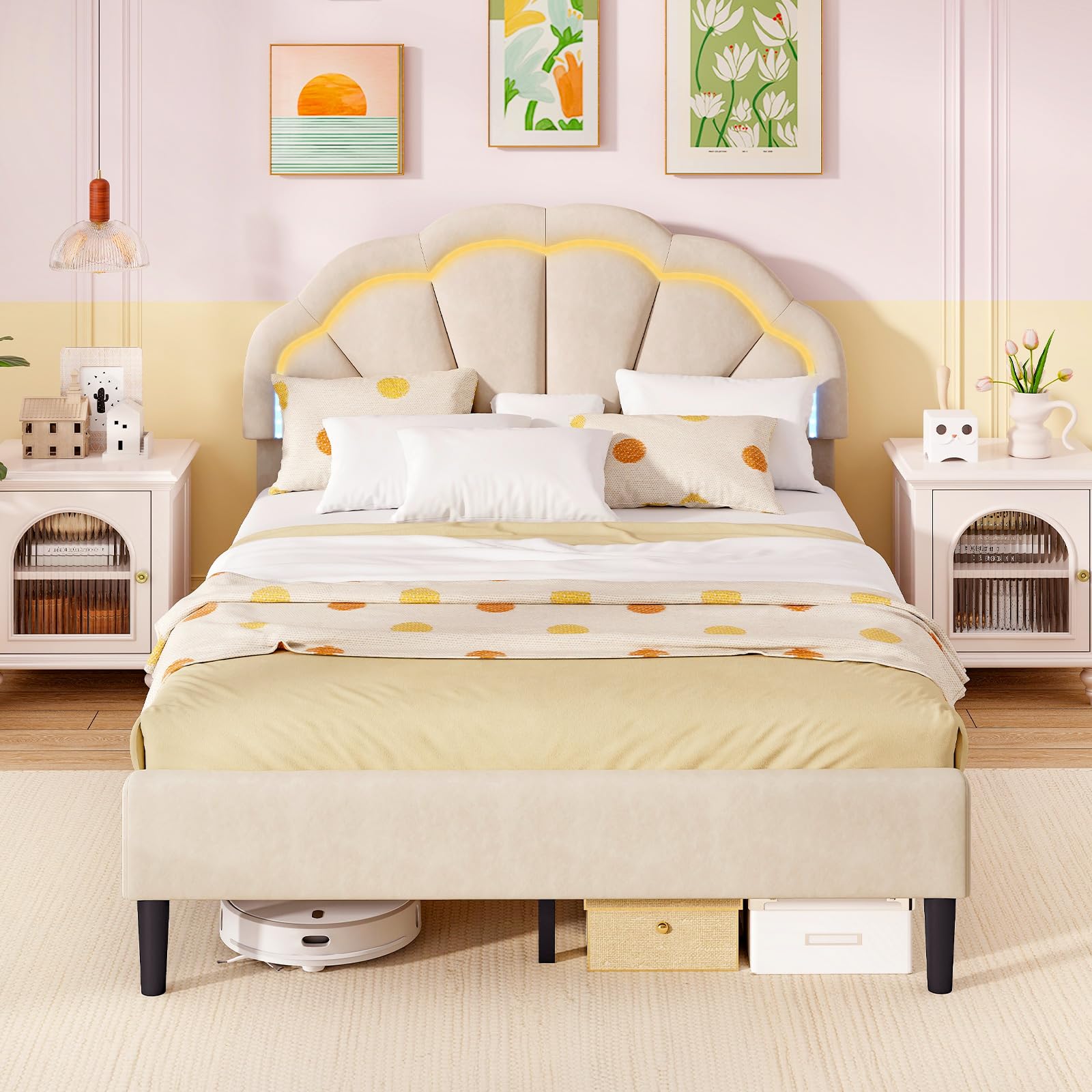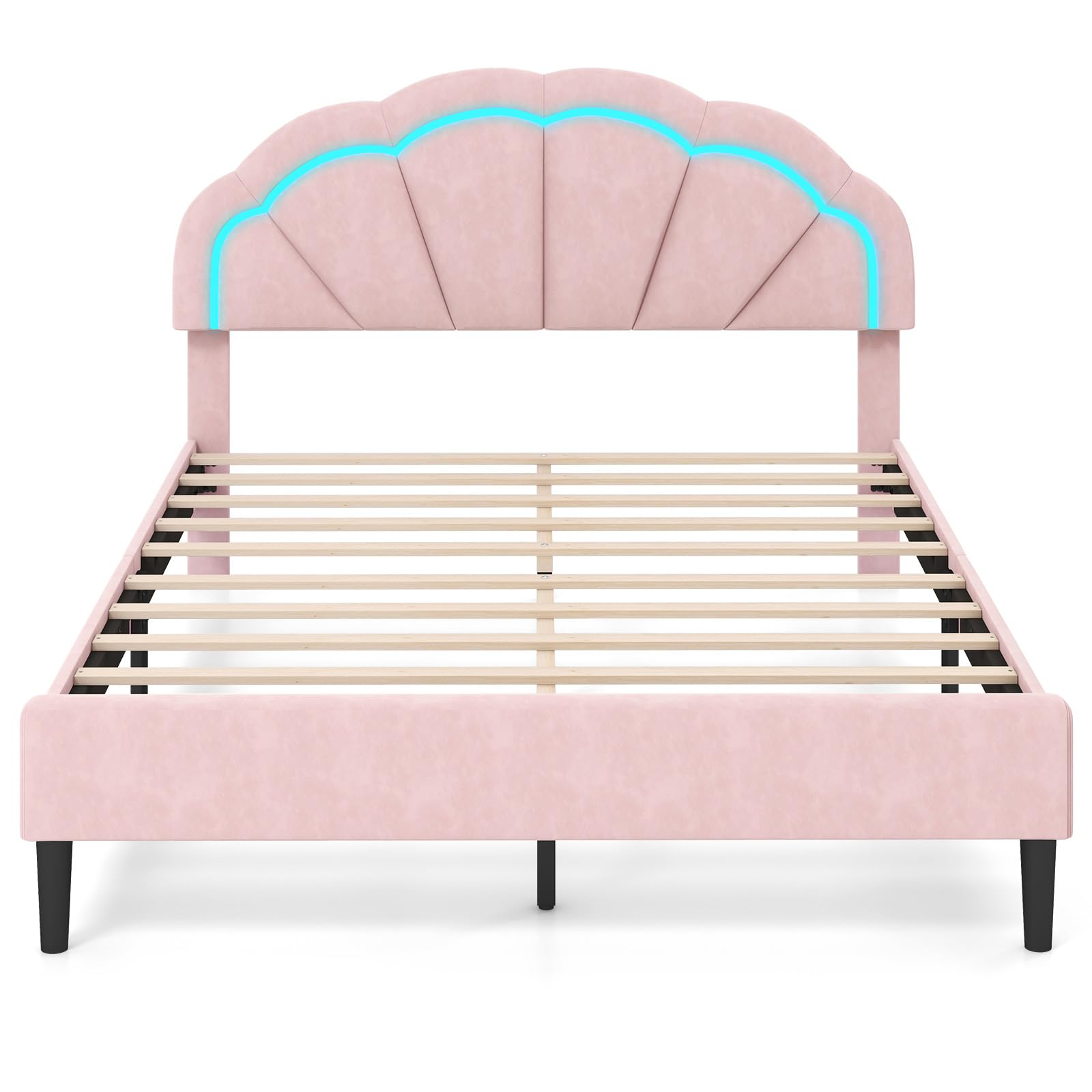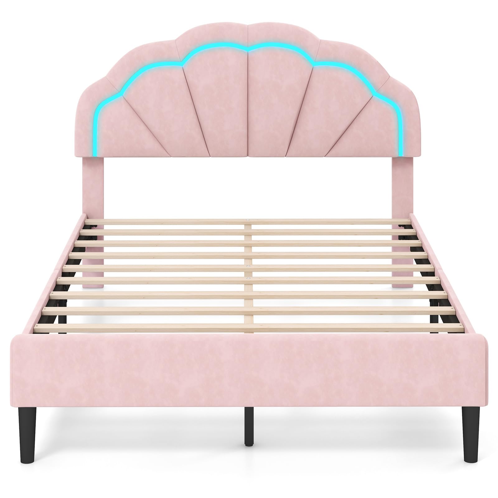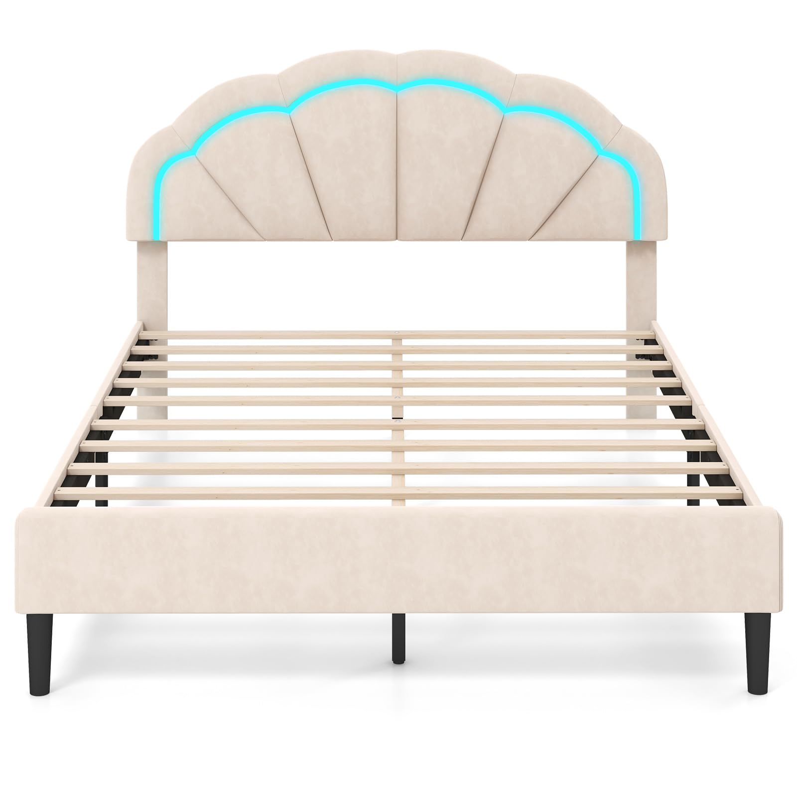 Featuring eye-catching LED lights, the platform bed brings an artistic and warm ambiance to your home. The flower pattern upholstered headboard offers you ultimate comfort. Besides, the headboard can be adjusted at 45.5"/48.5" to meet different sleeping needs. There are 3 sizes for you to choose: twin size, full size and queen size. The recommended mattress thickness is 8"-10" (Not Included).