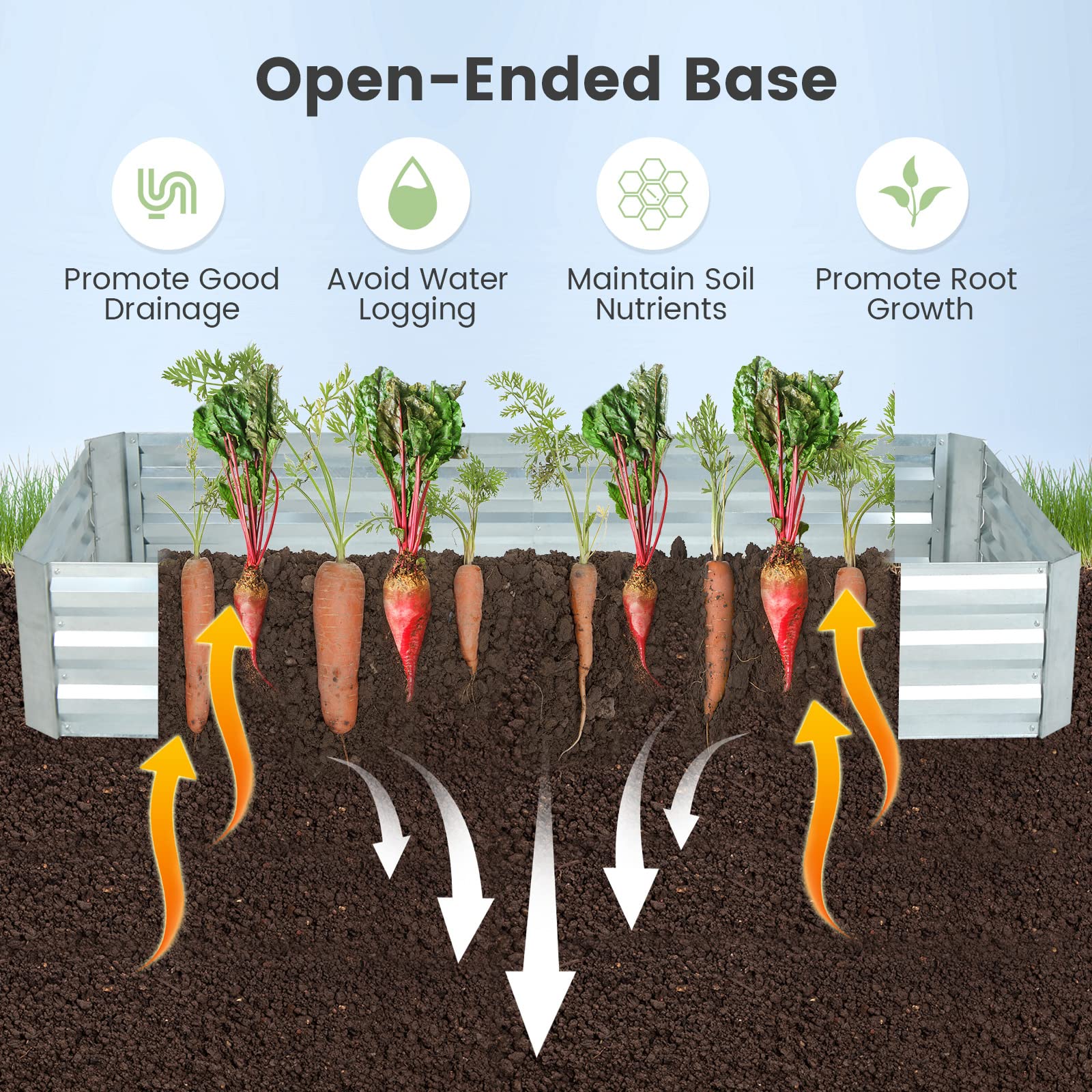 - [Open-Ended Base]: The raised garden planter box adopts an open-ended base, which can facilitate the replacement of fresh oxygen in the soil, promoting root growth. More than that, it can also promote good drainage, avoid water logging, and maintain soil nutrients.