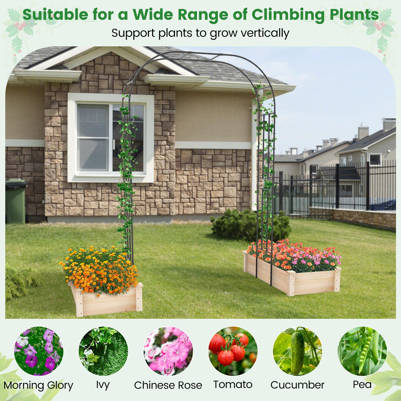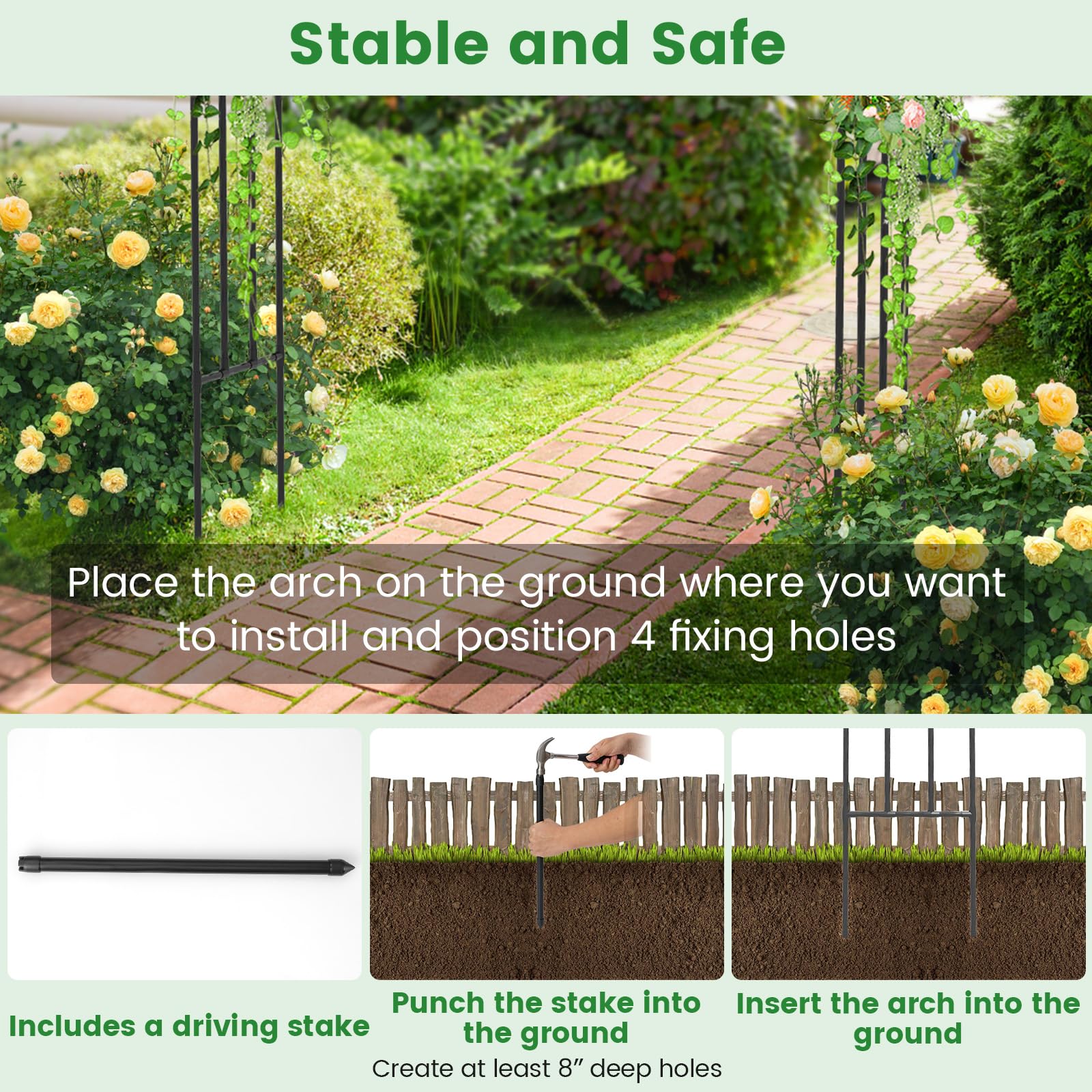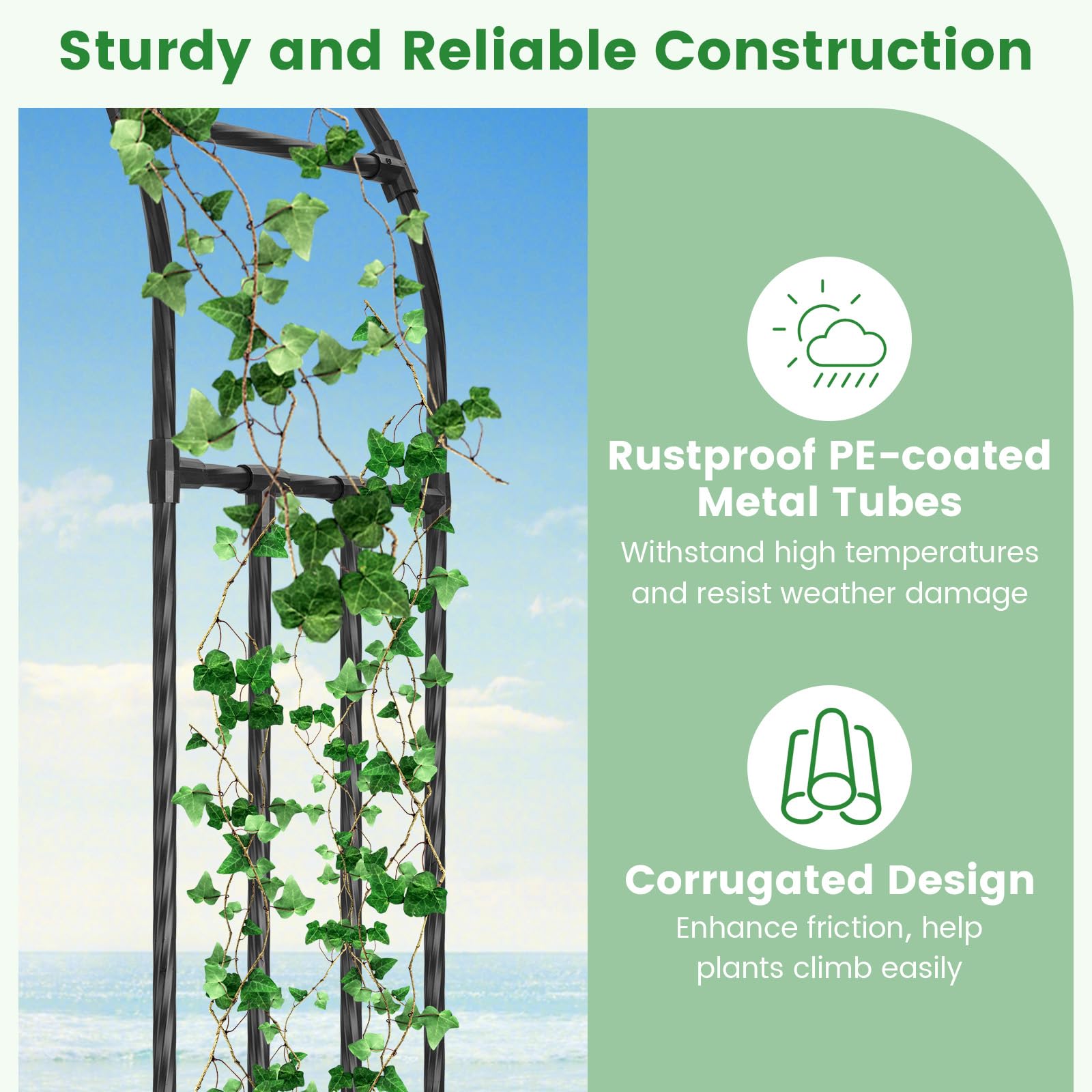 Personalize the arch with balloons, string lights, or tulle to create a stunning centerpiece for birthdays, weddings, or other special occasions. Crafted from durable PE-coated metal tubes, this trellis resists rust and water damage, ensuring long-lasting performance while protecting plants from overheating. The corrugated tube design also provides an ideal surface for plants to climb and flourish. For added stability, the trellis must be anchored into the ground, and a driving stake is included to pre-drill the necessary holes. Whether for practical use or decoration, this garden arch trellis is a perfect way to enhance your outdoor space.
