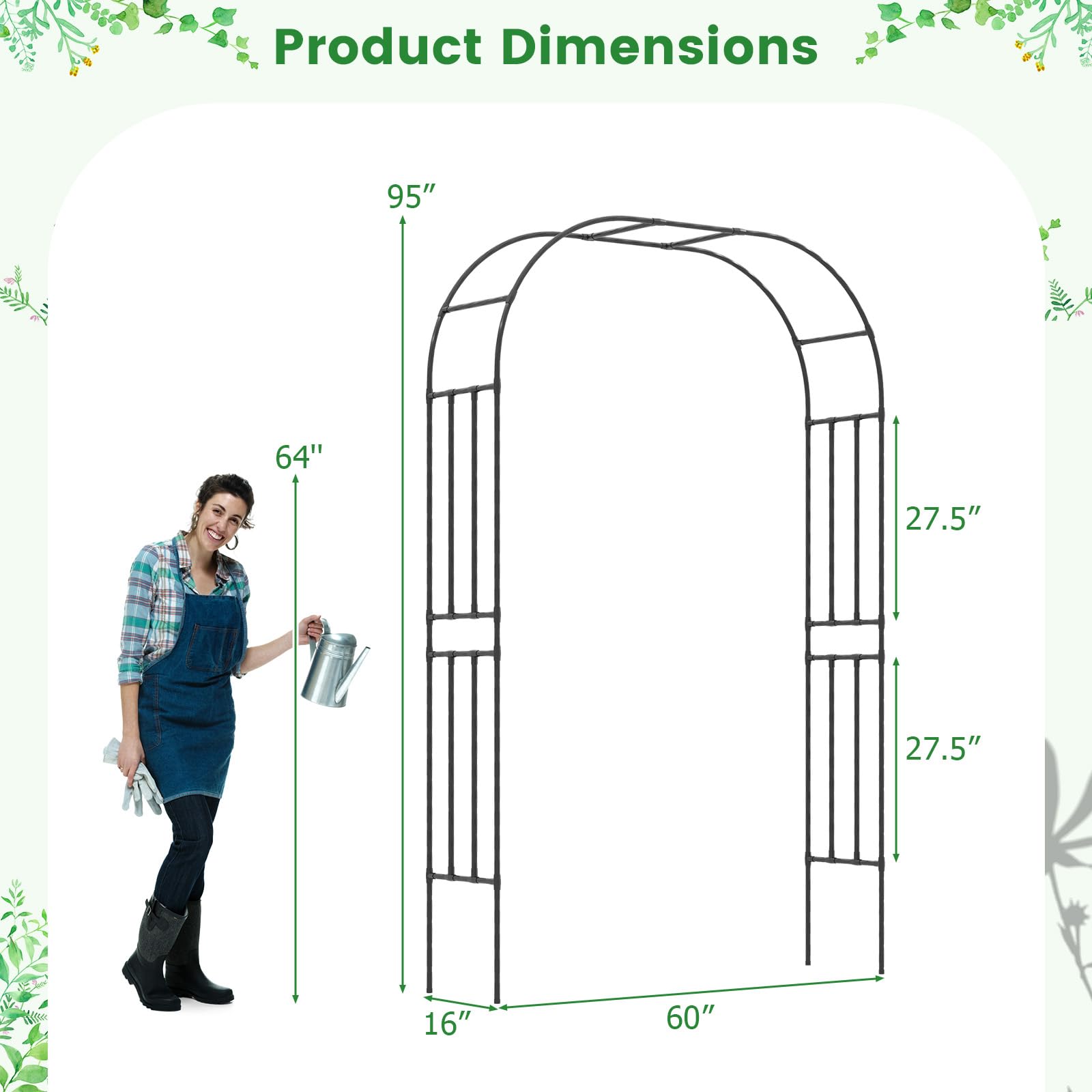 Transform your outdoor space with our deluxe garden arch trellis, measuring 60'' x 16'' x 95'' (L x W x H). This versatile trellis provides ample space for supporting a variety of climbing plants, including vibrant roses, lush ivy, and delicate morning glories. Beyond its practical use, the trellis also serves as a decorative focal point, making it the perfect entrance to your garden, yard, or lawn.