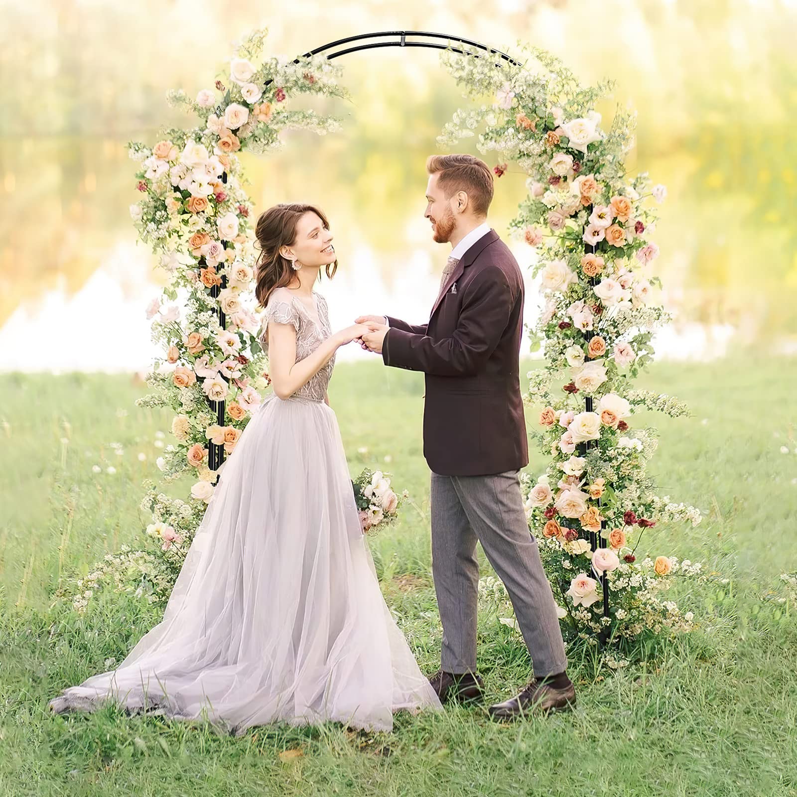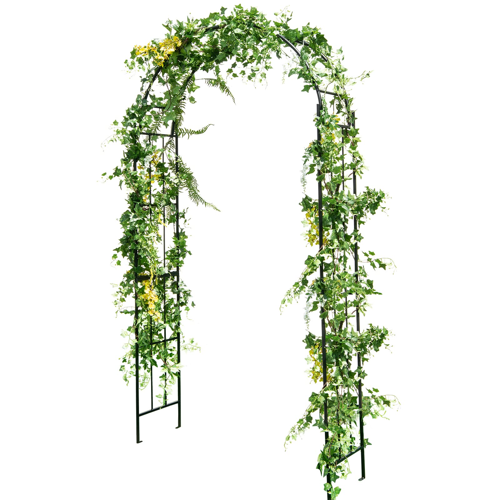 This garden arch arbor trellis (43.5"L x 14"W x 90.5"H) is perfect for climbing plants and adds a charming entrance to your outdoor space. Decorate it with balloons, lights, or tulle for special occasions. The metal frame is strong, and rust-resistant, and comes with stakes for added stability. Add a romantic touch to your garden with this decorative trellis!