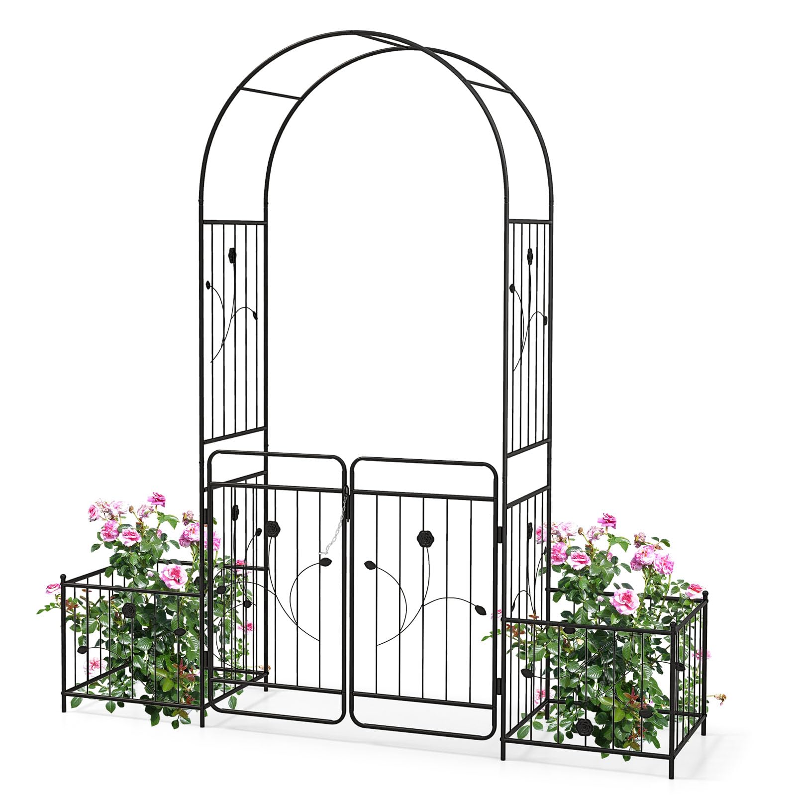 Enhance your garden with our 87-inch tall garden arbor, a elegant centerpiece to elevate your outdoor space. Crafted in durable galvanized metal with a powder coating finish, this arbor features planters and trellises perfect for vibrant blossoms and climbing ivies. The gate adds a touch of charm, creating a magical entrance to your garden retreat.