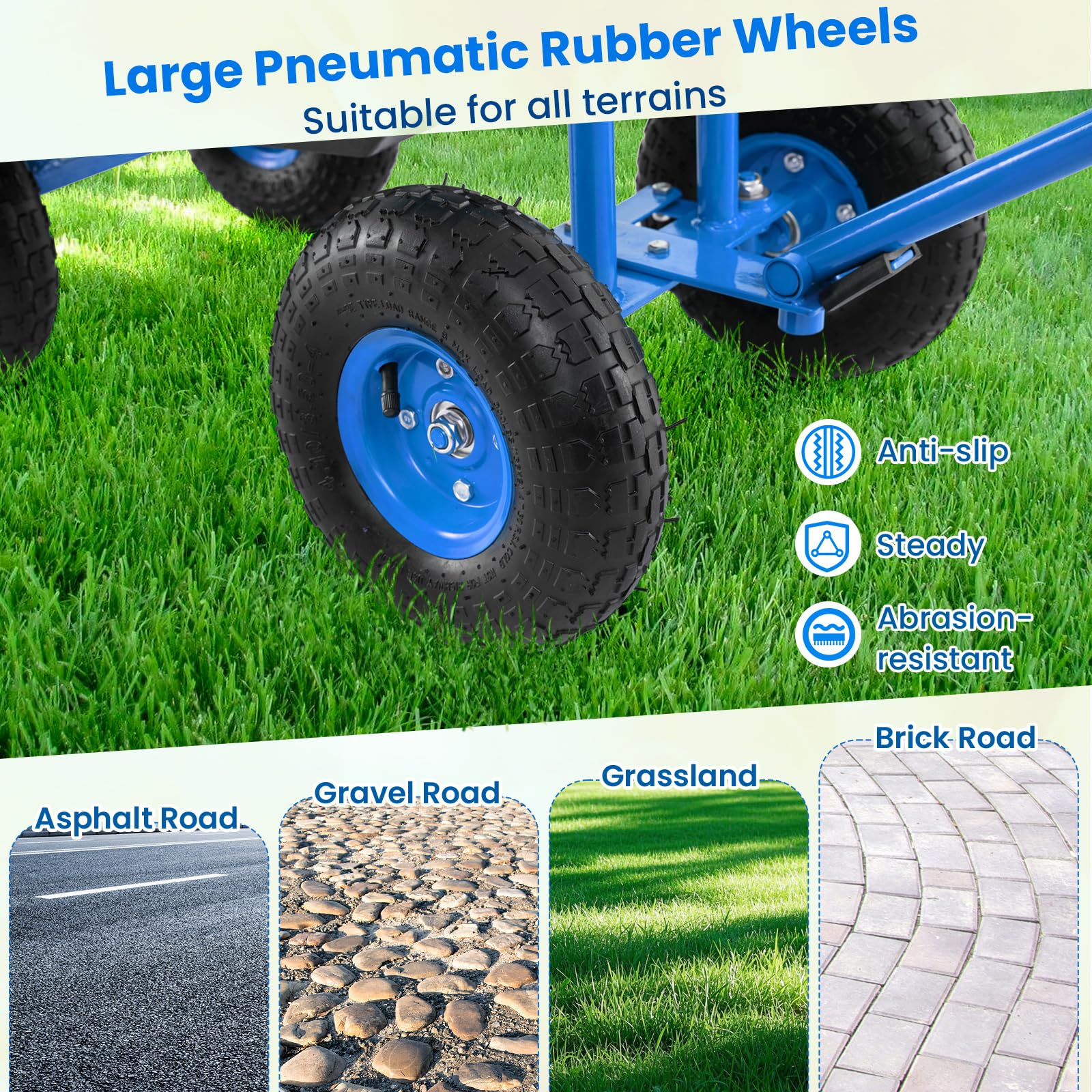 - 4 Rubber Wheels under Steel Frame: Flat wheels provide powerful support for the garden cart and ensure stability while moving.