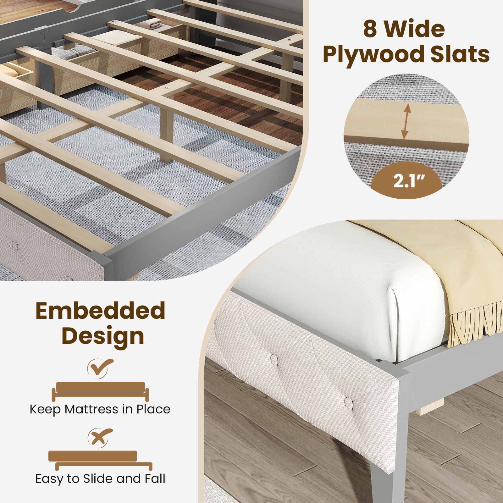Embedded design keeps mattresses from slipping
