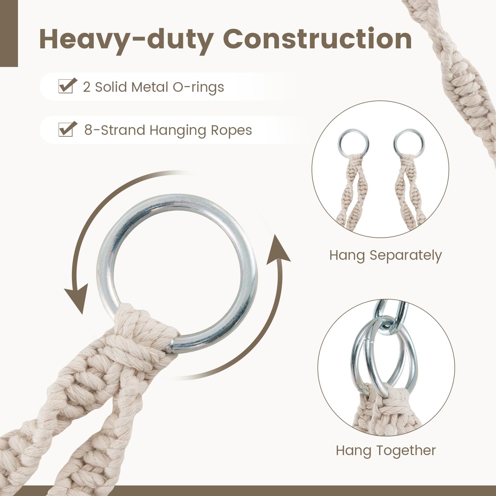 - 【Stylish Boho Design】: Elevate your space with our hammock chair's rope knitted design and charming tassels. Perfect for indoor nooks or outdoor sanctuaries, this swing chair adds elegance and relaxation with a touch of romance.