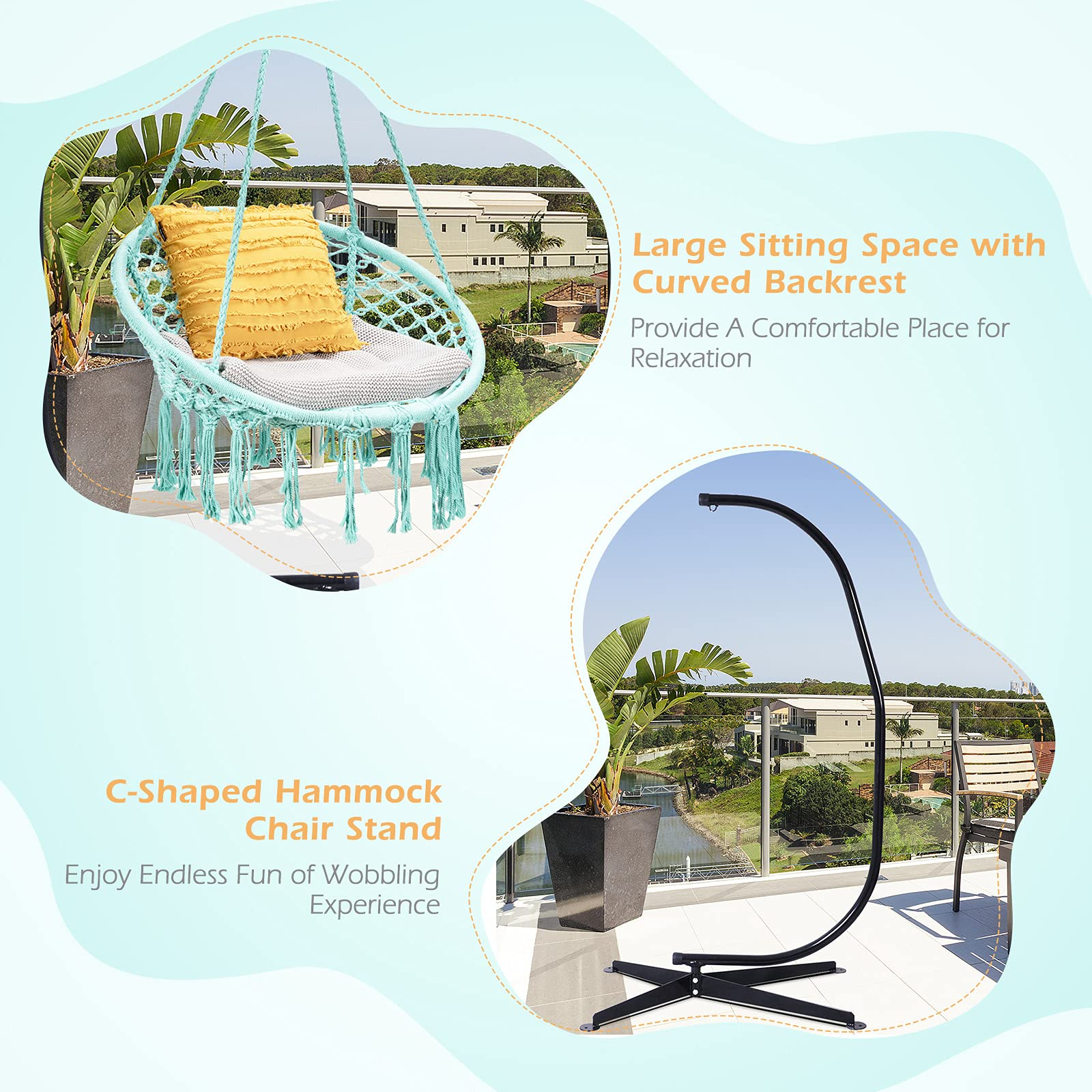 Giantex Hammock Chair with Stand, Solid Steel Heavy Duty C Stand with Macrame Hanging Chair