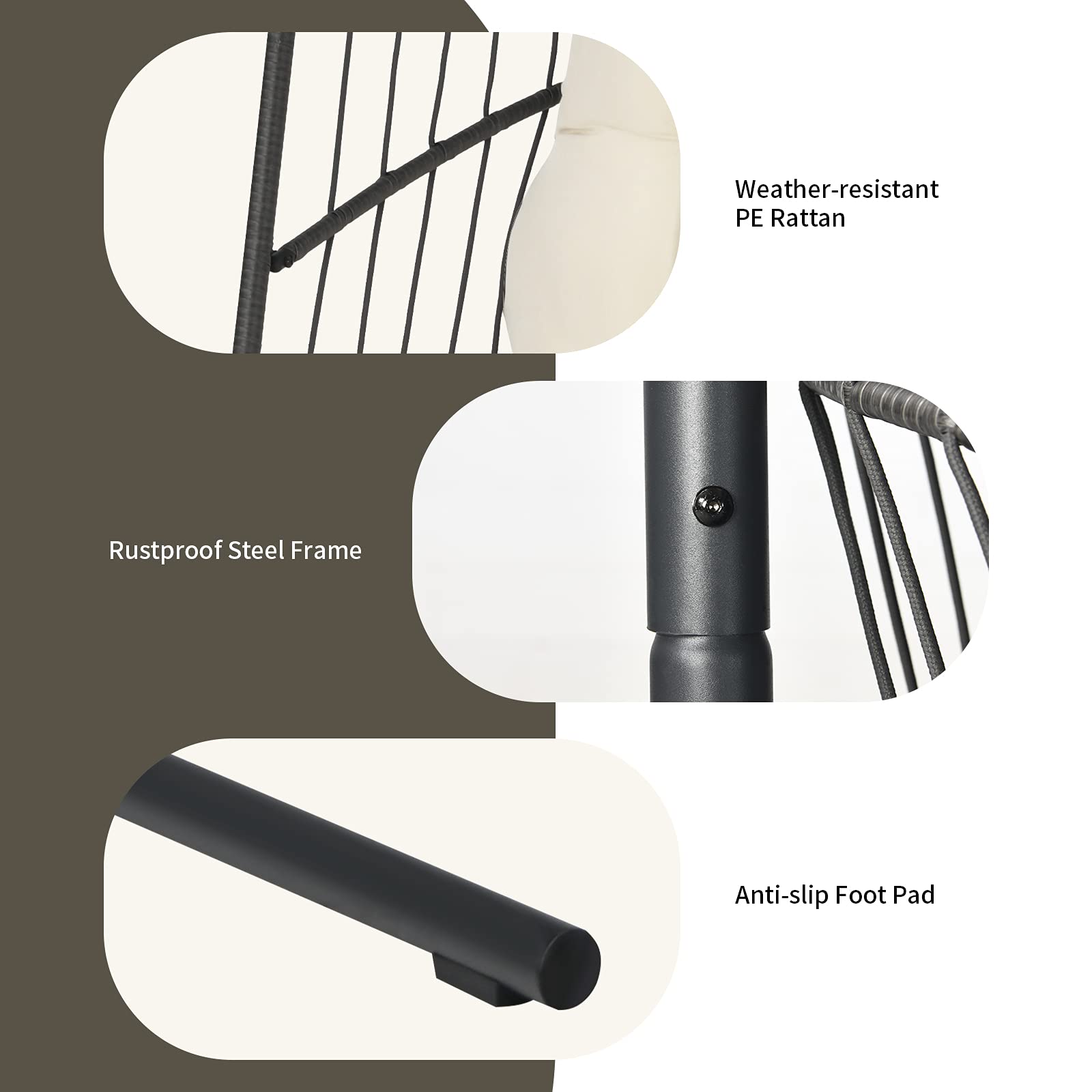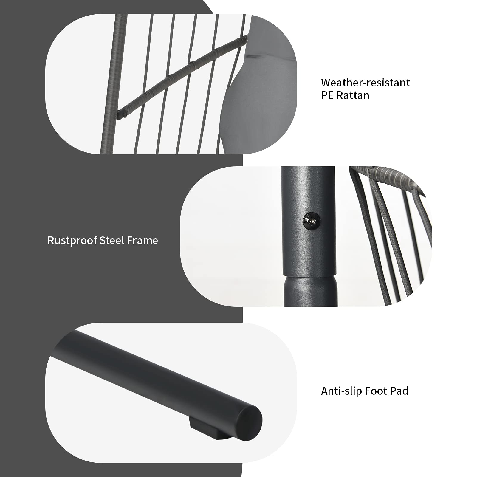 - Selected Materials: Crafted of premium PE rattan, this egg hanging chair is smooth to touch and clean. Meanwhile, the heavy duty and rustproof steel frame with reinforced steel hook can support up to 330 lbs. Both of them are weather-resistant to fit outdoor use.