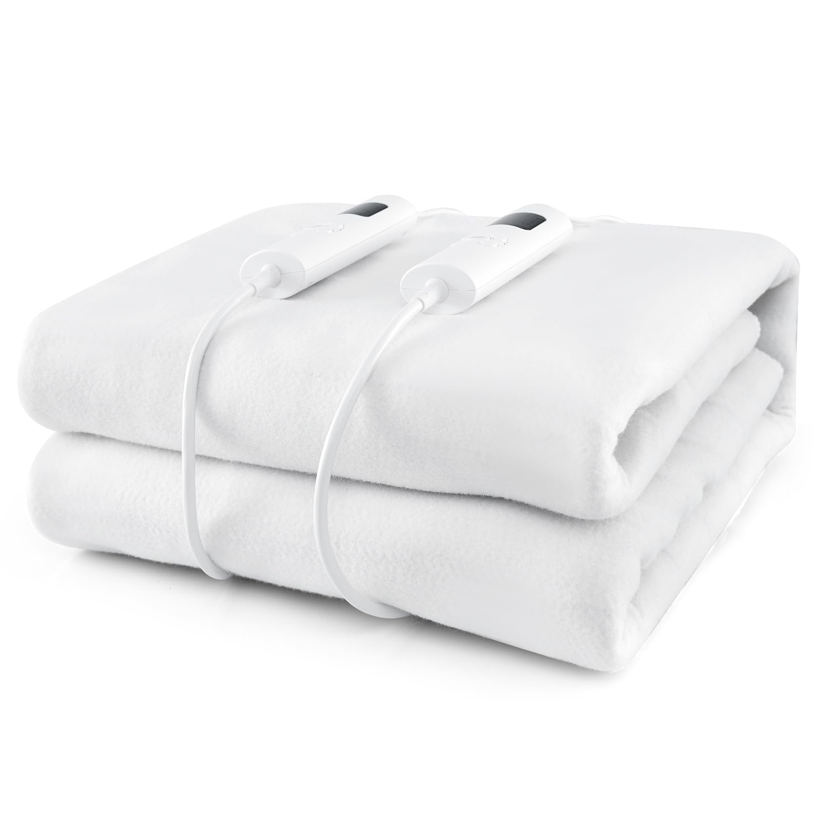 - [Dual-zone Control]: Enjoy personalized comfort with dual controllers on this heated mattress pad, allowing you and your partner to adjust temperature and time independently. Each controller features a convenient 1.6 ft cord for bedside accessibility, while the 5 ft power cord ensures easy reach from your outlet.
