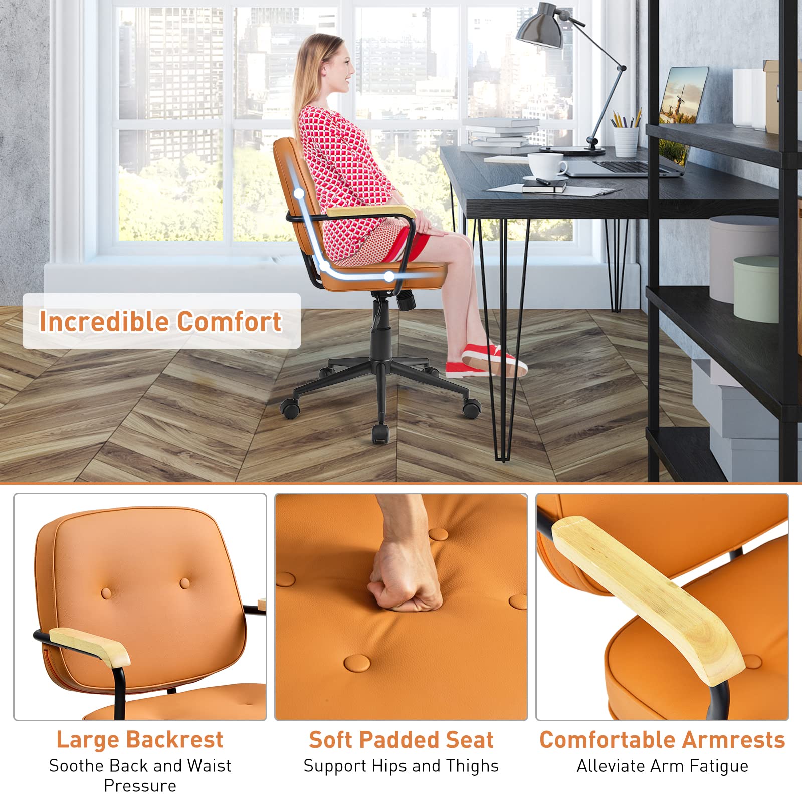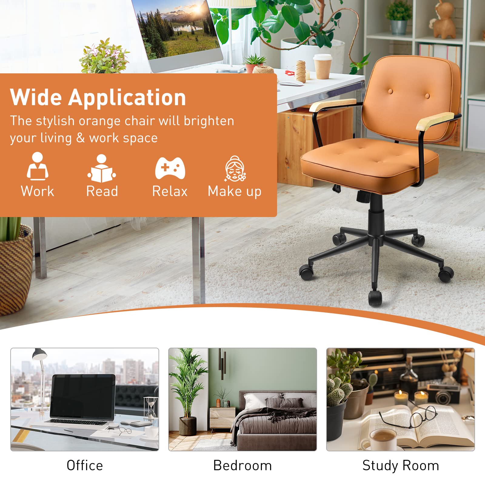 - Modern Style for Wide Use: With a tufted-button design and attractive orange color, our beautiful leisure chair is sure to be a real eye-catcher. This desk chair is a wonderful addition to your bedroom, study, or home office.