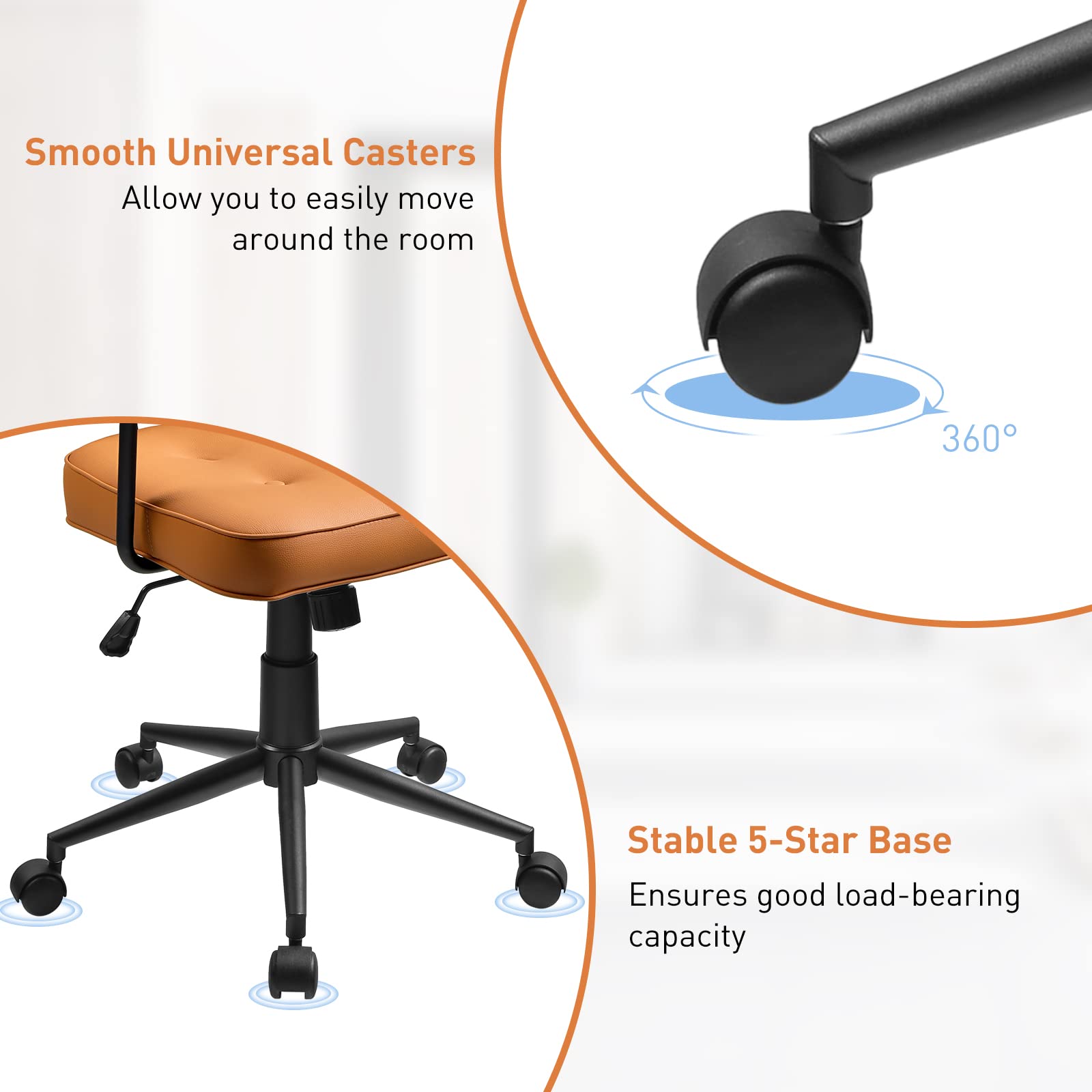 - Comfortable & Durable Material: The back and seat are covered with skin-friendly PU leather and padded with a high-quality sponge. You will feel comfortable when sitting on this office chair. Meanwhile, the sturdy metal frame and 5-claw base make it strong and durable enough to hold up to 330 lbs.
