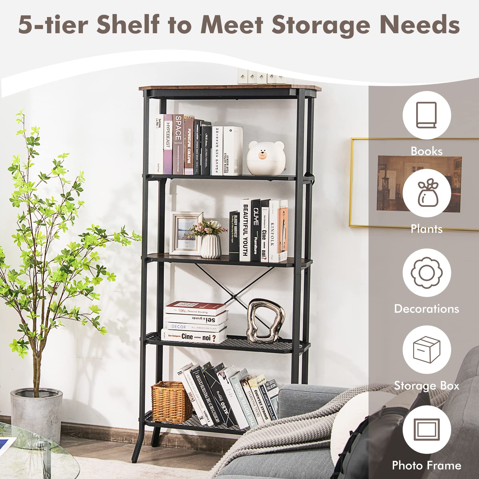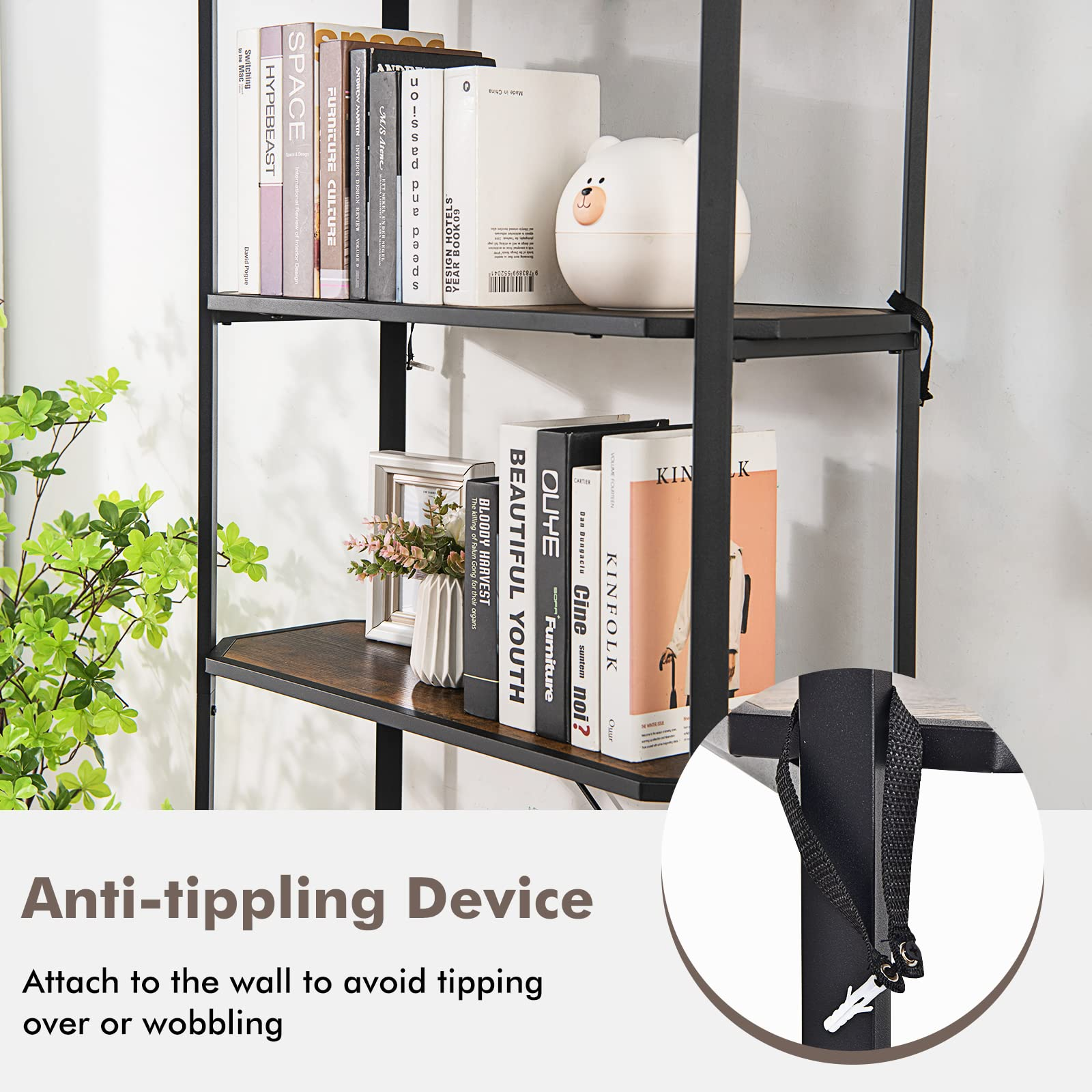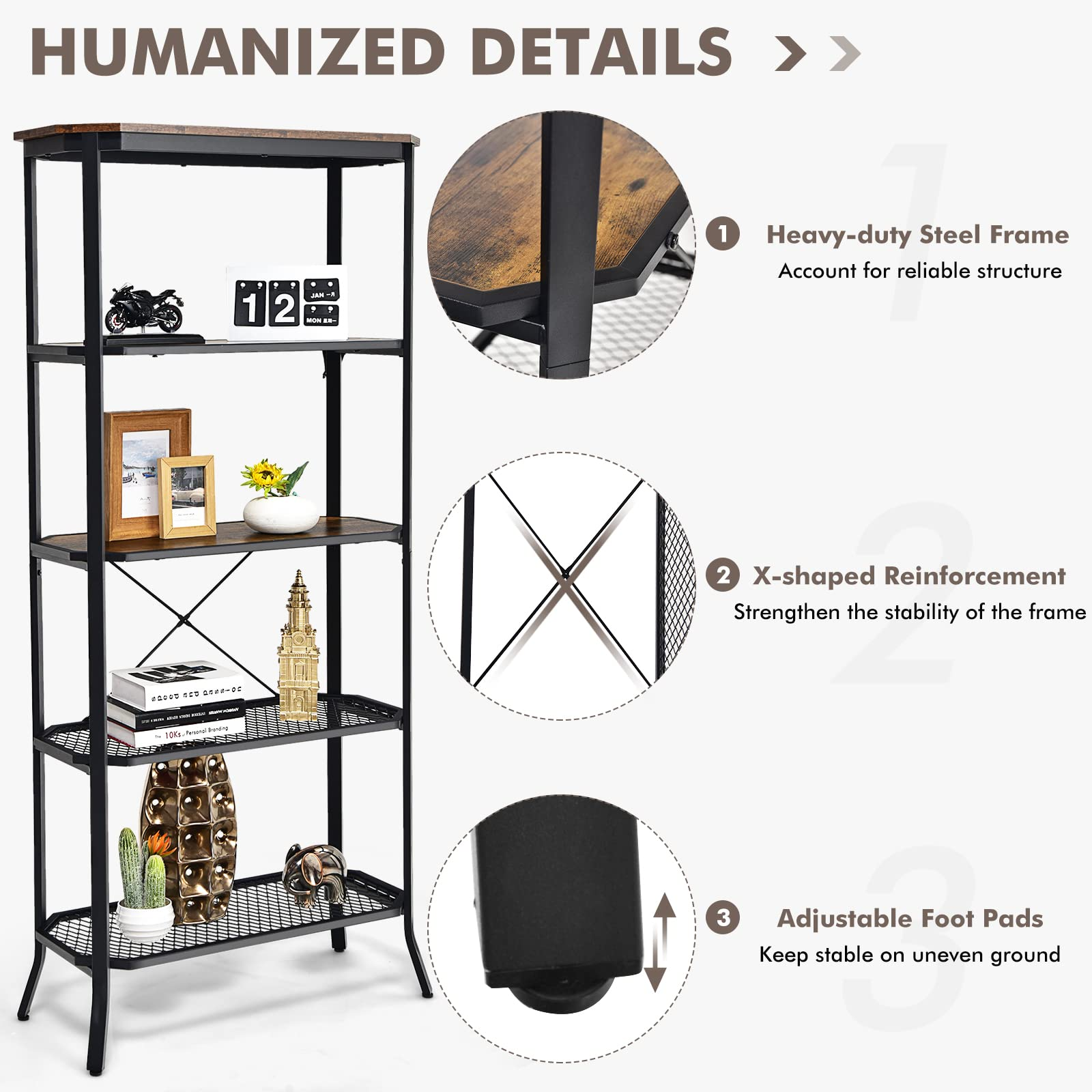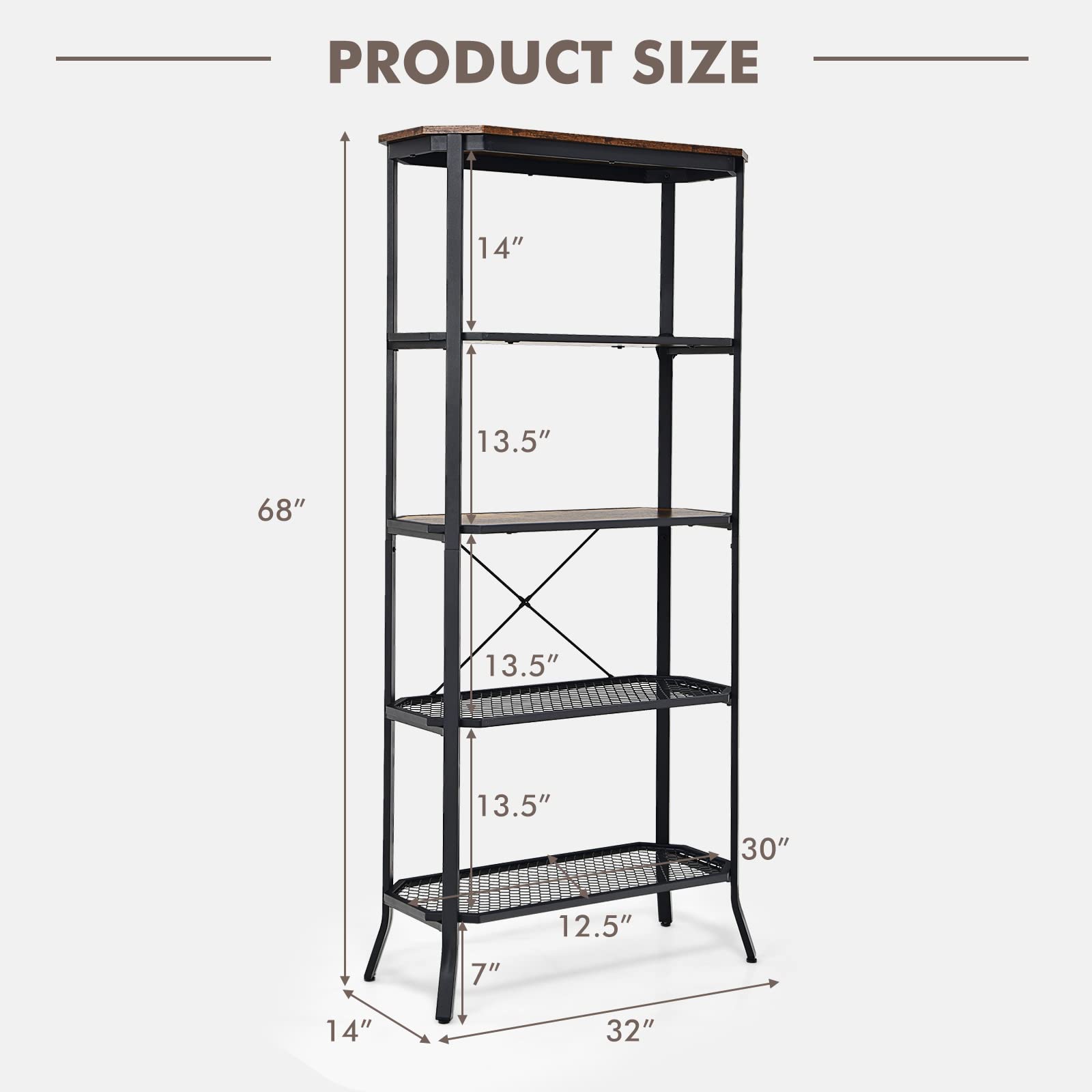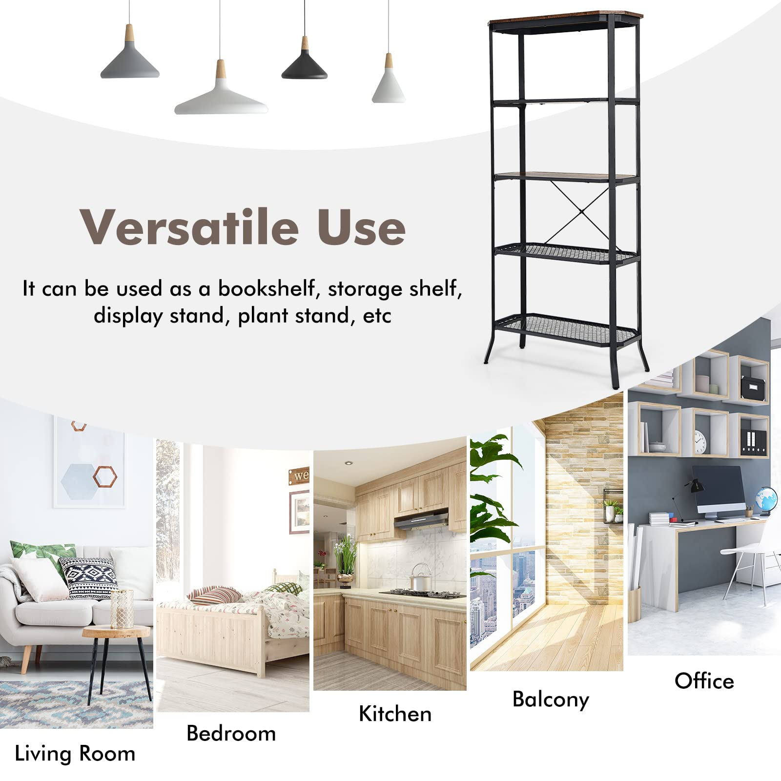 - Abundant Storage Space: Featuring a 5-tier bookshelf, the industrial display shelves provide plenty of storage space for daily supplies and decorative items. Besides, multi-layered design can not only make full use of vertical space but also keep your home well organized.