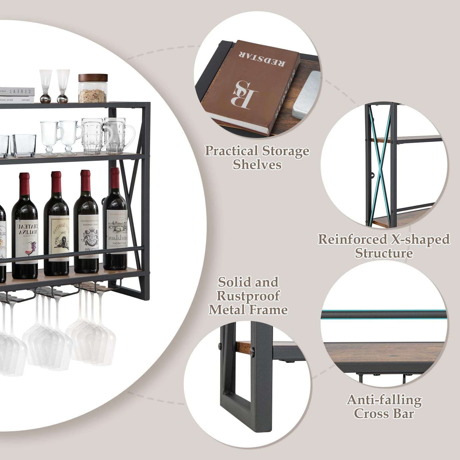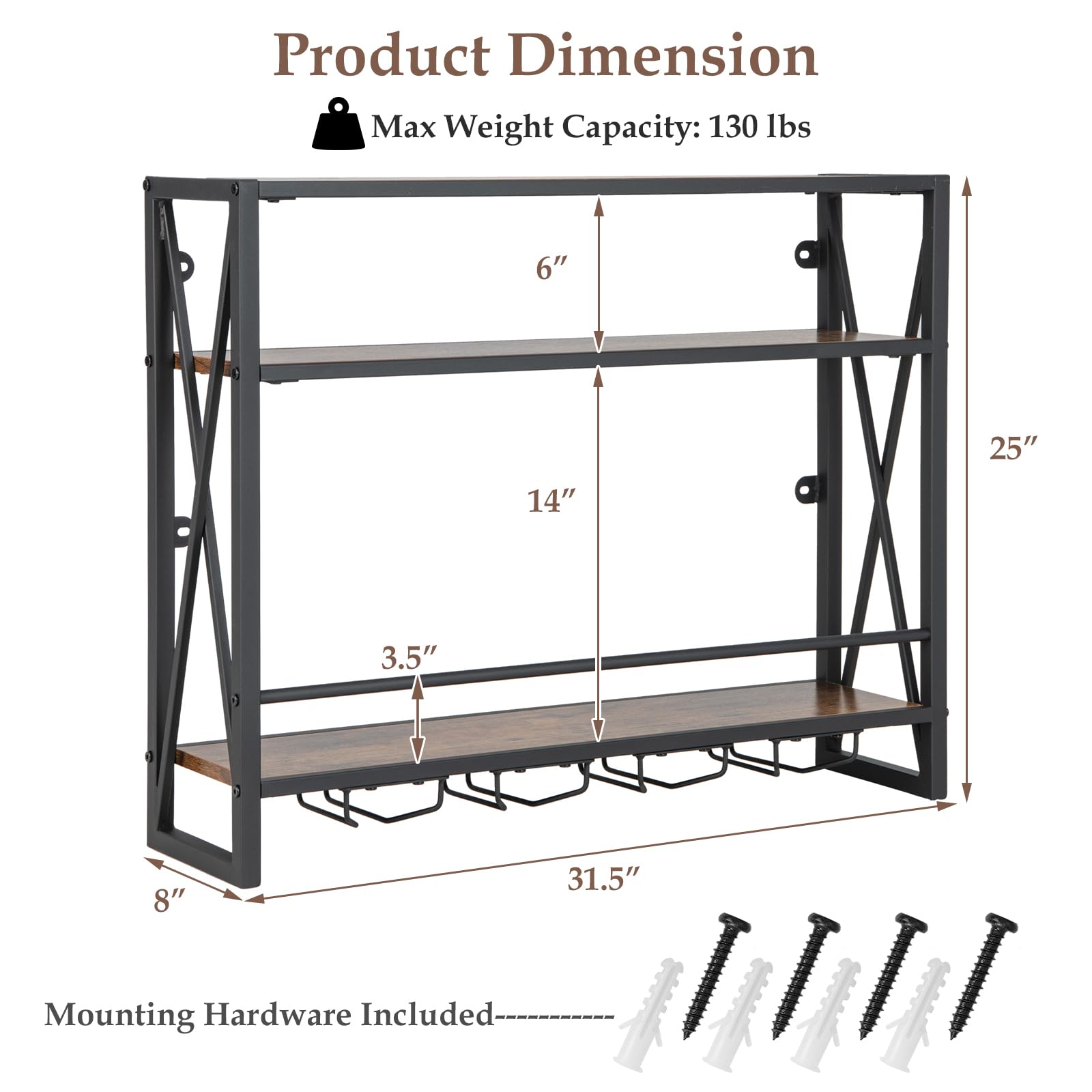 - [Plentiful Storage Space]: Giantex wall-mounted wine rack consists of 3 practical storage shelves for various items, including wine bottles, potted plants, decorations, etc. What's more, the built-in stemware rack can hold up to 16 glasses of different heights.