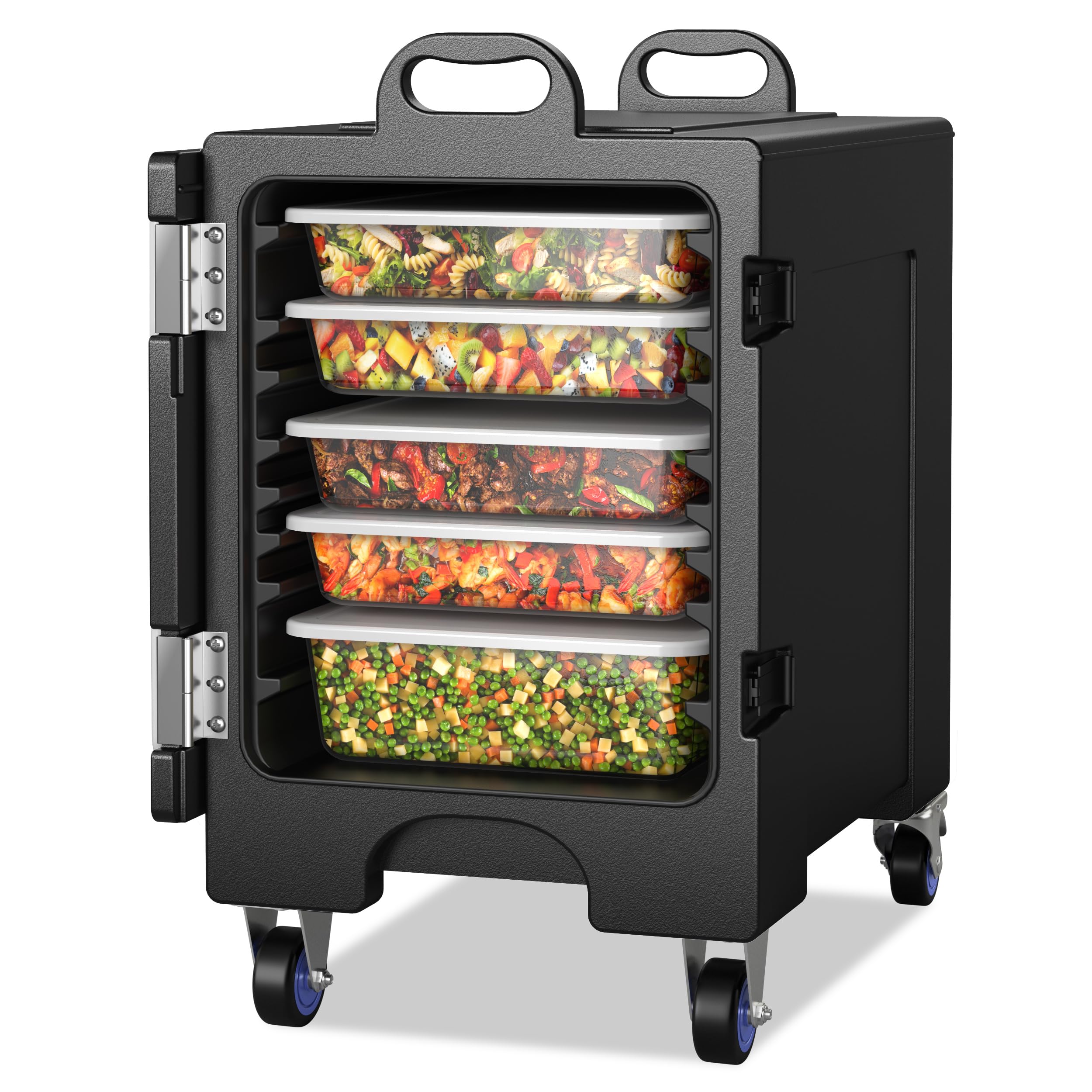 - 81 Quart Large Capacity: With a capacity of 81 QT, this insulated food container can hold up to 5 full-size pans (pans not included). It features a flexible multiple-slot design, allowing you to allocate and combine internal space efficiently, enabling transport of large amounts of food in one go. For optimal results, we recommend storing hot and cold food separately.