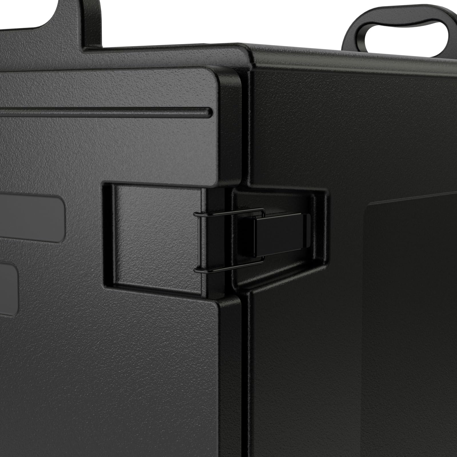 - Secure Sealing & Easy Access: Equipped with upper and lower nylon latches, this food container ensures a tight and secure closure to maintain internal temperature. The door swings 270° backward and folds flush against the side, providing hassle-free access to the contents inside.