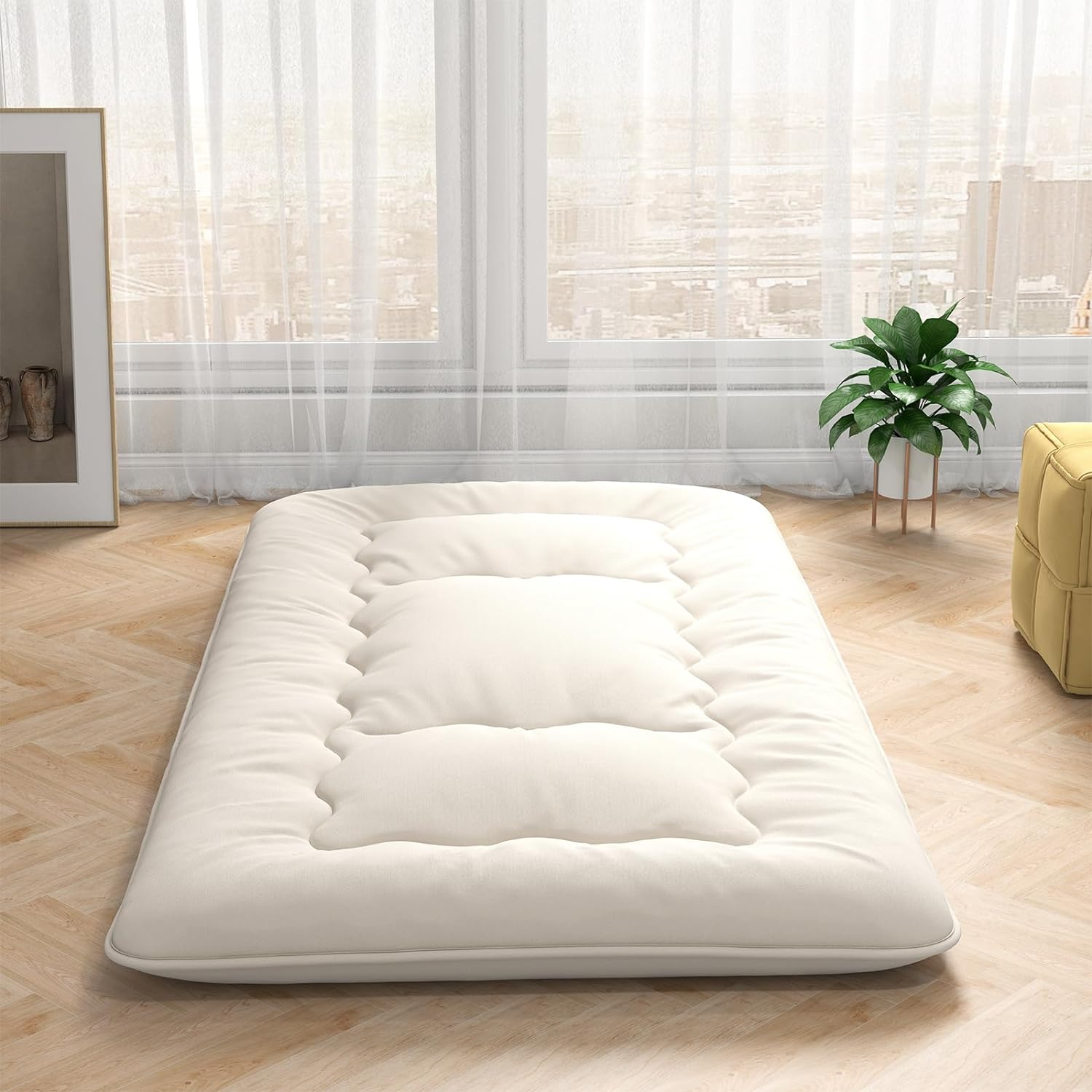 - [Multifunctional Futon Mattress]:This floor mattress offers great adaptability as a portable sleeping bed or play mat for sleepovers, exercises, and children. Additionally, it doubles as a floor futon mattress in the bedroom, a tatami mat in the living room, or a convenient camping mattress.