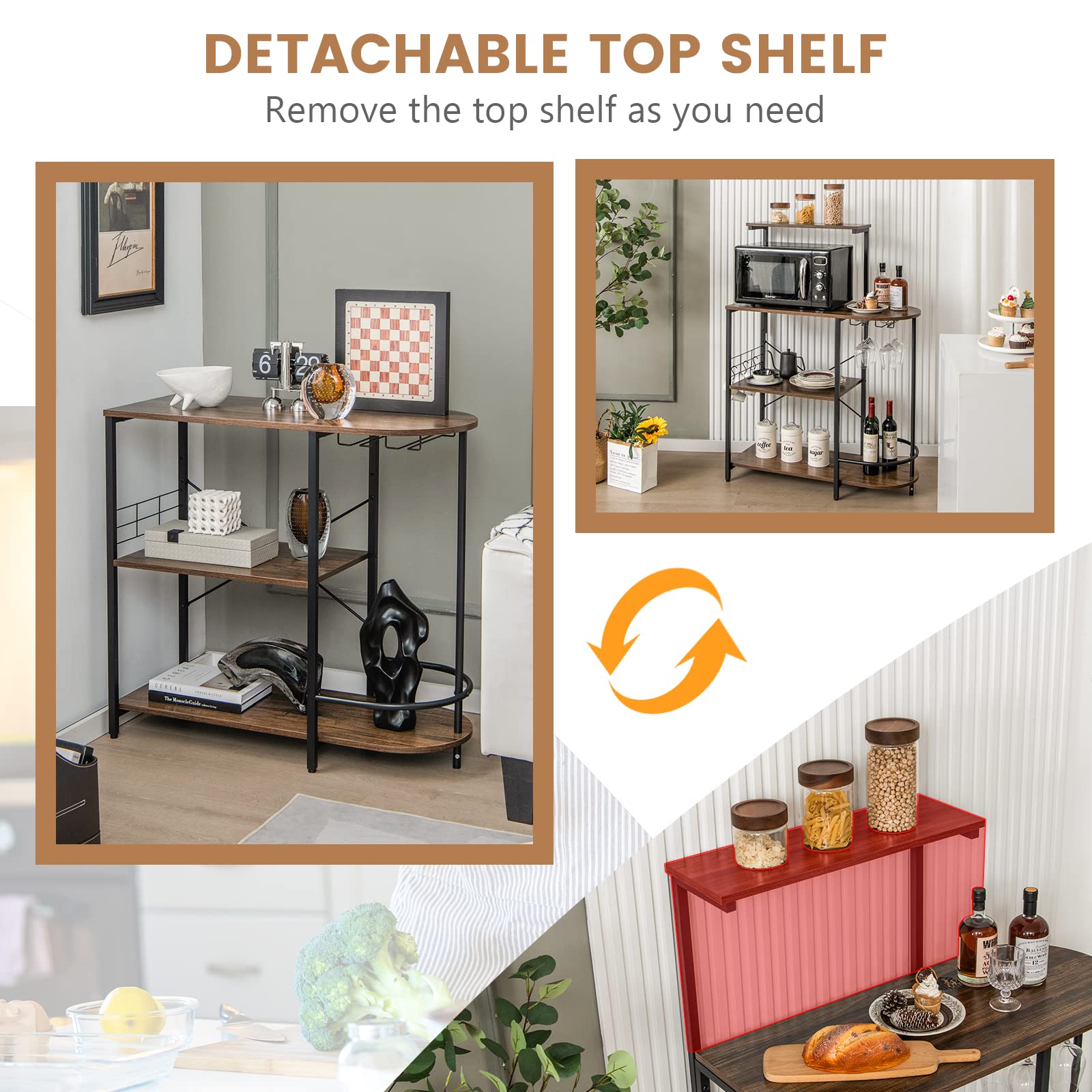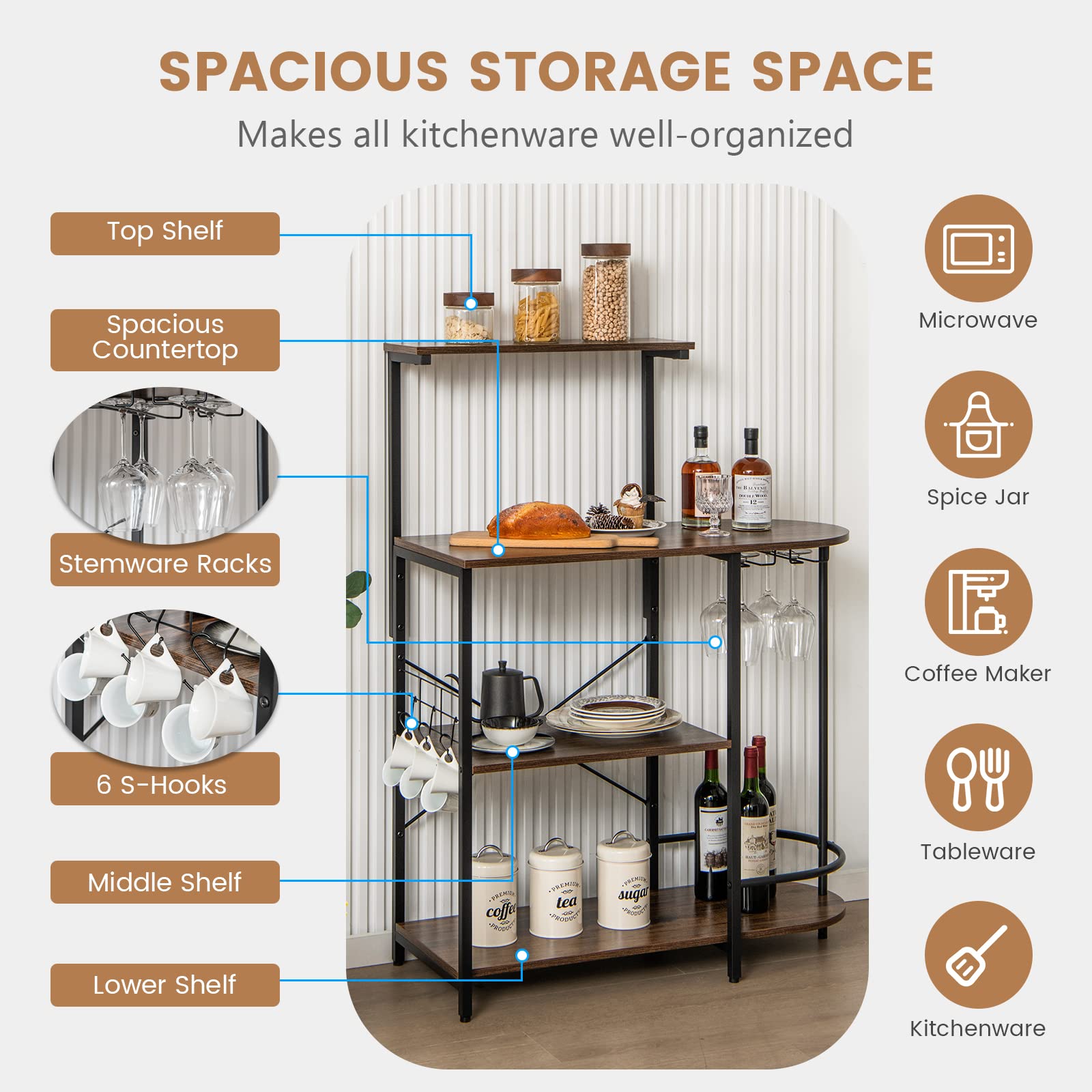 - [Perfect Kitchen Organizer]: This 4-tier baker's rack with spacious storage space makes all kitchenware well organized. The top shelf, spacious countertop, middle shelf, and lower shelf offer ample space for a microwave, spice jar, coffee maker, tableware, kitchenware, and so on. Plus, you can remove the top shelf as you need.