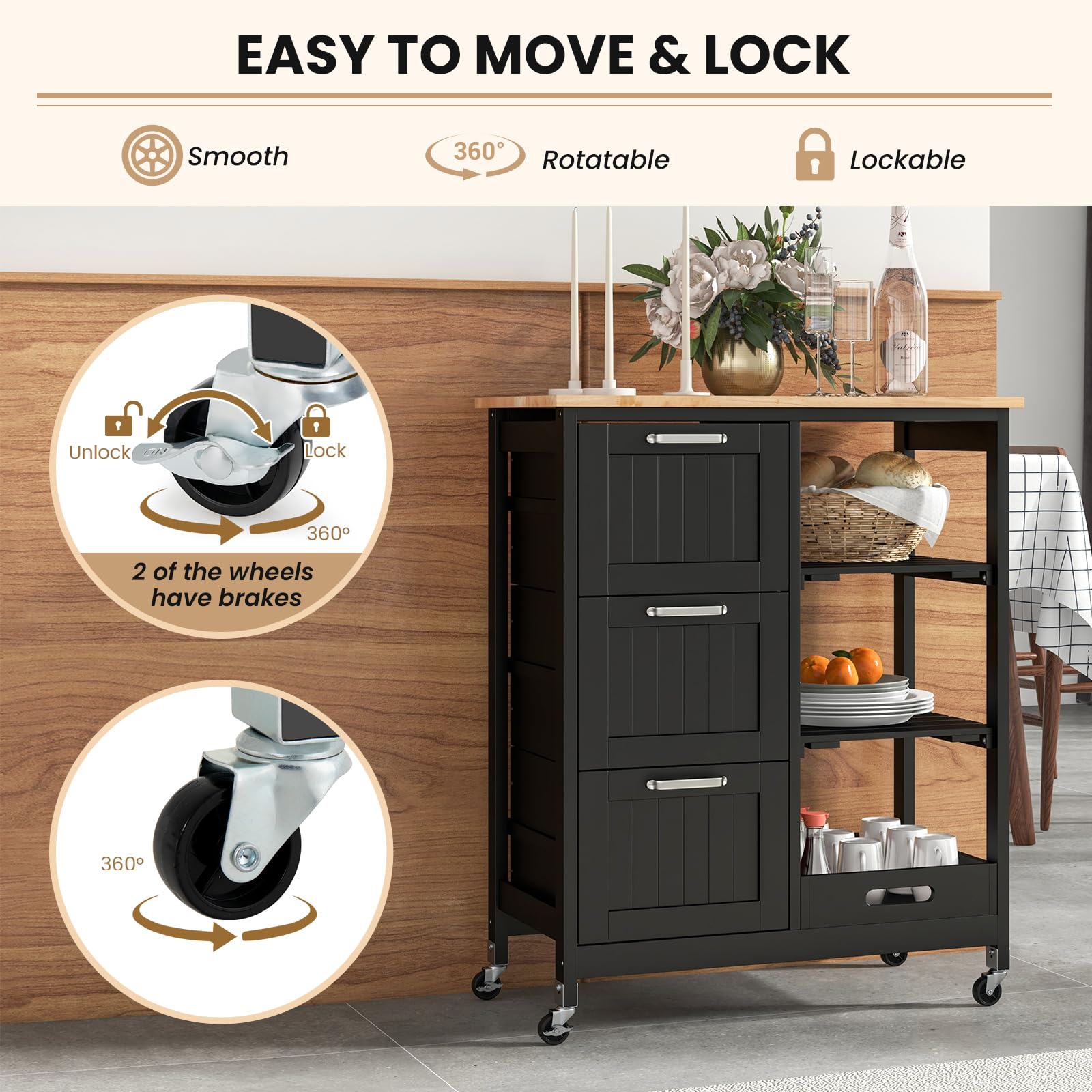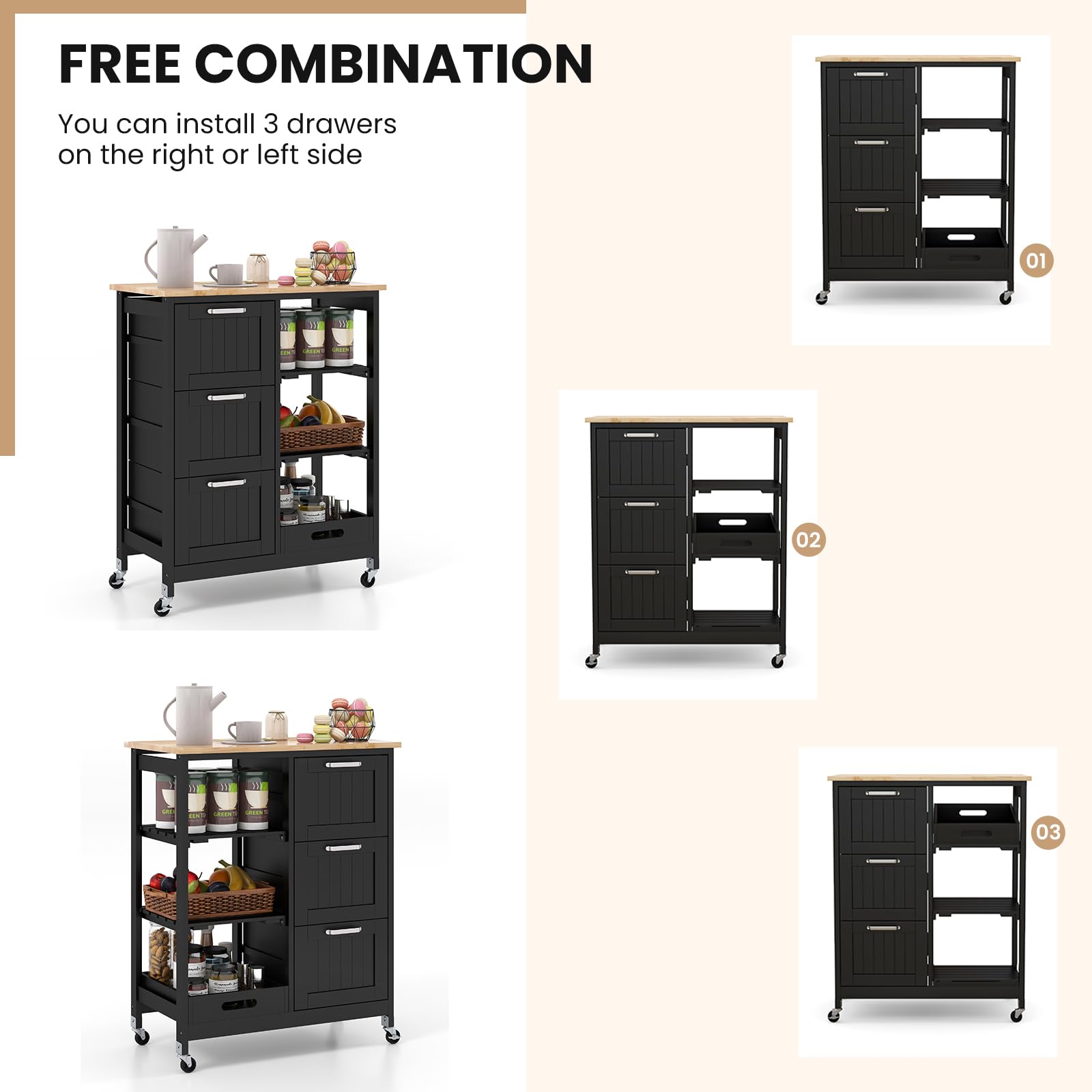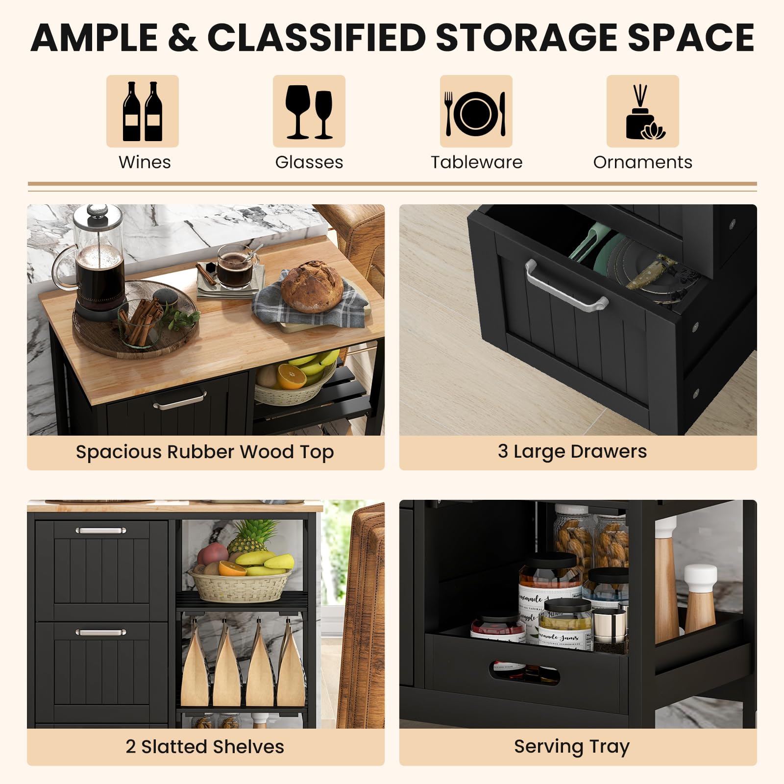 - Classified Storage Space: Our kitchen island cart features ample & classified storage space, including 1 spacious rubber wood top, 1 removable tray, 2 slatted shelves and 3 large drawers. Besides, you are allowed to detach the tray and use it as a separate serving tray to serve food and drinks for your guests.