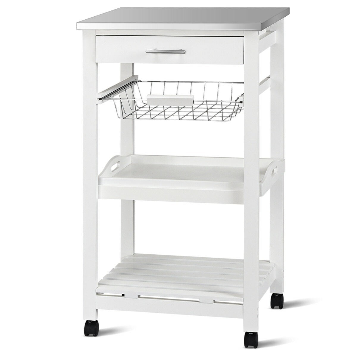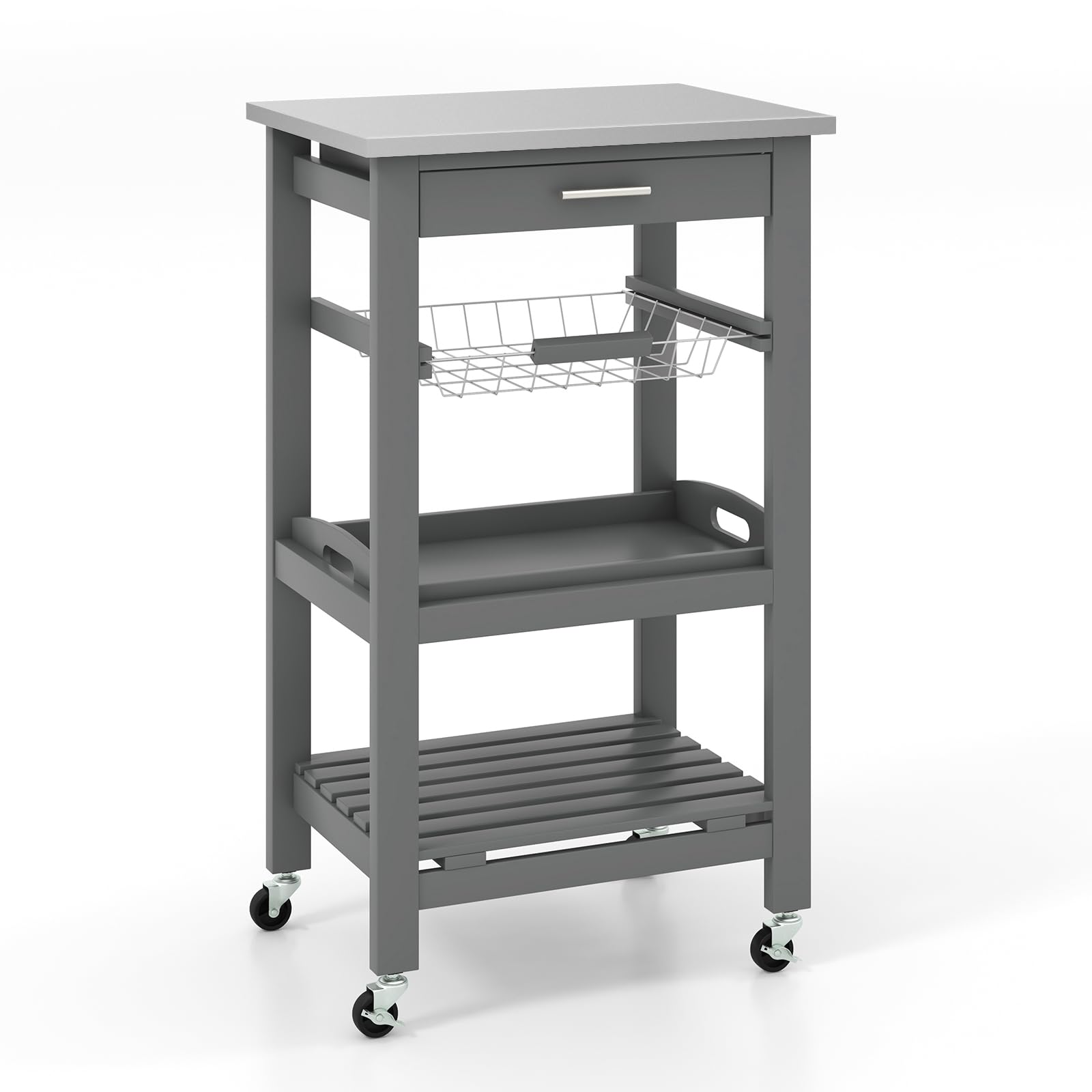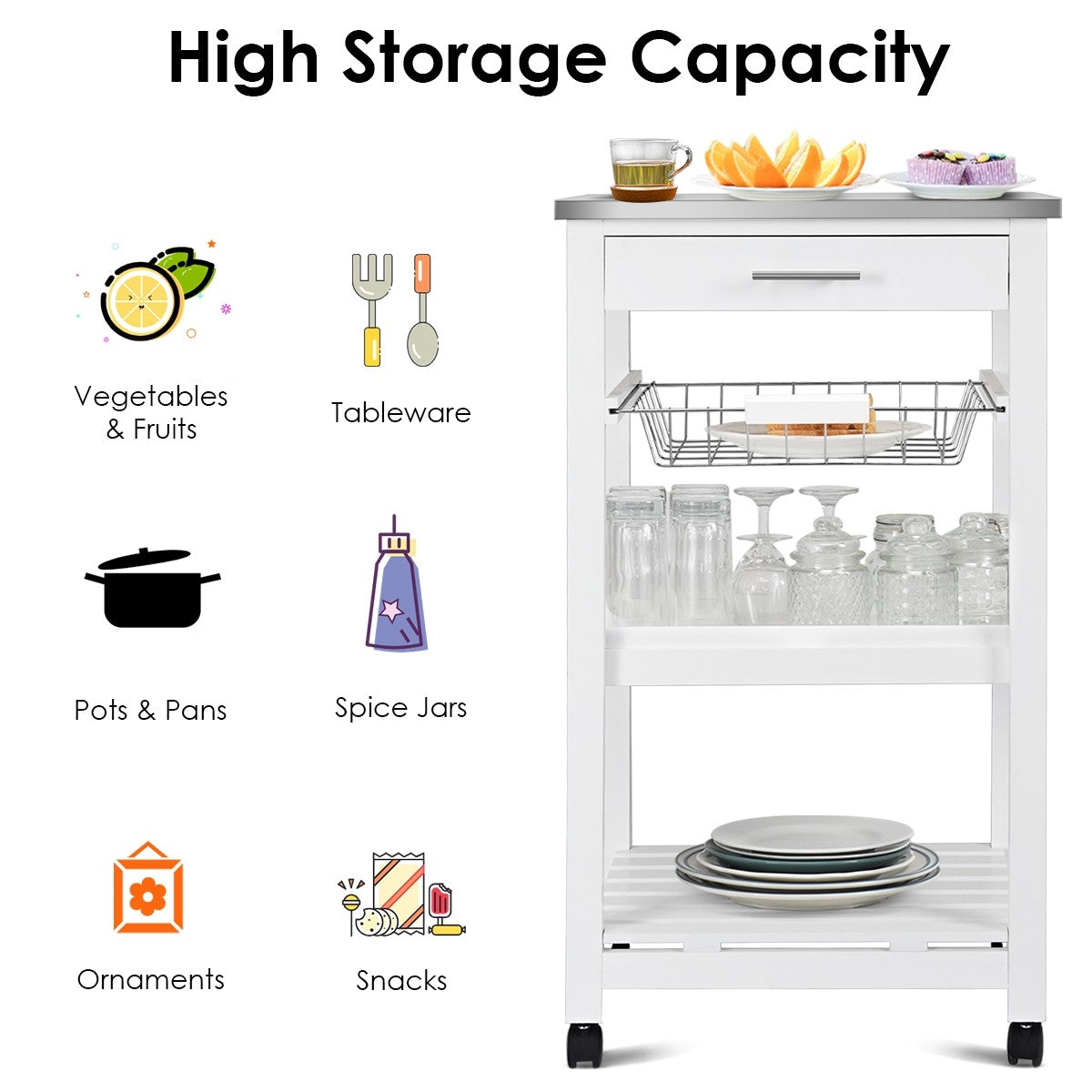 Giantex Kitchen Island Cart Rolling Kitchen Trolley with Stainless Steel Tabletop