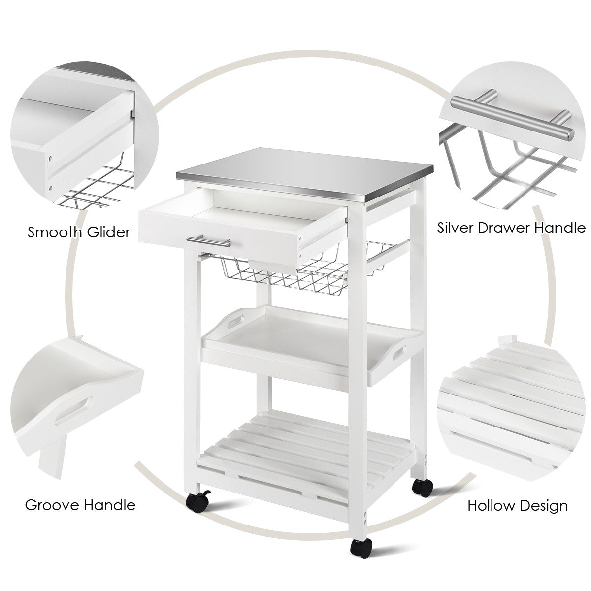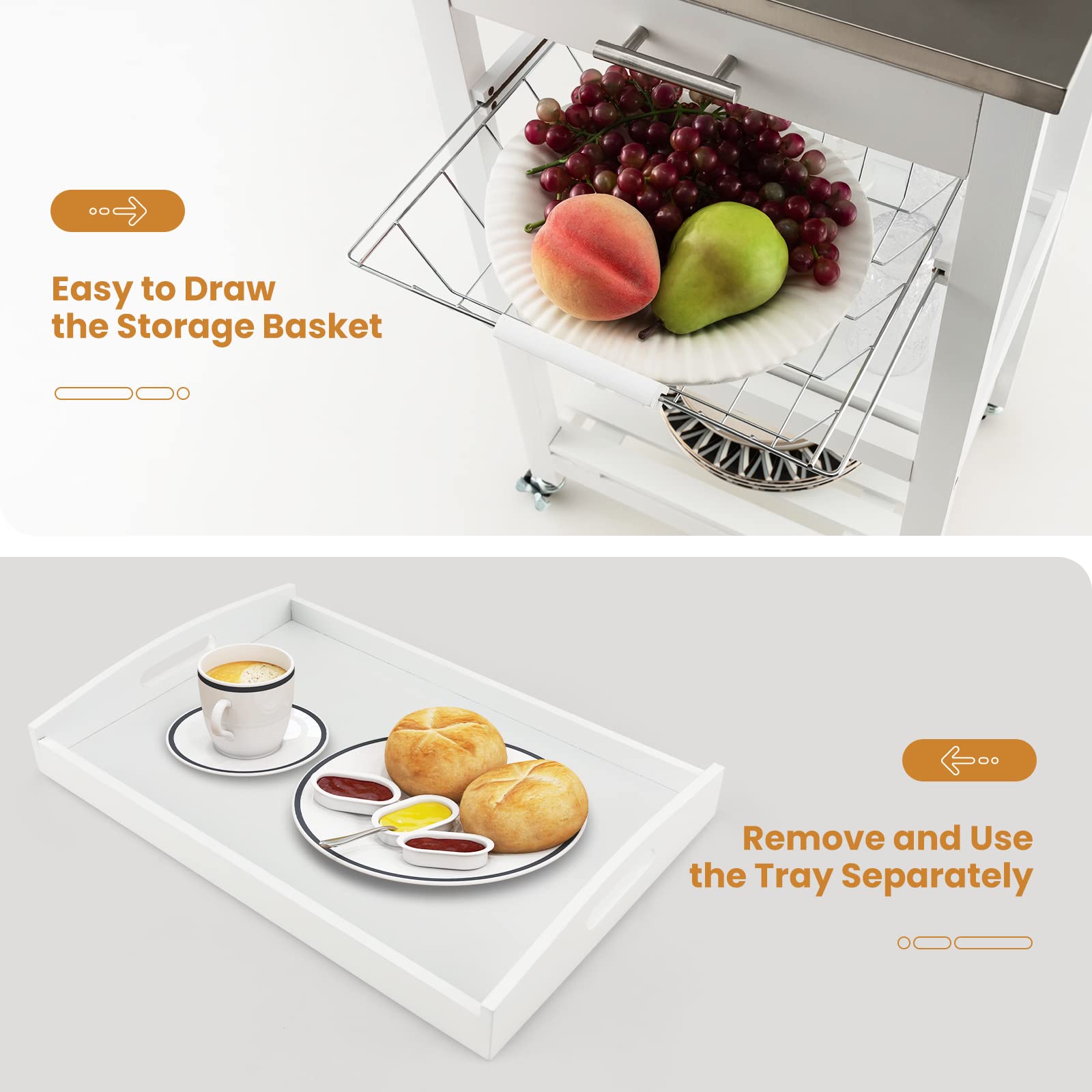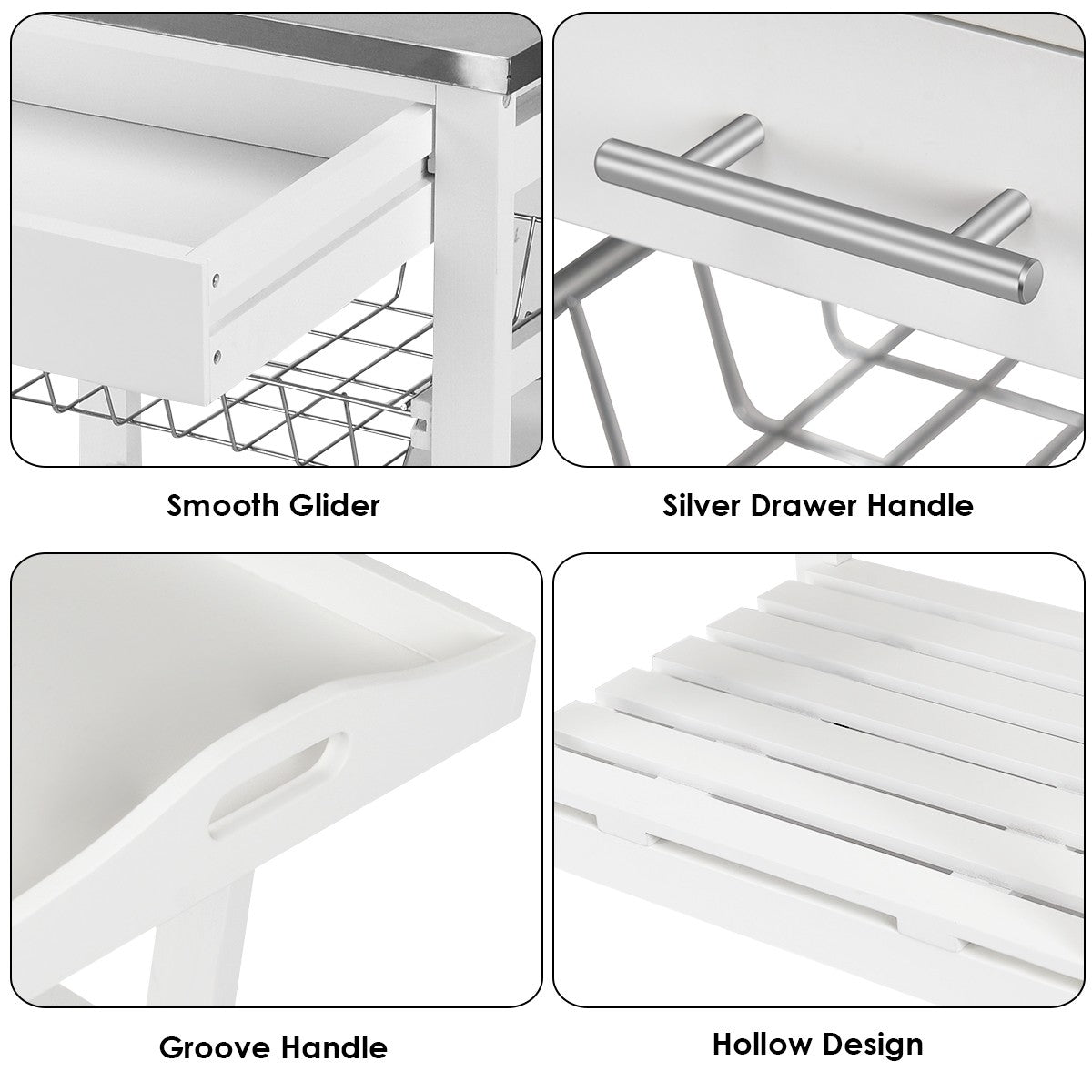 Giantex Kitchen Island Cart Rolling Kitchen Trolley with Stainless Steel Tabletop