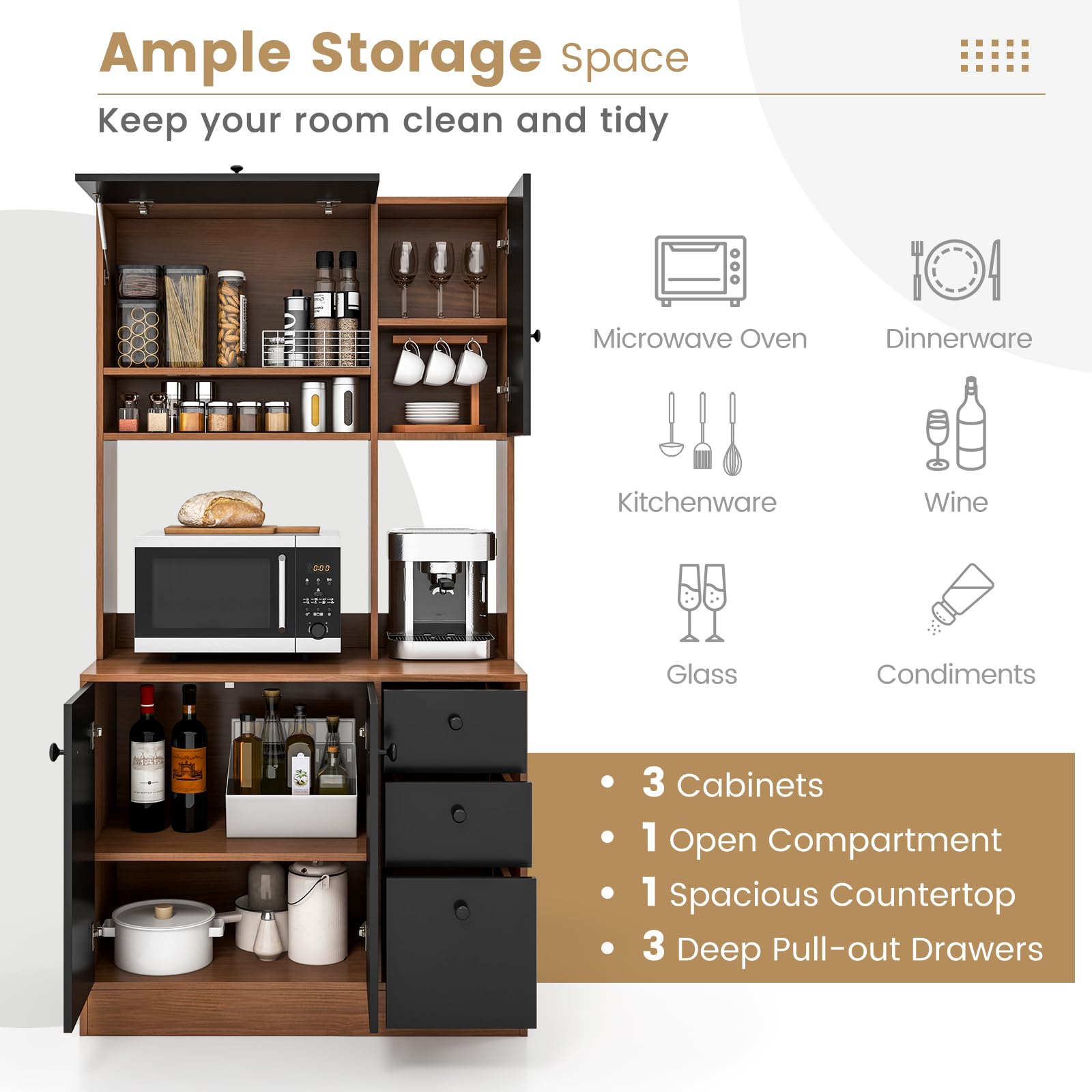 Product form Giantex Kitchen Pantry, Buffet Hutch with 3 Storage Cabinet, 71'' Floor Large Cupboard with 3 Deep Drawers $375.99 ColorWalnut & Black Quantity Add to cart This item is a recurring or deferred purchase. By continuing, I agree to the cancellation policy and authorize you to charge my payment method at the prices, frequency and dates listed on this page until my order is fulfilled or I cancel, if permitted. Your order will be shipped for free!