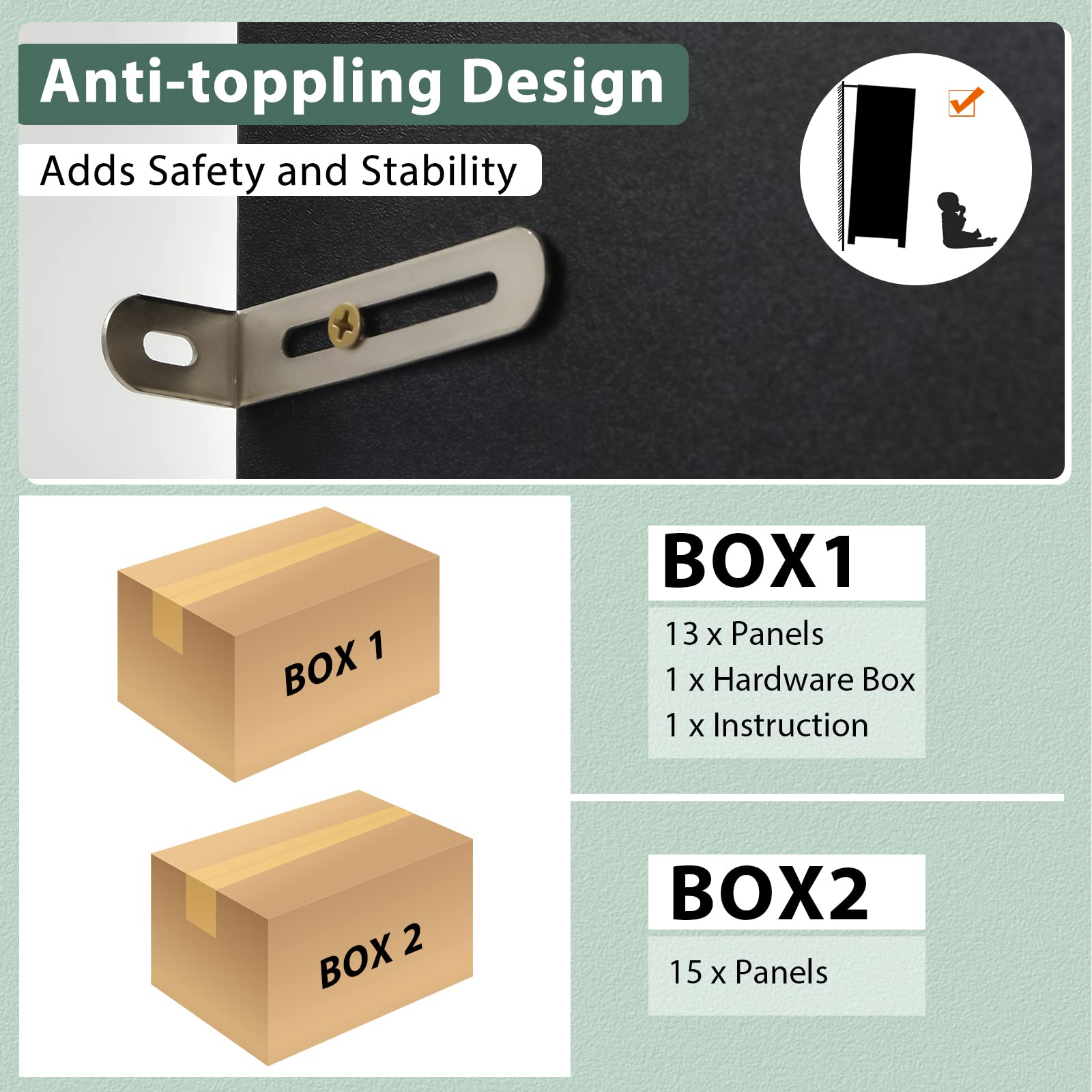 Anti-toppling devices to add stability and security