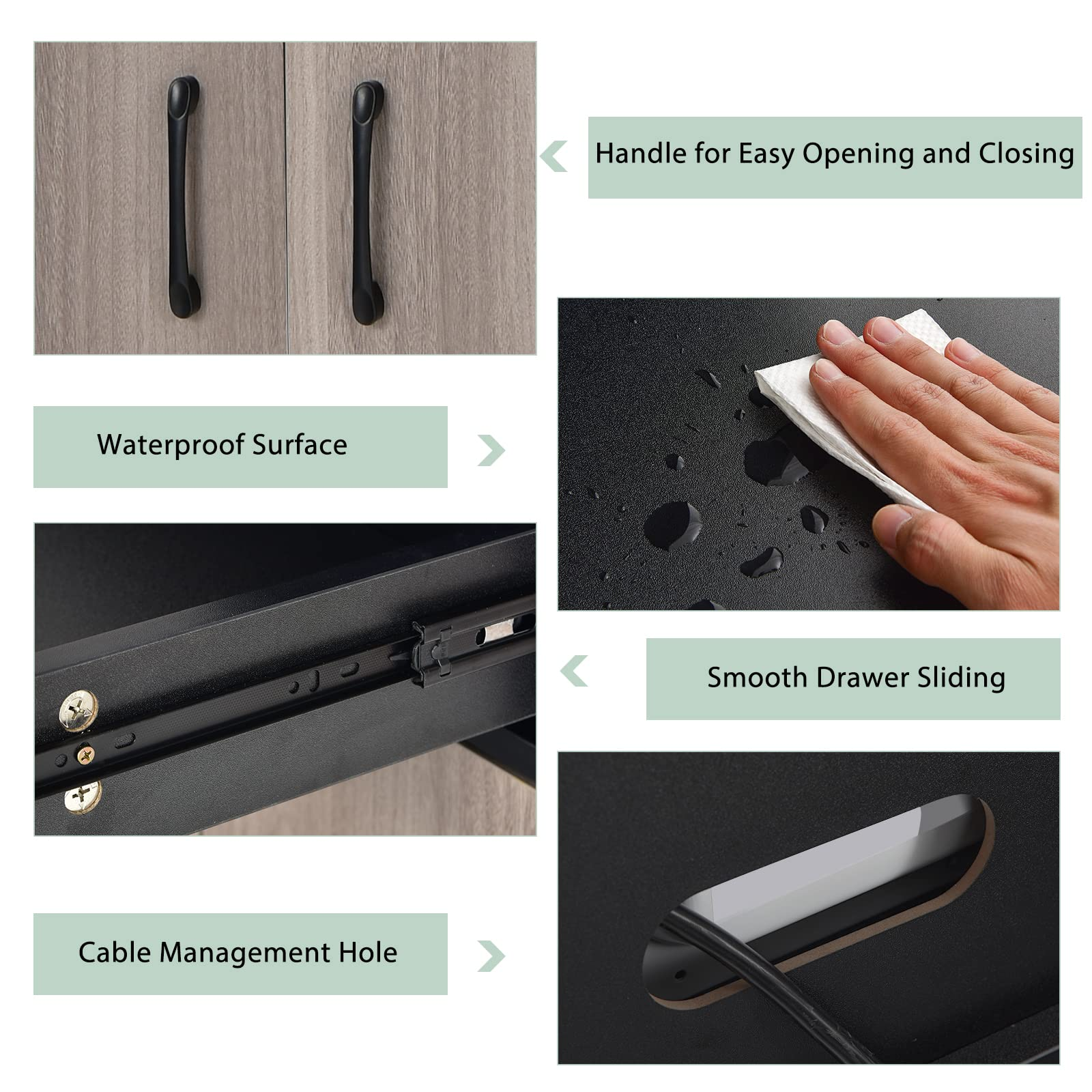 It is made of high-quality materials with superior workmanship, which can withstand years of use. The spacious countertop is cleverly designed to hold your microwave, coffee maker and other appliances. Meanwhile, the cable management hole effectively avoids a tangled mess of wires. Additionally, the 5-position adjustable shelves are designed to accommodate items in different sizes. The smooth slides, metal handles and knob also bring you much convenience to fetch items with ease. Hope our kitchen pantry makes your life much easier and happier.