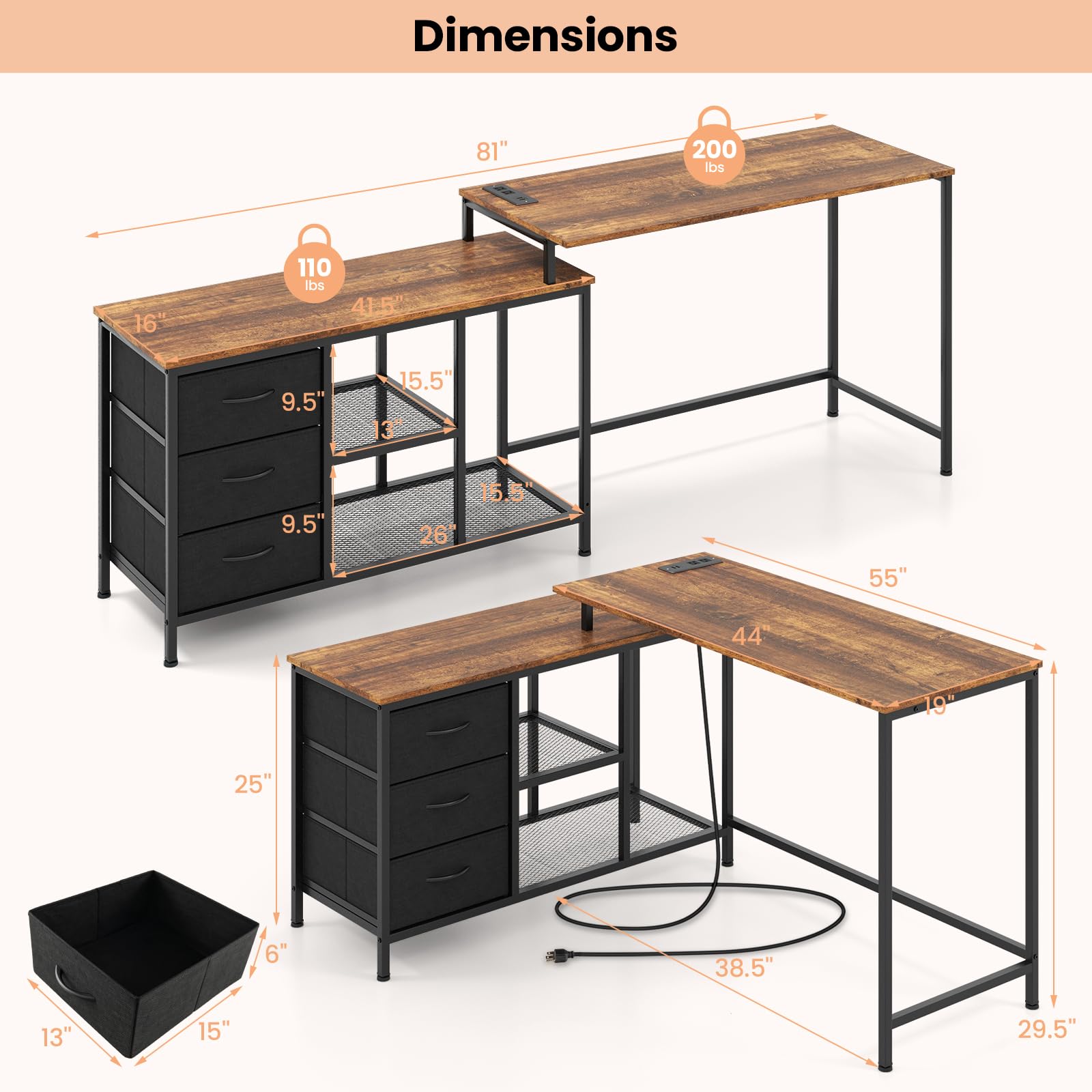 Overall Dimension of L Desk: 55" x 41.5" x 29.5" (L x W x H)