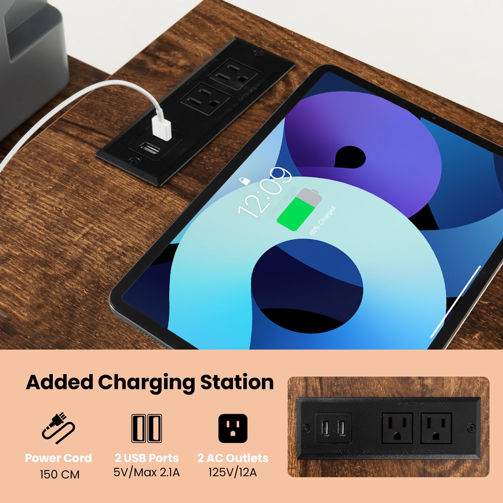 - Convenient Charging: The workstation desk has 2 AC outlets (125V/12A) and 2 USB ports (5V/Max 2.1A) that allow you to keep your devices powered up and eliminate the hassle of tangled cords. Now get rid of dead batteries!