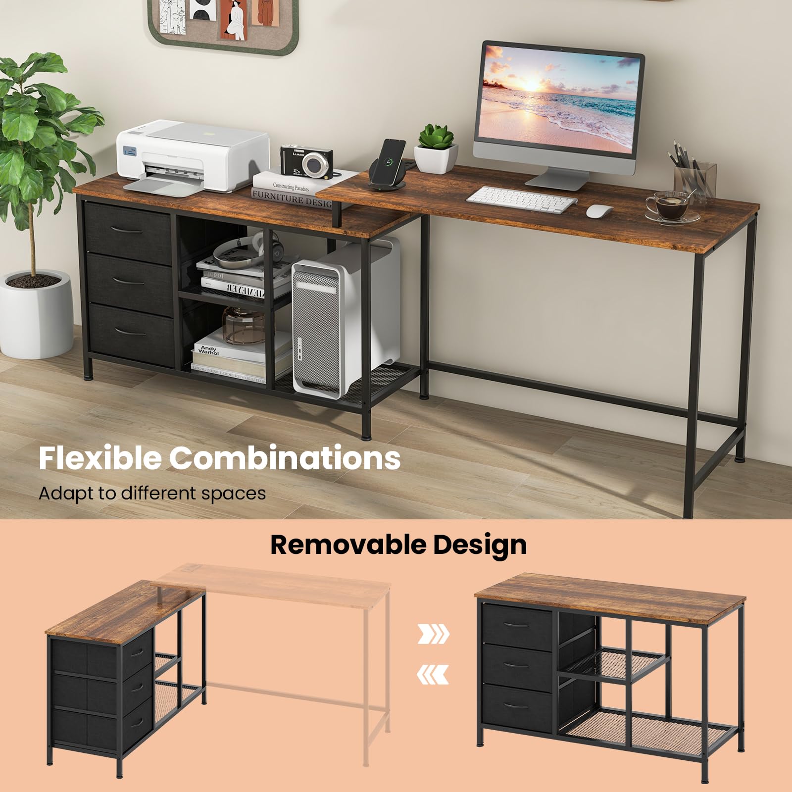 - Convertible Design: As needed, the computer desk can be configured as a traditional straight desk or as an L-shaped desk, adapting to different room configuration. Besides, its tall tabletop is detachable for flexible combinations, so you can get a smaller office desk.