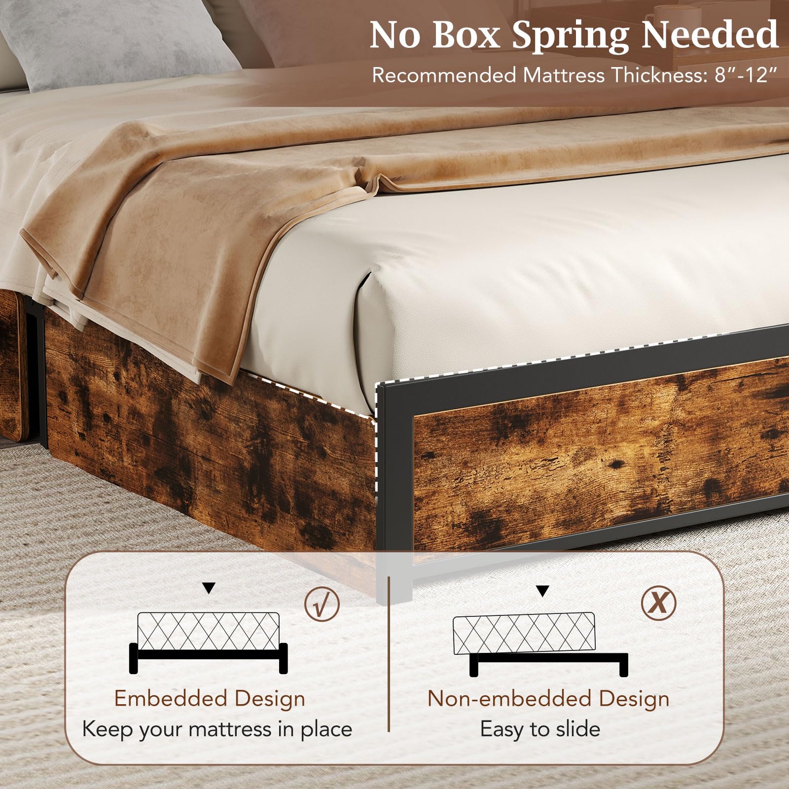 You can set the perfect mood with a variety of colors and brightness settings, providing an ideal ambiance for relaxation or bedtime reading. Moreover, the built-in charging station is designed to keep your electronic devices charged and ready to use. Storage is thoughtfully addressed with a 2-tier headboard and 4 foldable drawers, providing ample space to organize and keep essential items within reach. The robust metal bed frame is reinforced with closely spaced metal slats and middle support legs that enhance durability and stability. All in all, this versatile metal slatted platform bed combines industrial design with considerate features to elevate your sleeping experience.