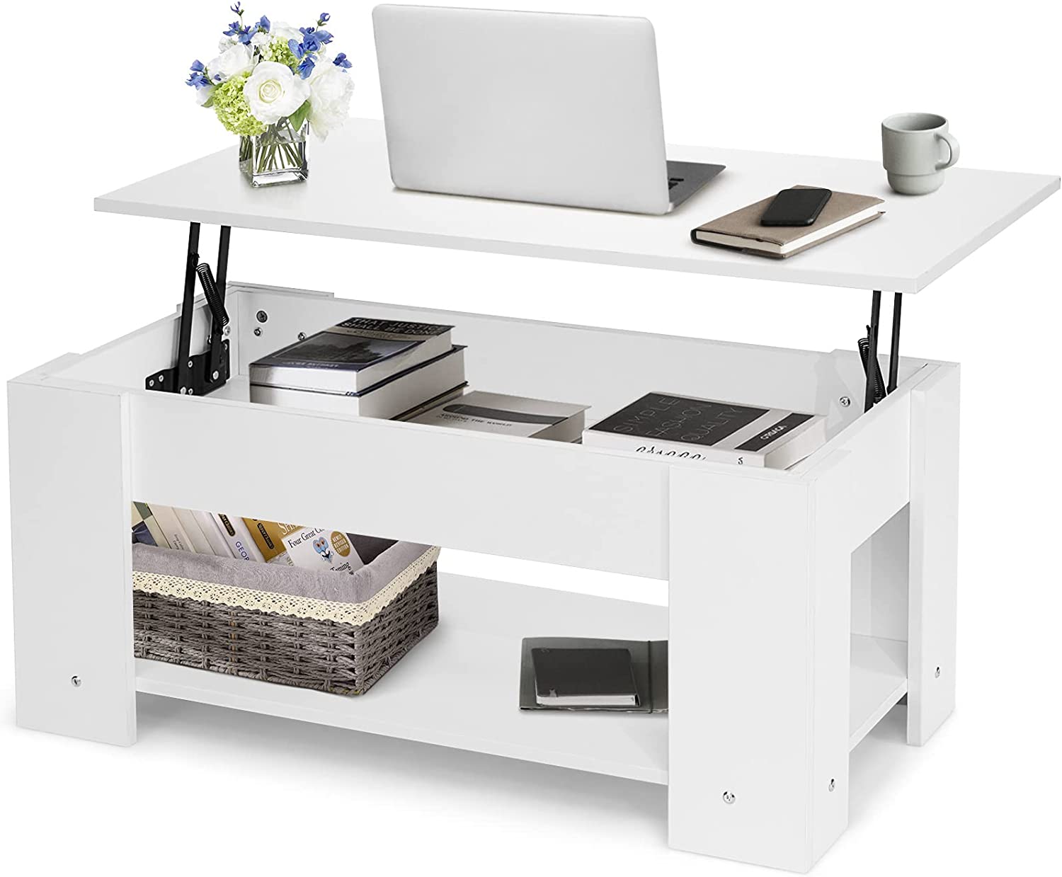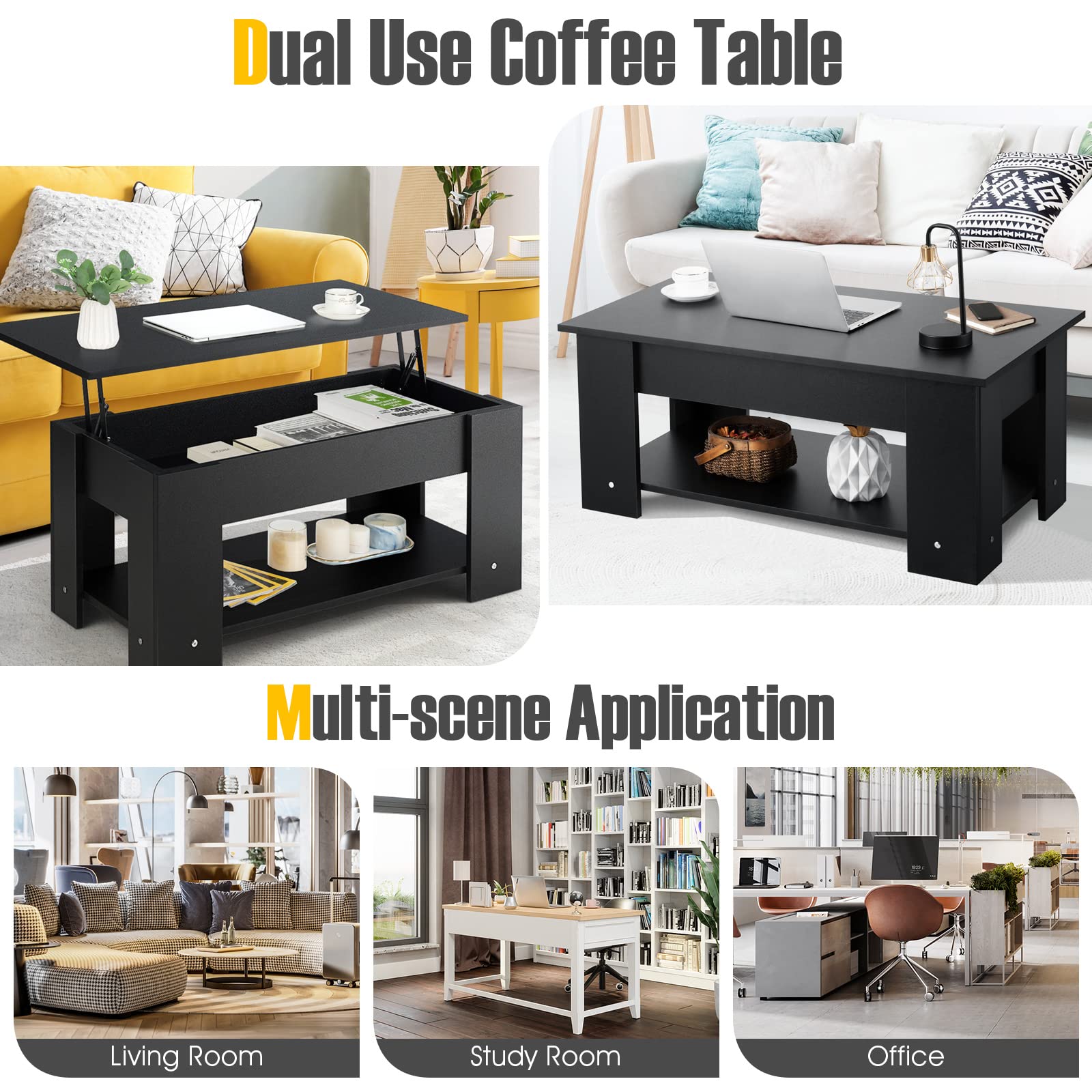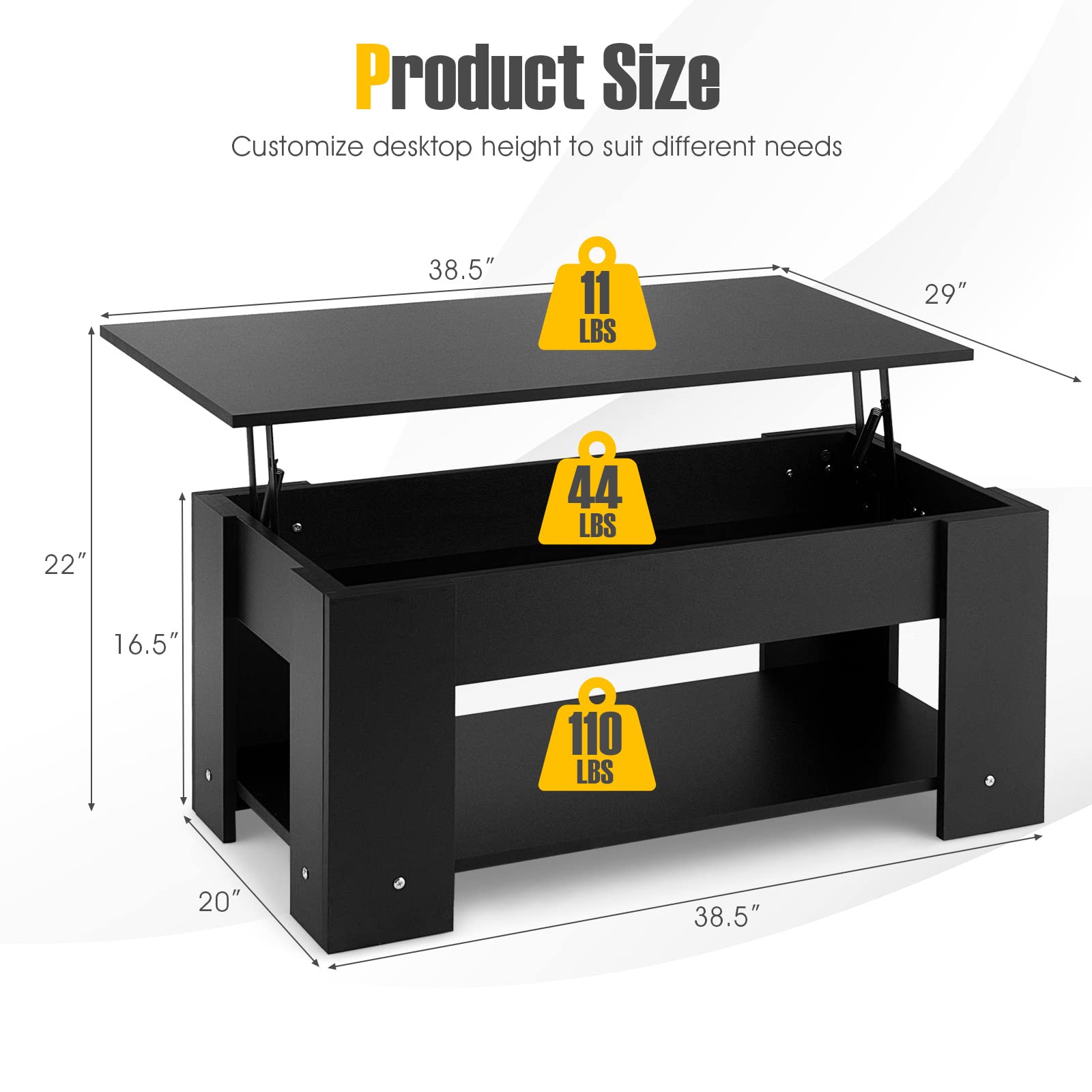 This lift top coffee table is a perfect piece in your home. Metal spring lift mechanism makes it easier to lift and lower the tabletop, providing a comfortable work table or cocktail table for you. In addition, the coffee table offers a spacious tabletop, hidden compartment and an extra shelf for storage and display. Thicken wooden tabletop and sturdy support legs ensure a rugged and stable structure. All in all, this modern lift top coffee table combines aesthetic beauty with great practicality, which is an ideal choice for home and office.