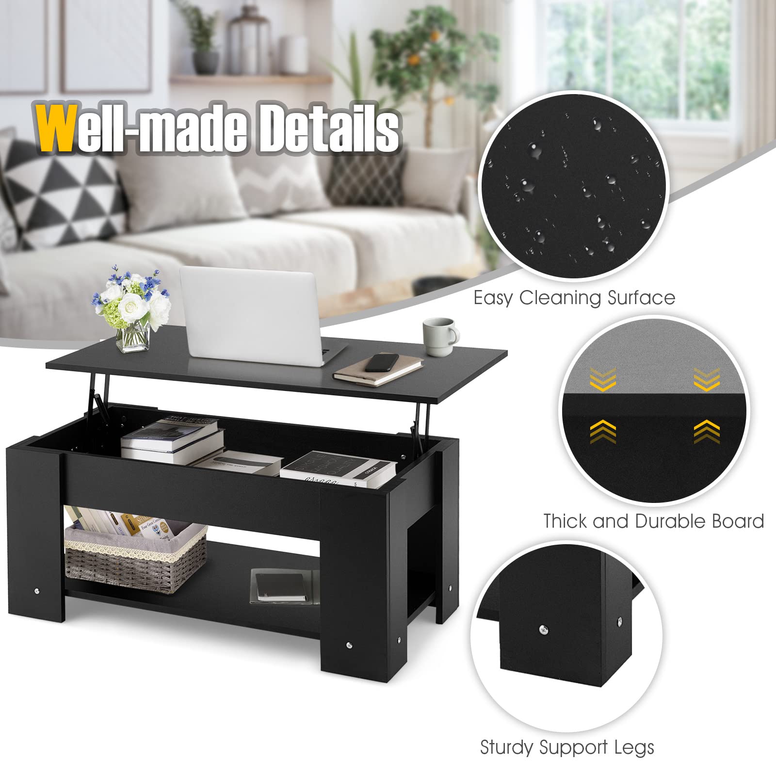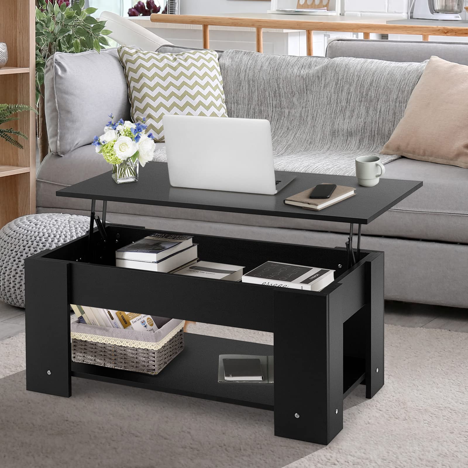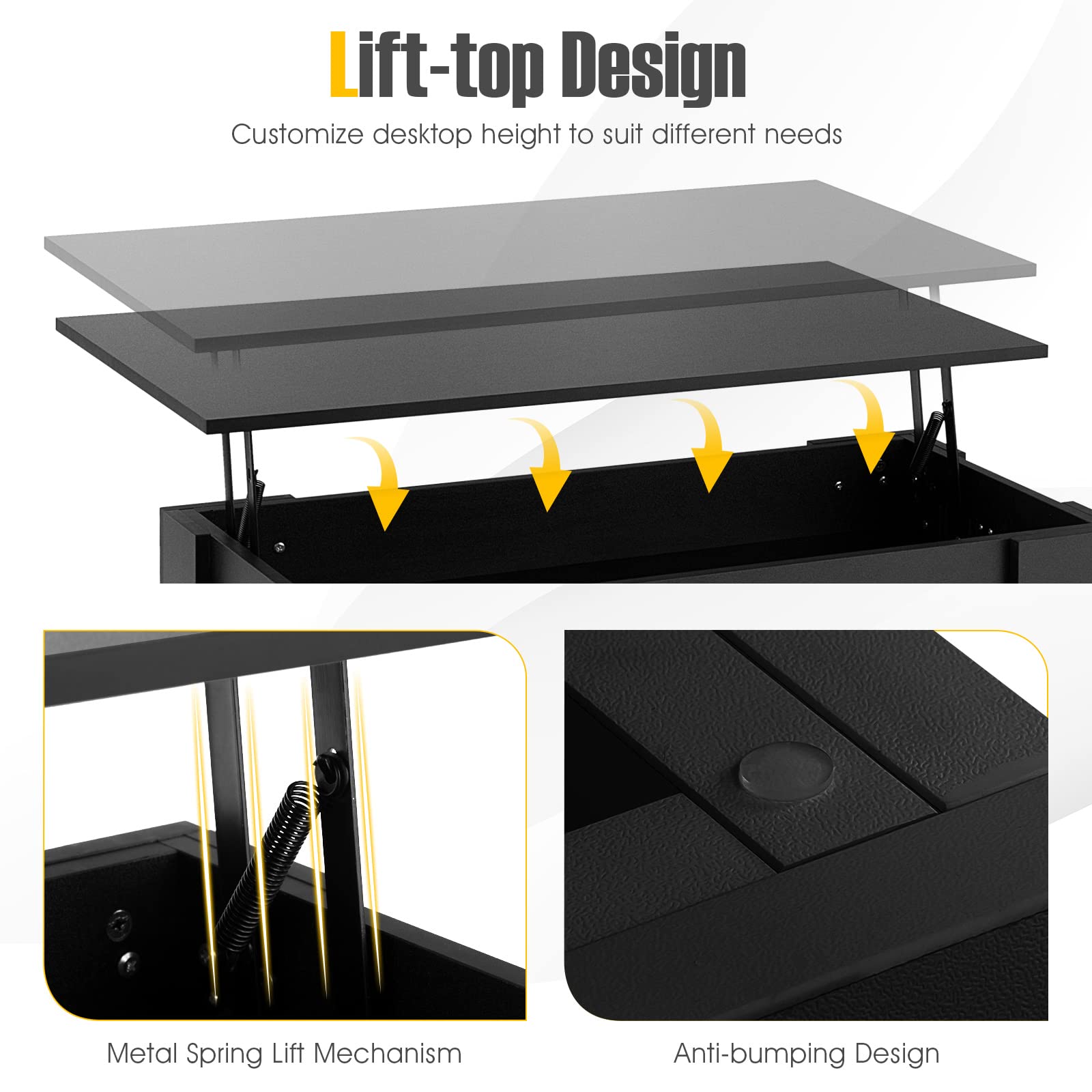This lift top coffee table is a perfect piece in your home. Metal spring lift mechanism makes it easier to lift and lower the tabletop, providing a comfortable work table or cocktail table for you. In addition, the coffee table offers a spacious tabletop, hidden compartment and an extra shelf for storage and display. Thicken wooden tabletop and sturdy support legs ensure a rugged and stable structure. All in all, this modern lift top coffee table combines aesthetic beauty with great practicality, which is an ideal choice for home and office.
