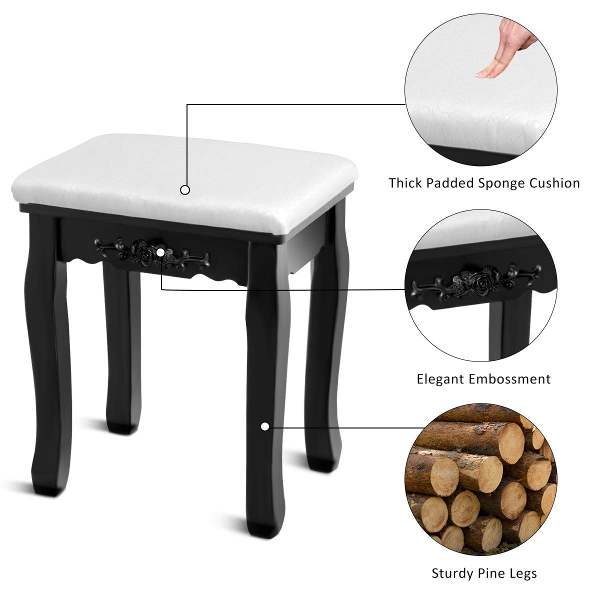 - Durable with 100% Solid Wood Legs: The table top is made of a very thick board to ensure its firmness. In order to increase the weight capacity of the table, the dressing table and chair legs are made of 100% solid wood. Therefore, the entire dressing table set is very firm and stable, it is not easy to shake, and it is very durable after careful maintenance and use. You don't need frequent replacements.