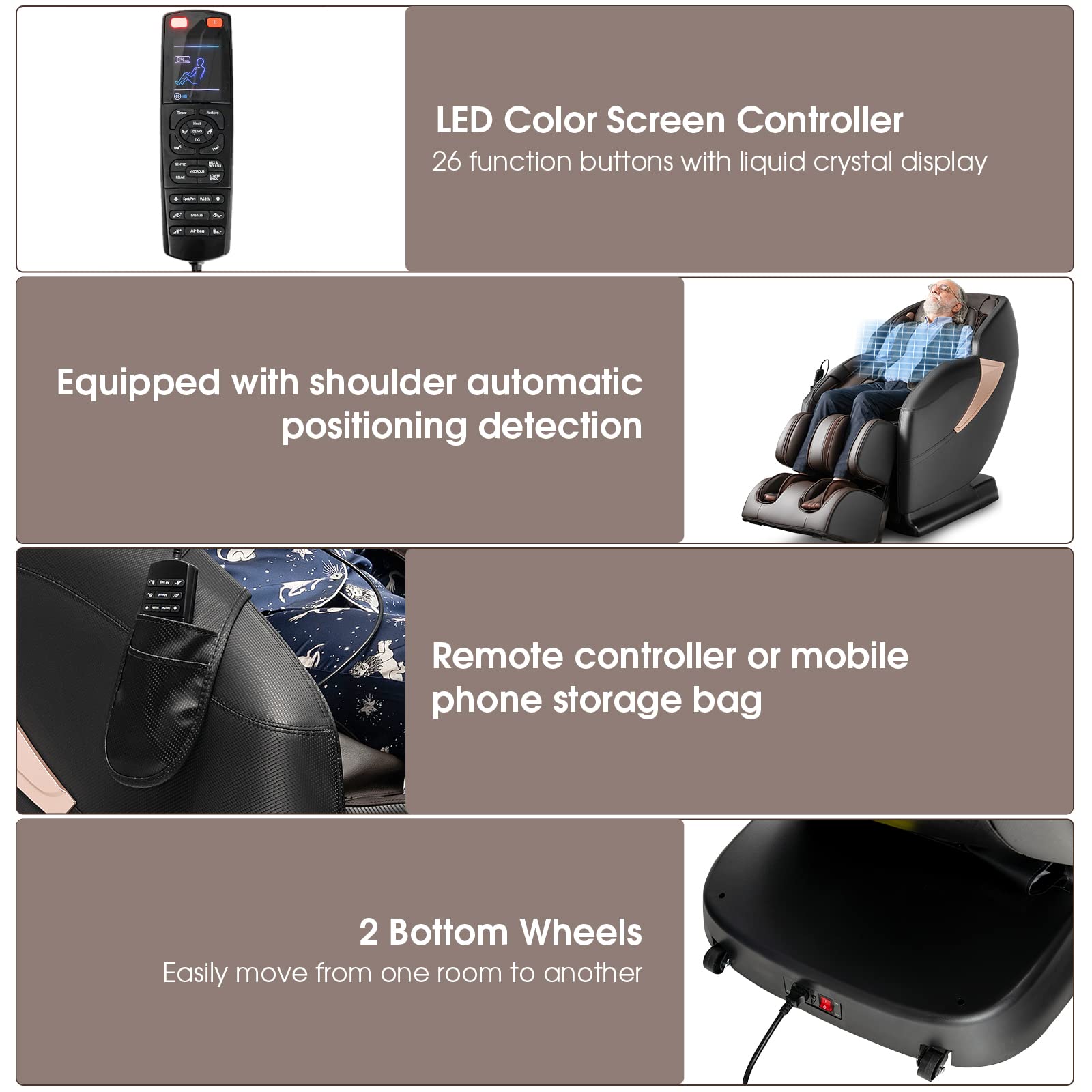 - Intelligent Voice Control & Wireless Speaker: After removing the packing of this installation-free massage chair, you can use the LED color screen controller with 26 function buttons or just say "Hello massage" to wake up the voice control function. What's more, the massage chair can be connected to your device, so you can enjoy the music during the massage.