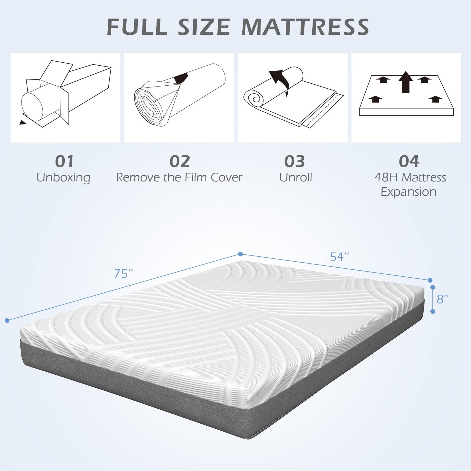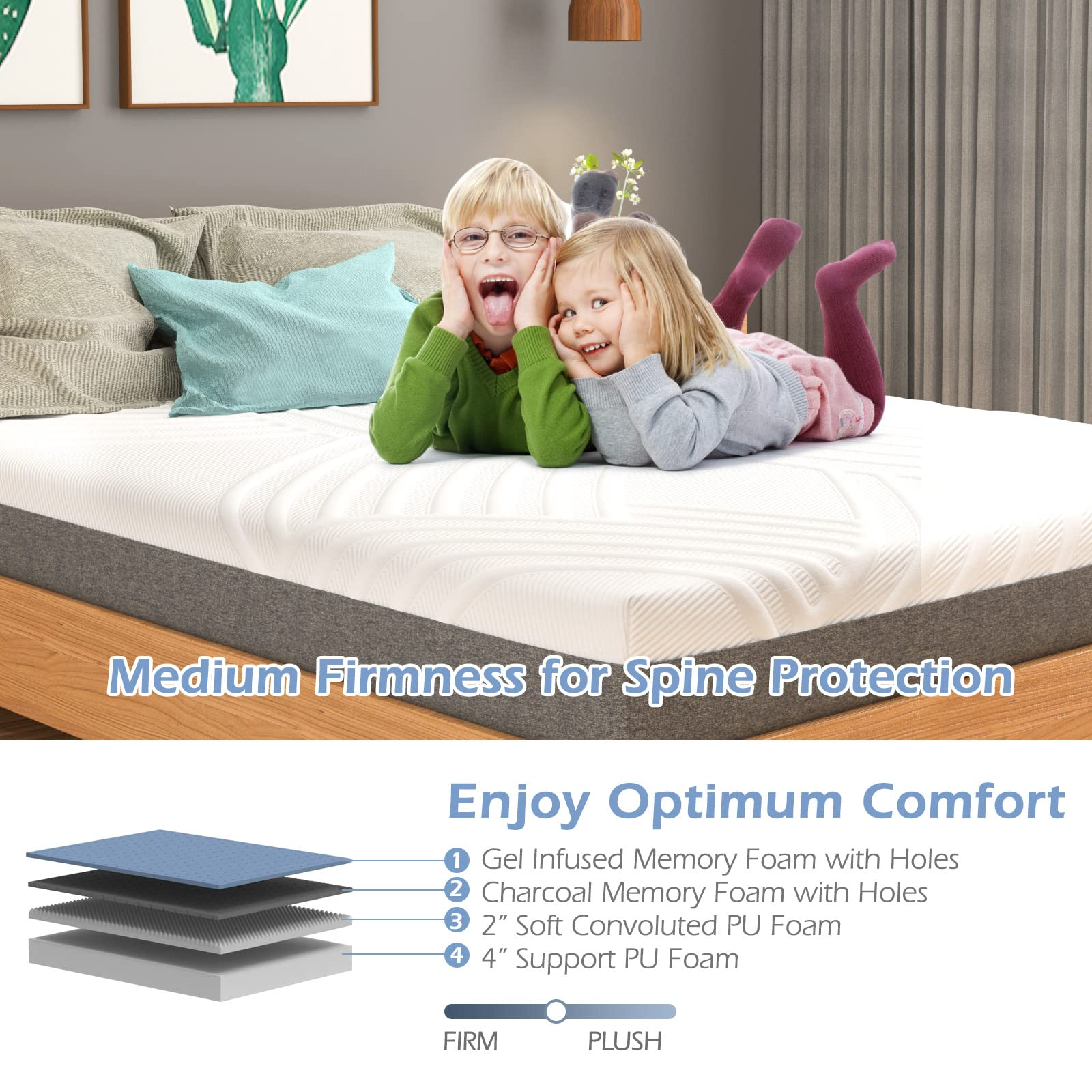 Choose our 8-inch memory foam mattress and enjoy a comfy sleep! The mattress features a gel-infused memory foam layer that facilitates heat dissipation and helps regulate sleeping temperature. Under the layer there is a bamboo charcoal foam, which is also porous to absorb peculiar smell and keep a refreshing environment. What's more, the lower supportive PU foam in egg-crate shape provides effective support while enhancing air circulation. So, it is very comfortable to sleep on. Besides, the material selected is flame-retardant and safe to use. And the cover with zipper can be removed for cleaning,