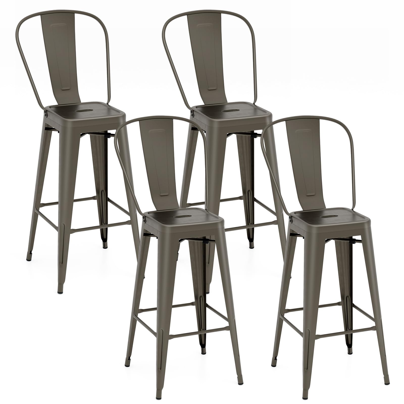 Giantex Metal Bar Stools Set of 4, 30" High Back Bar Height Chairs w/Footrest & Removable Backrest