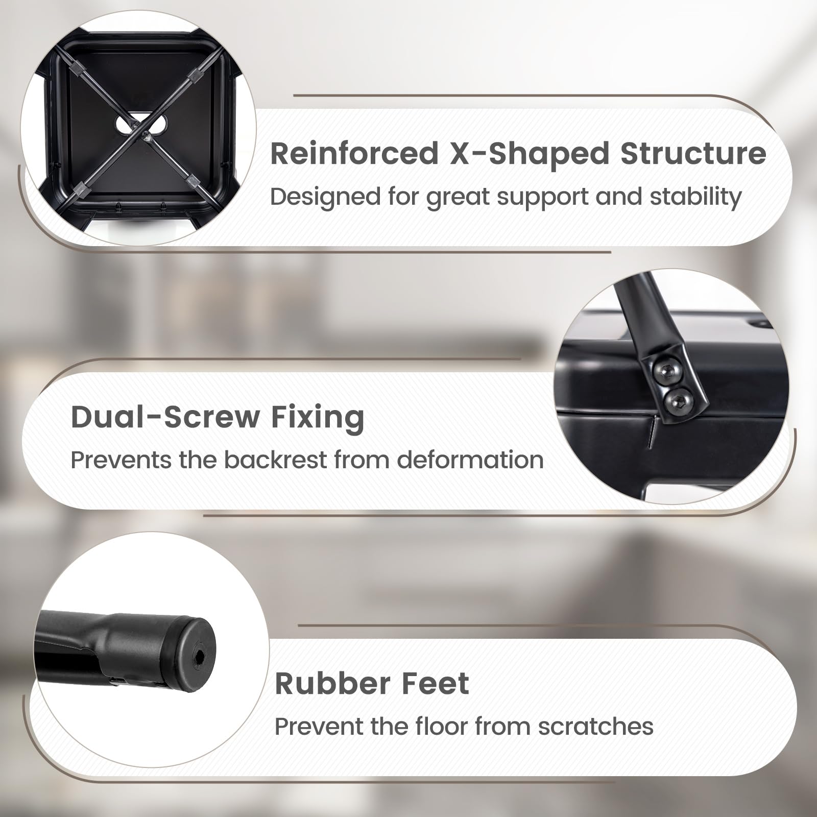 • [Sturdy Metal Frame]: Supported by sturdy metal frame, these bar chairs offer a load capacity of up to 330 lbs. Moreover, the reinforced X-shaped structure and rubber feet improve overall stability while dual-screw fixing prevents the backrest from deformation.