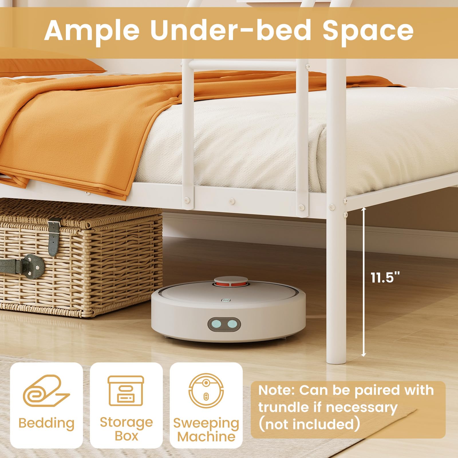 • Suitable for Various Scenarios: With sleek lines and modern style, the heavy-duty metal bunk bed fits well with various home styles. Whether used for apartments, dormitory, or children's rooms, the bed frame is a practical and stylish addition.