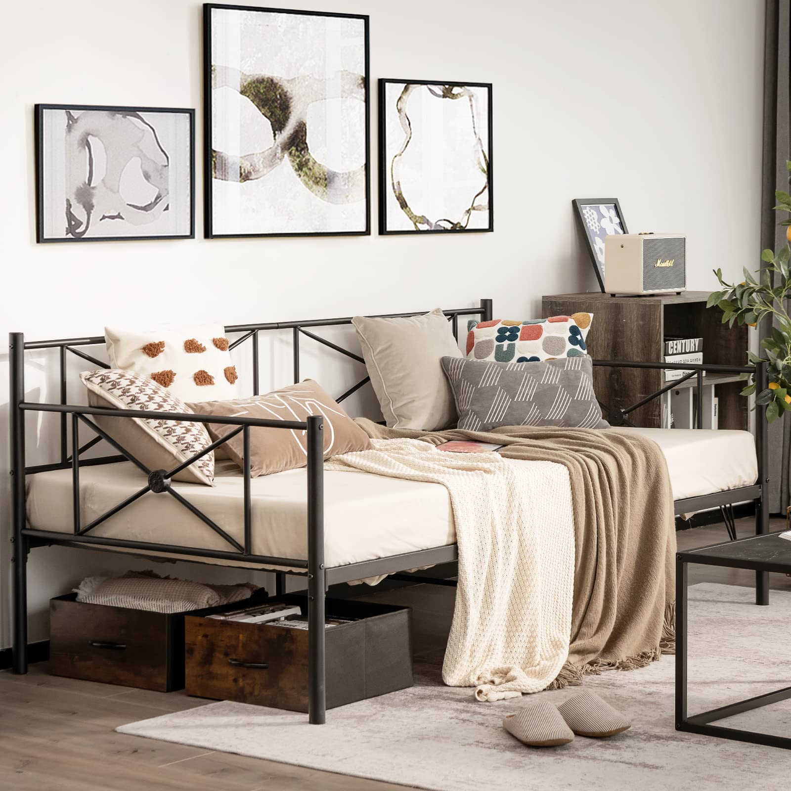 Giantex Metal Daybed Frame Twin Size, for Living Room Bedroom Guest Room, Easy Assembly, Black & White