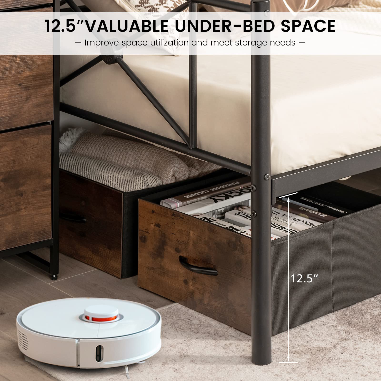 • Valuable Under-bed Storage Space: 12.5" sufficient under-bed clearance allows you to store boxes, suitcases, and other idle things with ease, which improves space utilization while making your homes tidy and clean. Other than that, enough space beneath the bed also brings much convenience to clean the room.
