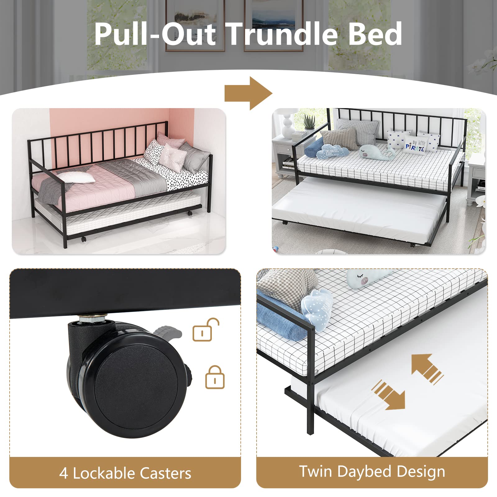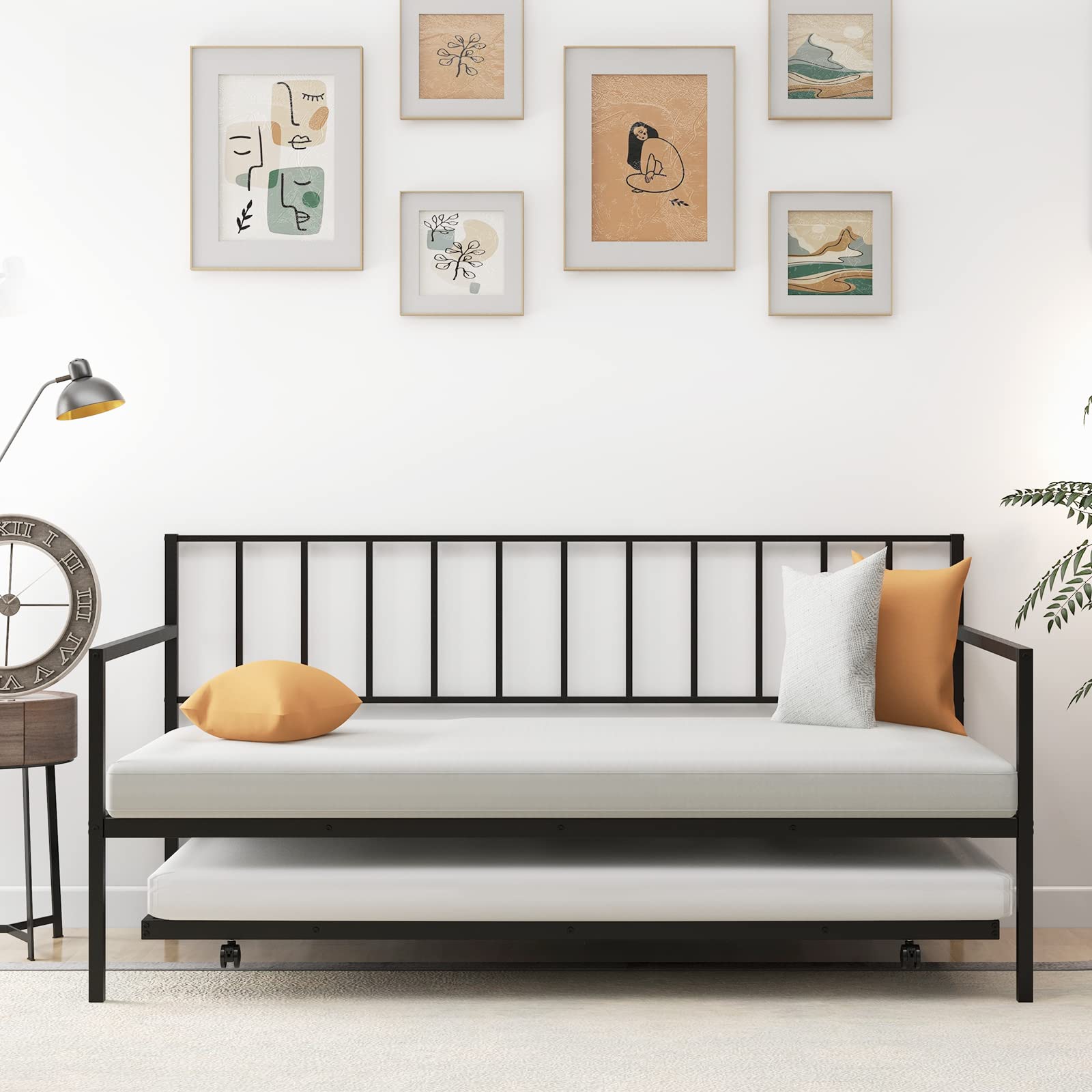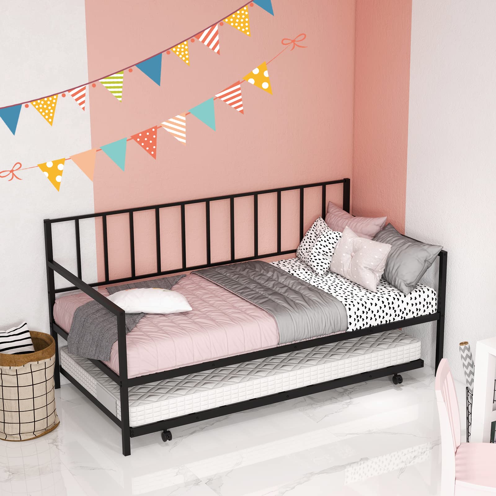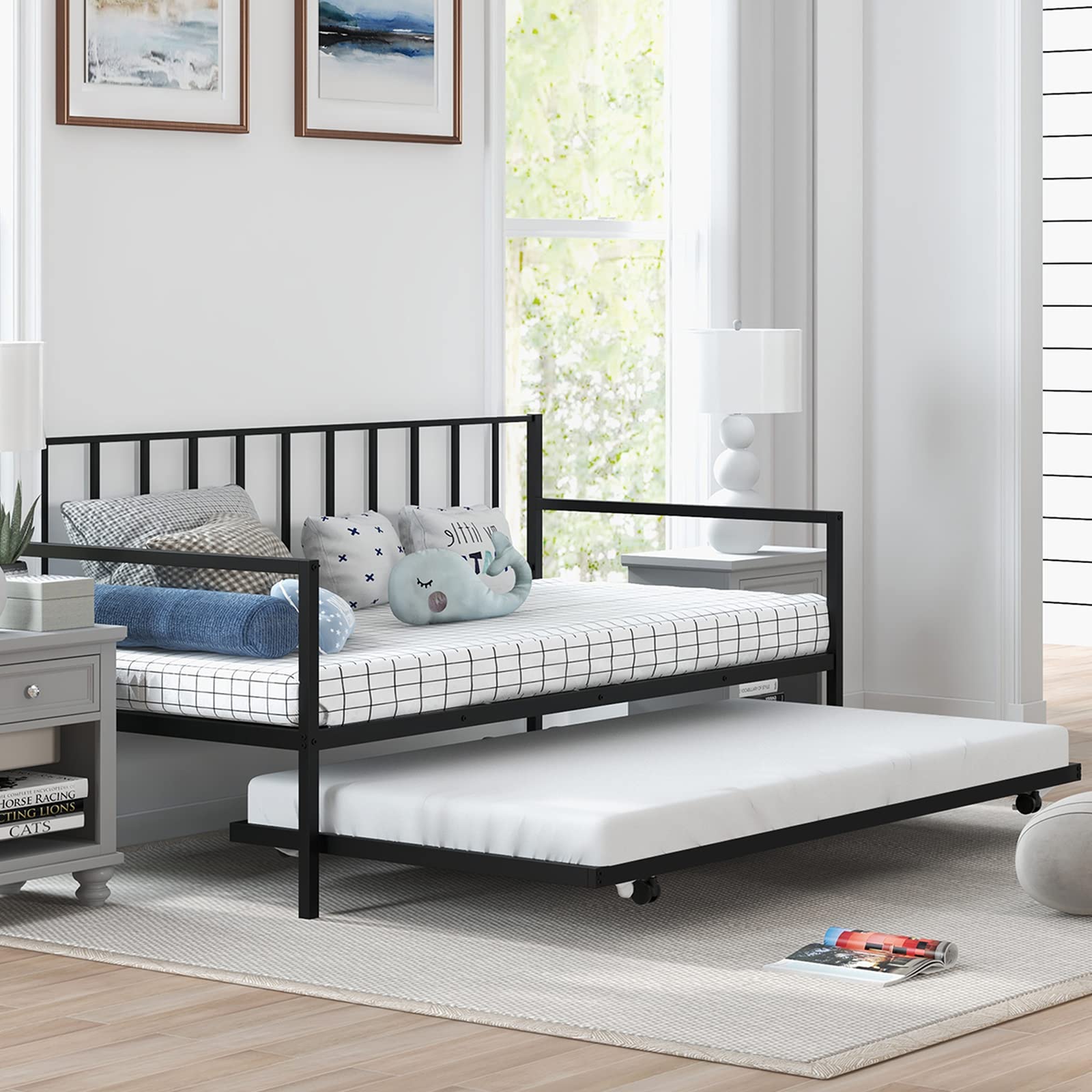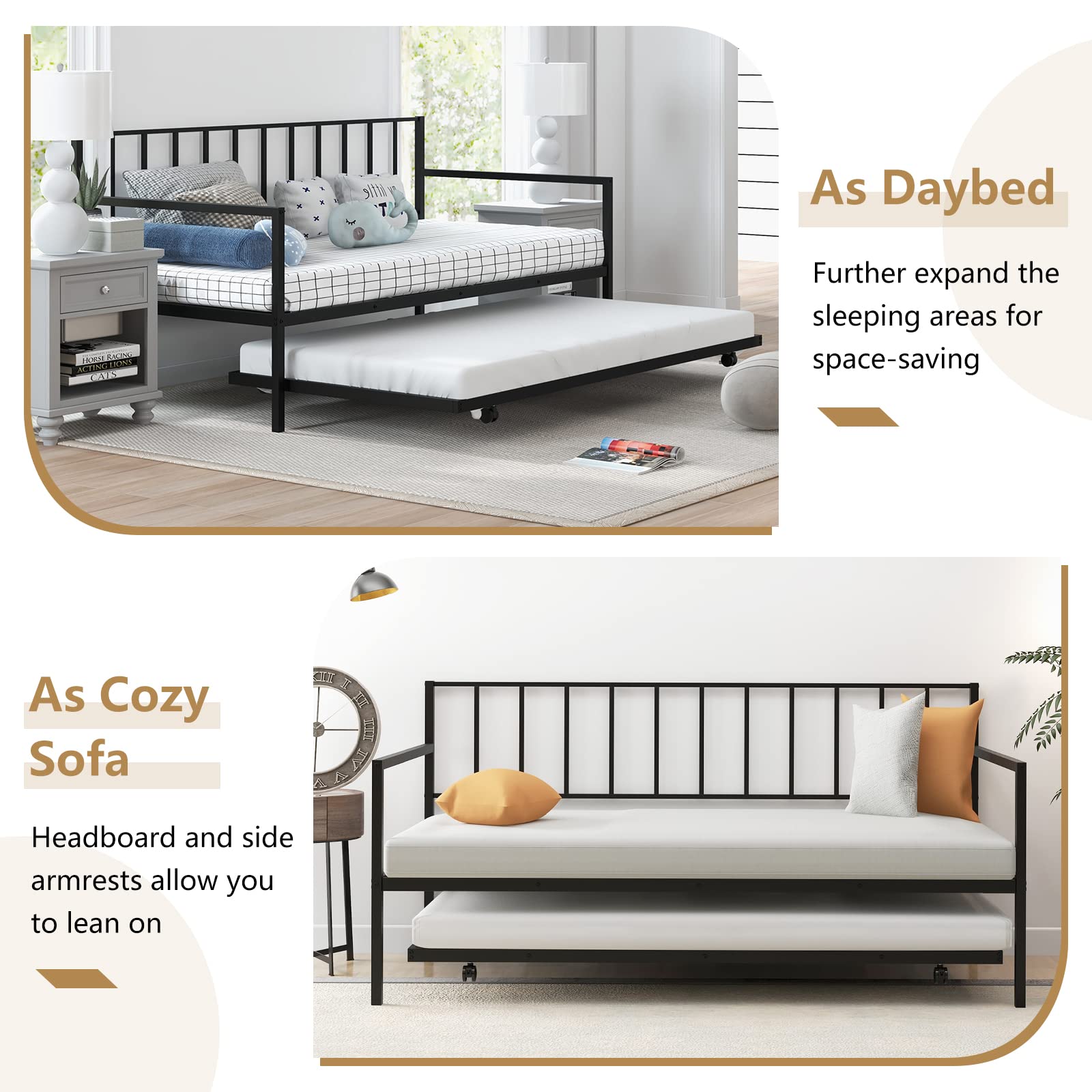 [Multifunctional Twin Daybed Design]: The twin daybed with a pull-out trundle bed is multipurpose that can be converted into a twin bed or a cozy sofa with side armrests and headboard whenever the situation calls for it. Children or guests can sit on it, read books, play games, or lie down and rest.