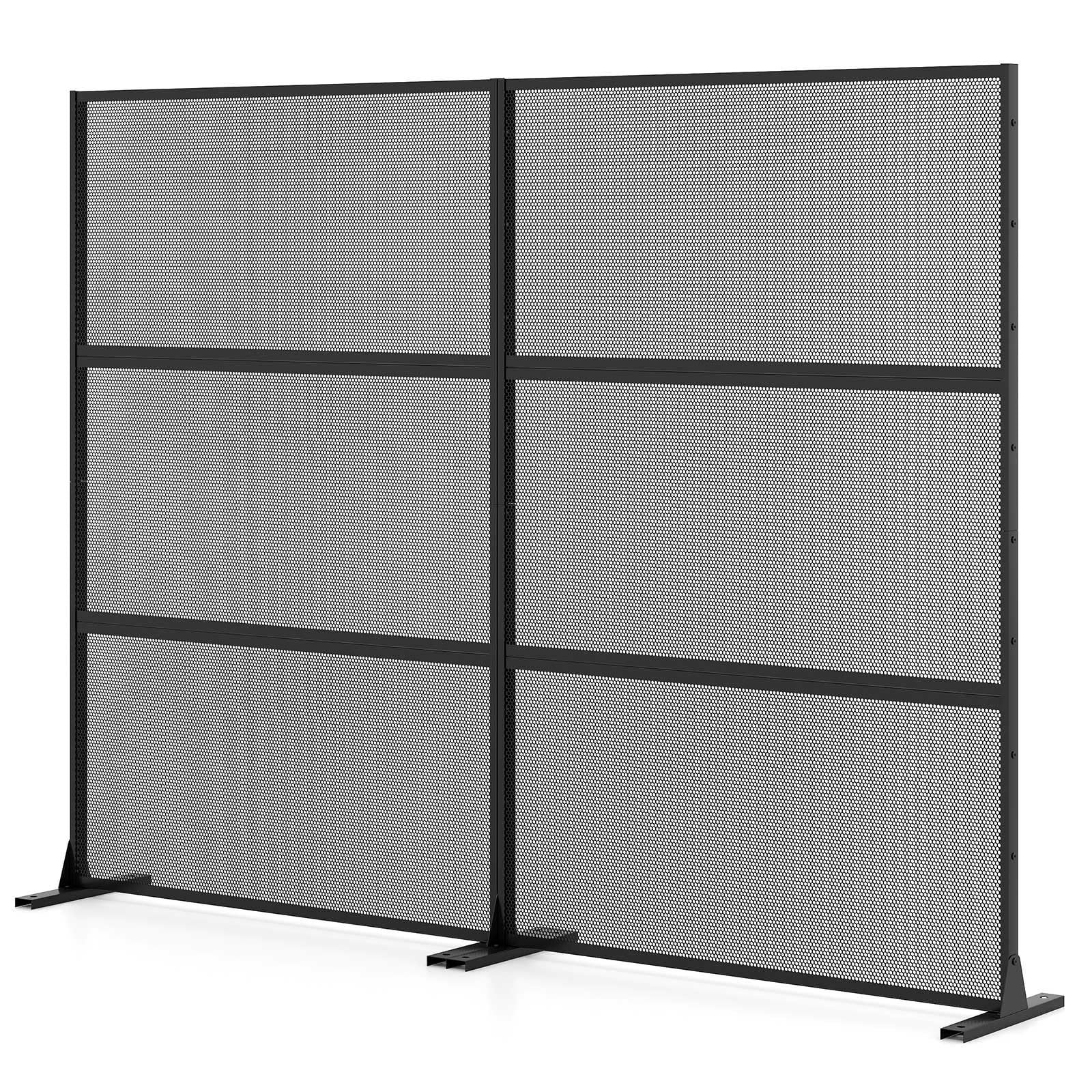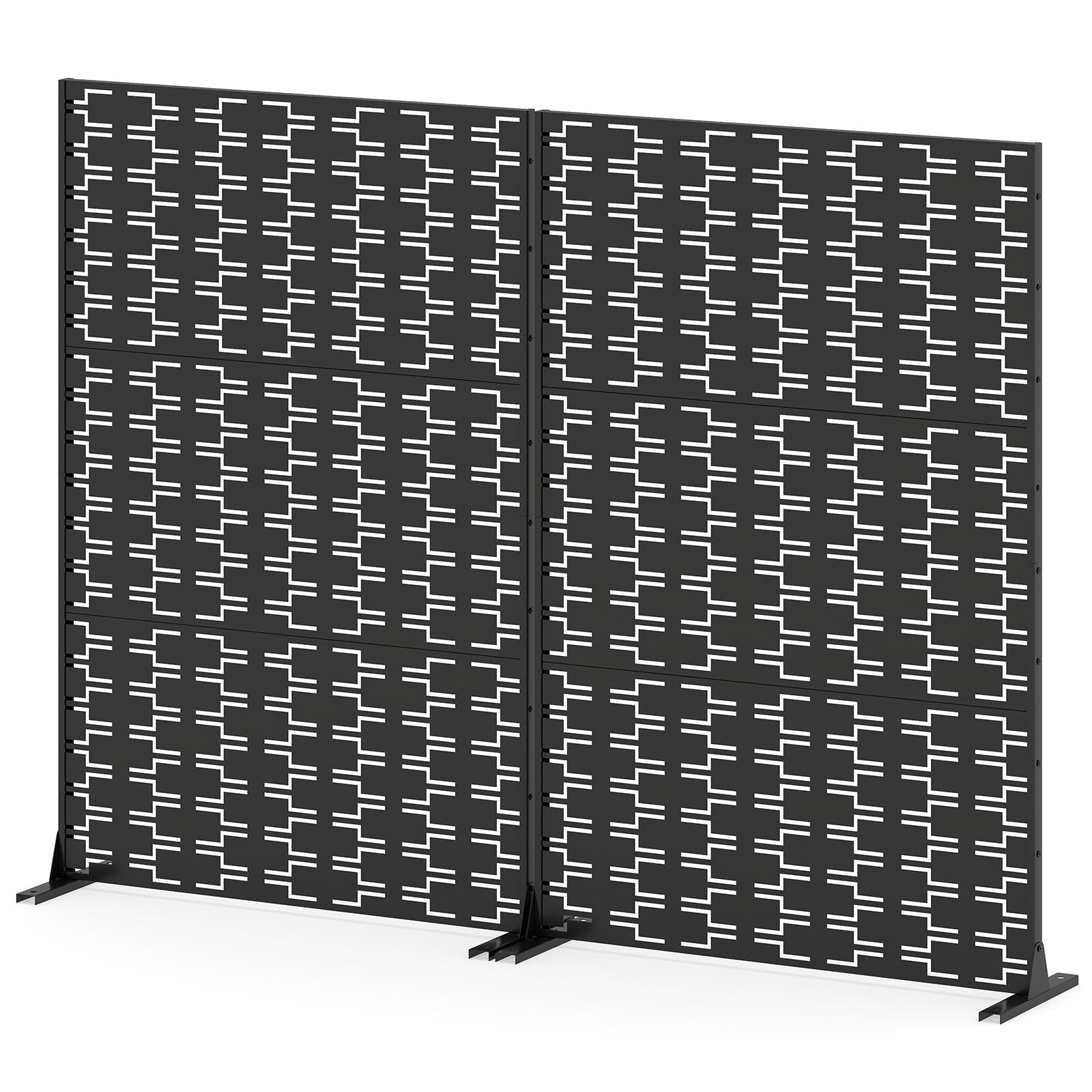 Enhance privacy and style in any space with this freestanding metal screen, featuring an artistic hollow pattern. Measuring 72''H x 48''W, the durable metal construction with a powder-coated finish ensures long-lasting stability. The H-shaped base provides extra support, while 4 included expansion bolts allow secure outdoor installation on concrete. Easily connect multiple panels using the included screws to create custom layouts for patios, gardens, or balconies. Beyond privacy, this versatile panel can serve as a trellis for climbing plants or a stylish cover for items like air conditioning units.