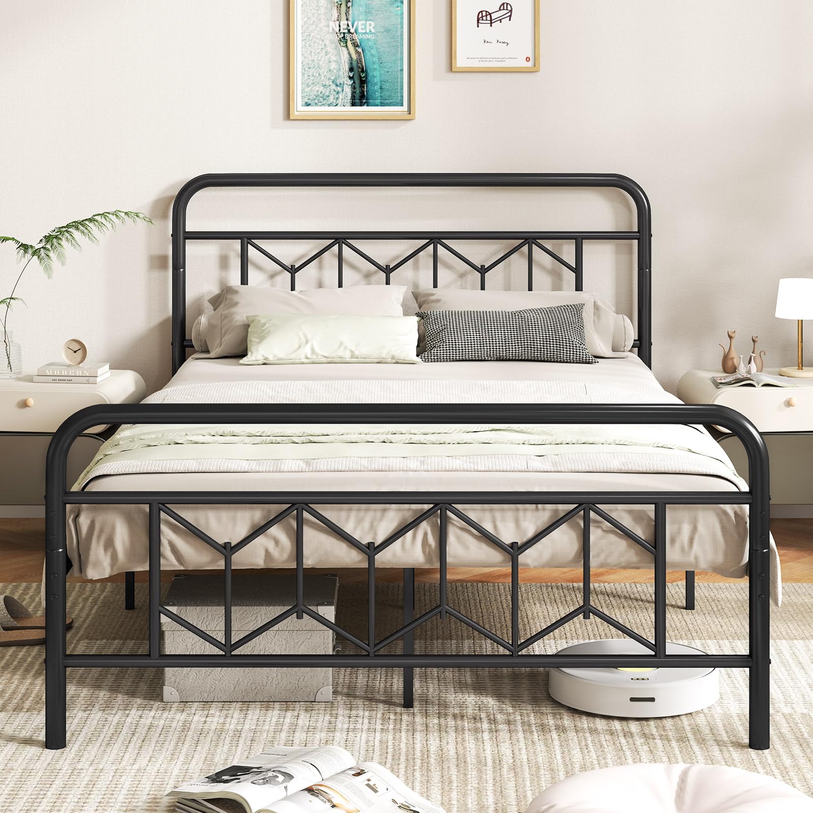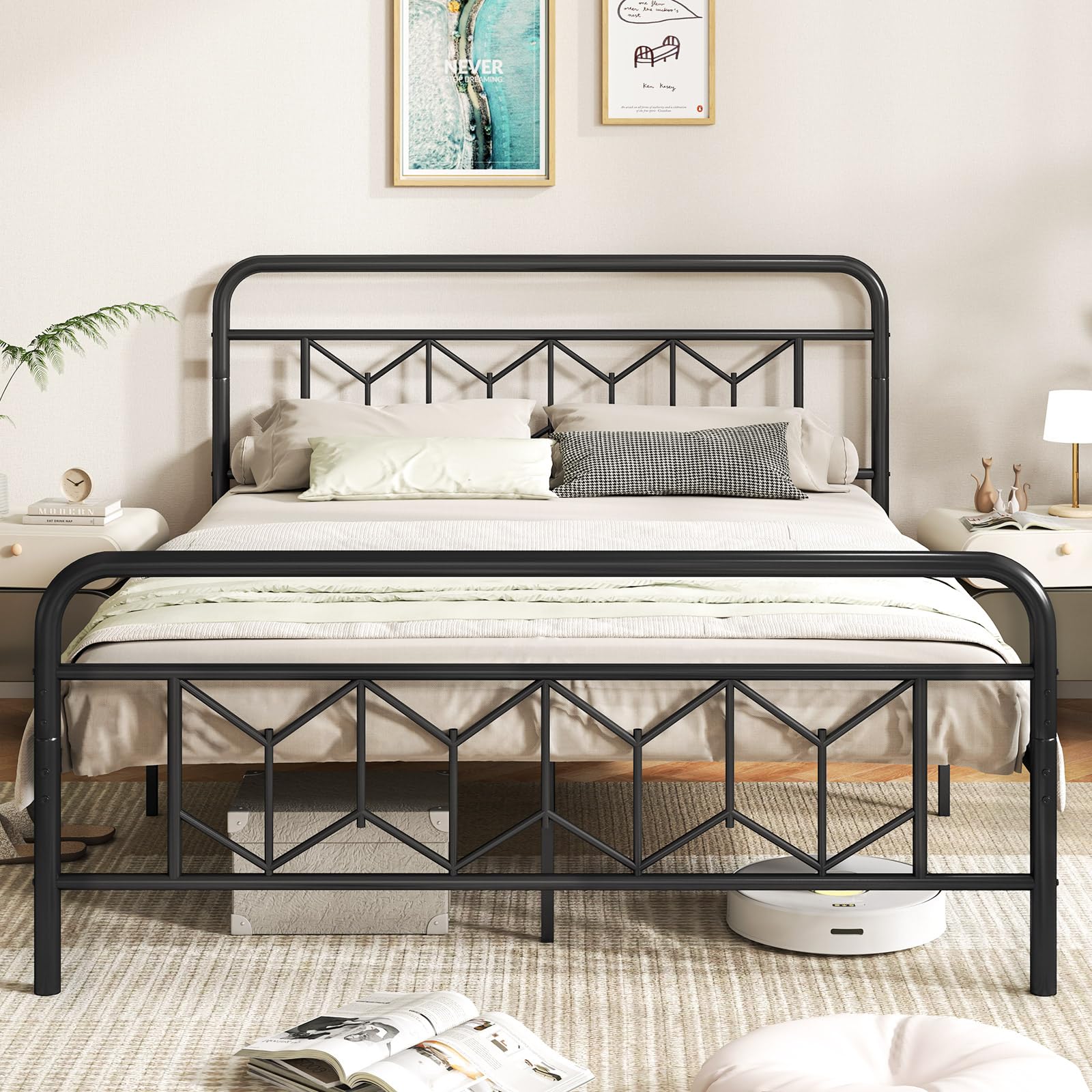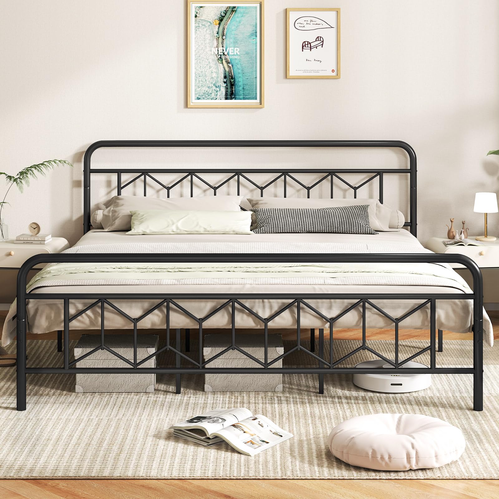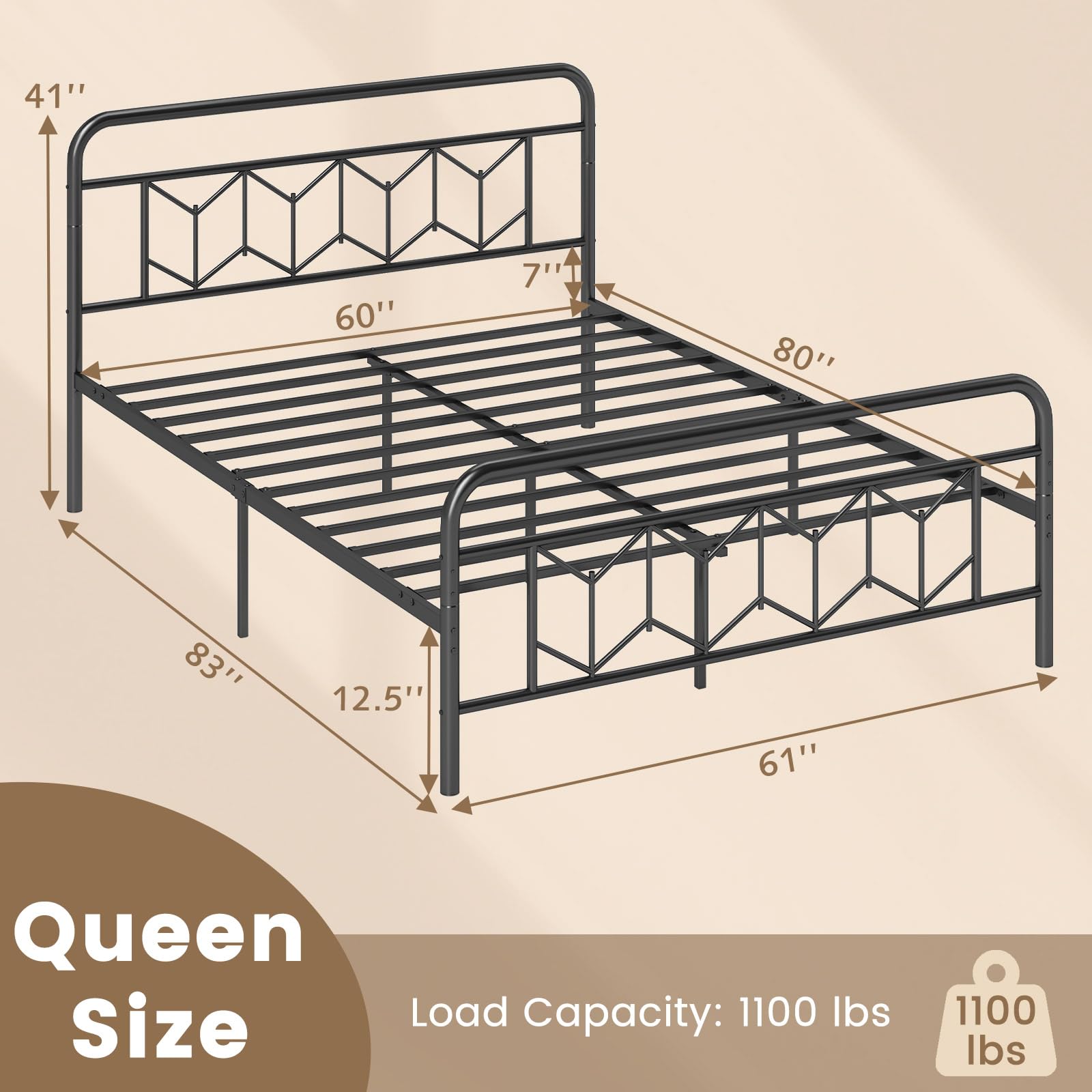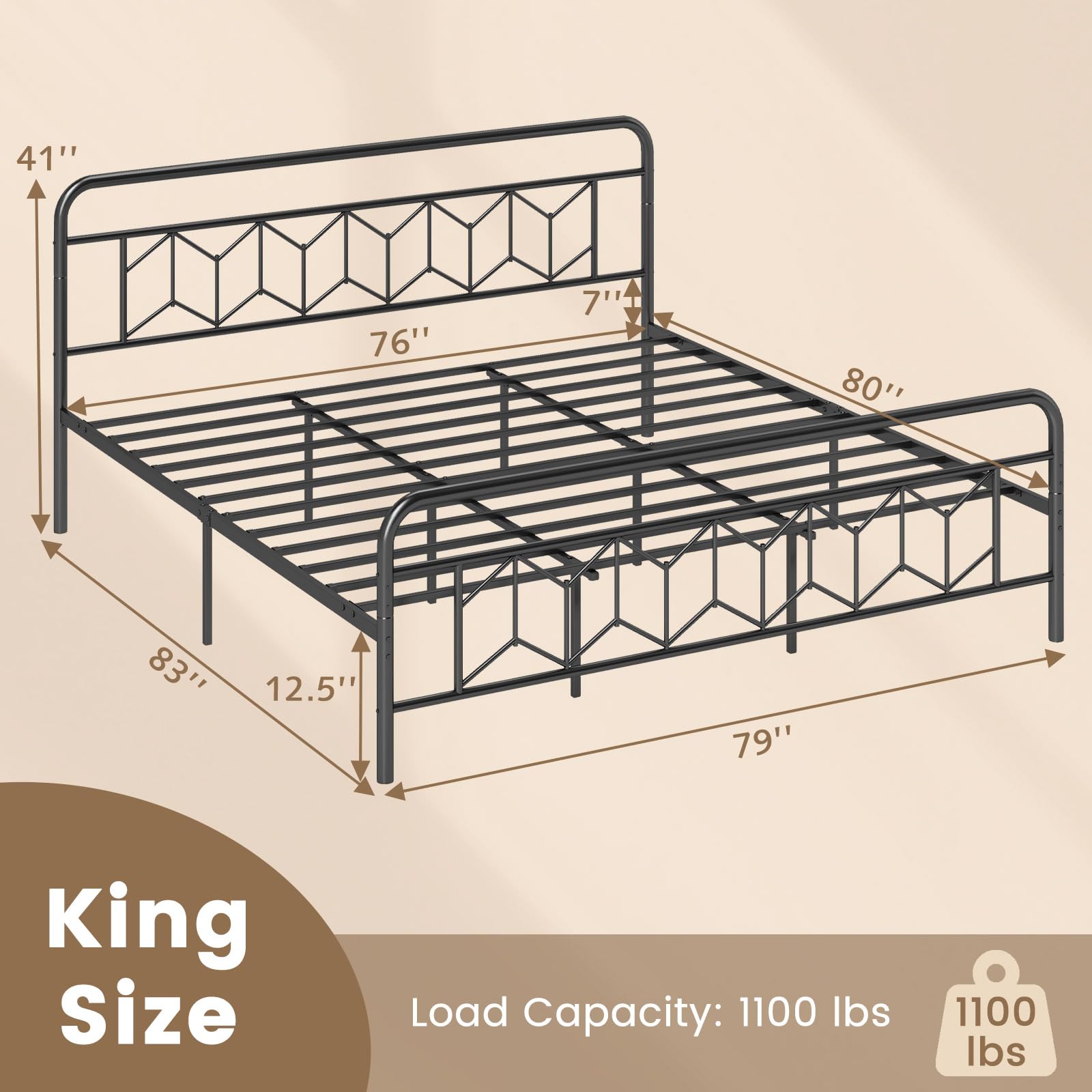 Embrace sophistication in your sleep space with our metal platform bed frame! The diamond-accented high headboard and footboard add a modern, elegant touch, while the all-metal construction with extra support legs ensures exceptional stability and a weight capacity of up to 660 lbs. Designed with 12 heavy-duty metal slats, the twin bed frame eliminates the need for a box spring, offering reliable support for your mattress. It also features 12.5” of under-bed clearance, making it ideal for storage and easy cleaning. Additionally, the innovative snap-lock design allows for quick, hassle-free assembly of the slats. Our metal bed frame can be a practical and stylish addition to your bedroom.