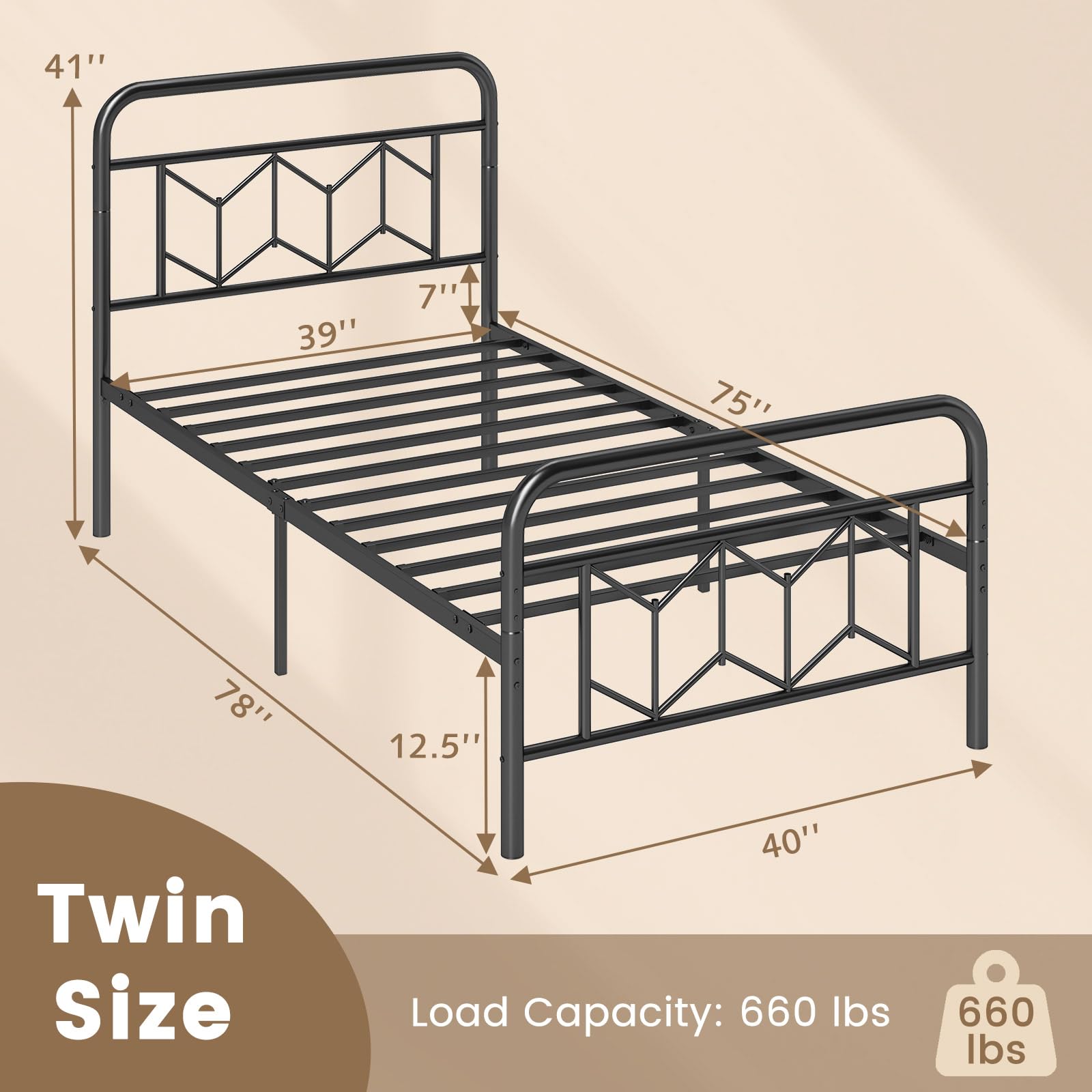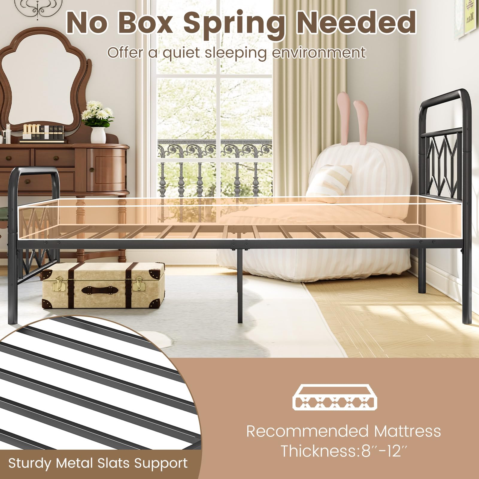 Giantex Metal Twin Bed Frames with Victorian Style Headboard & Footboard, Heavy Duty Slats Support Mattress Foundation
