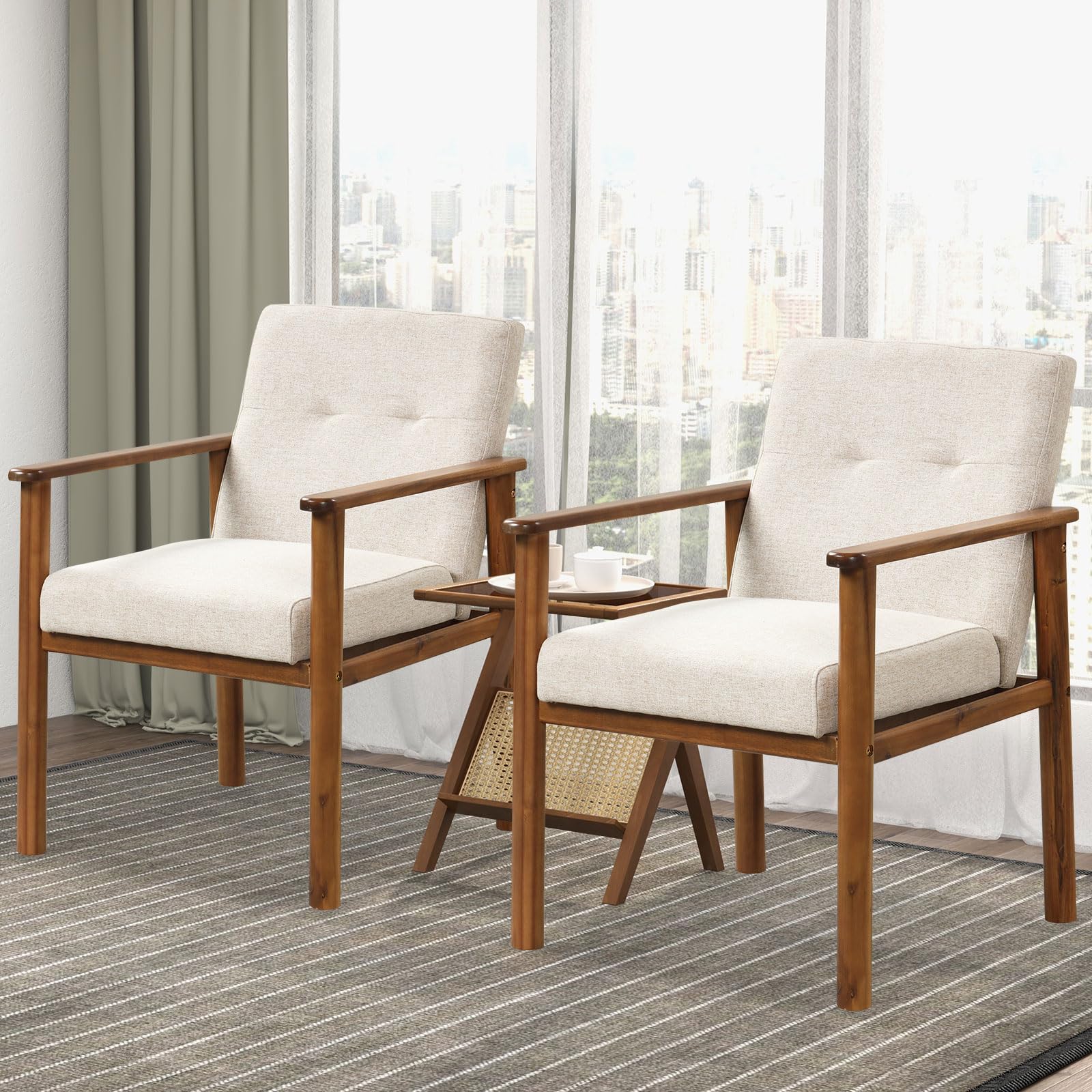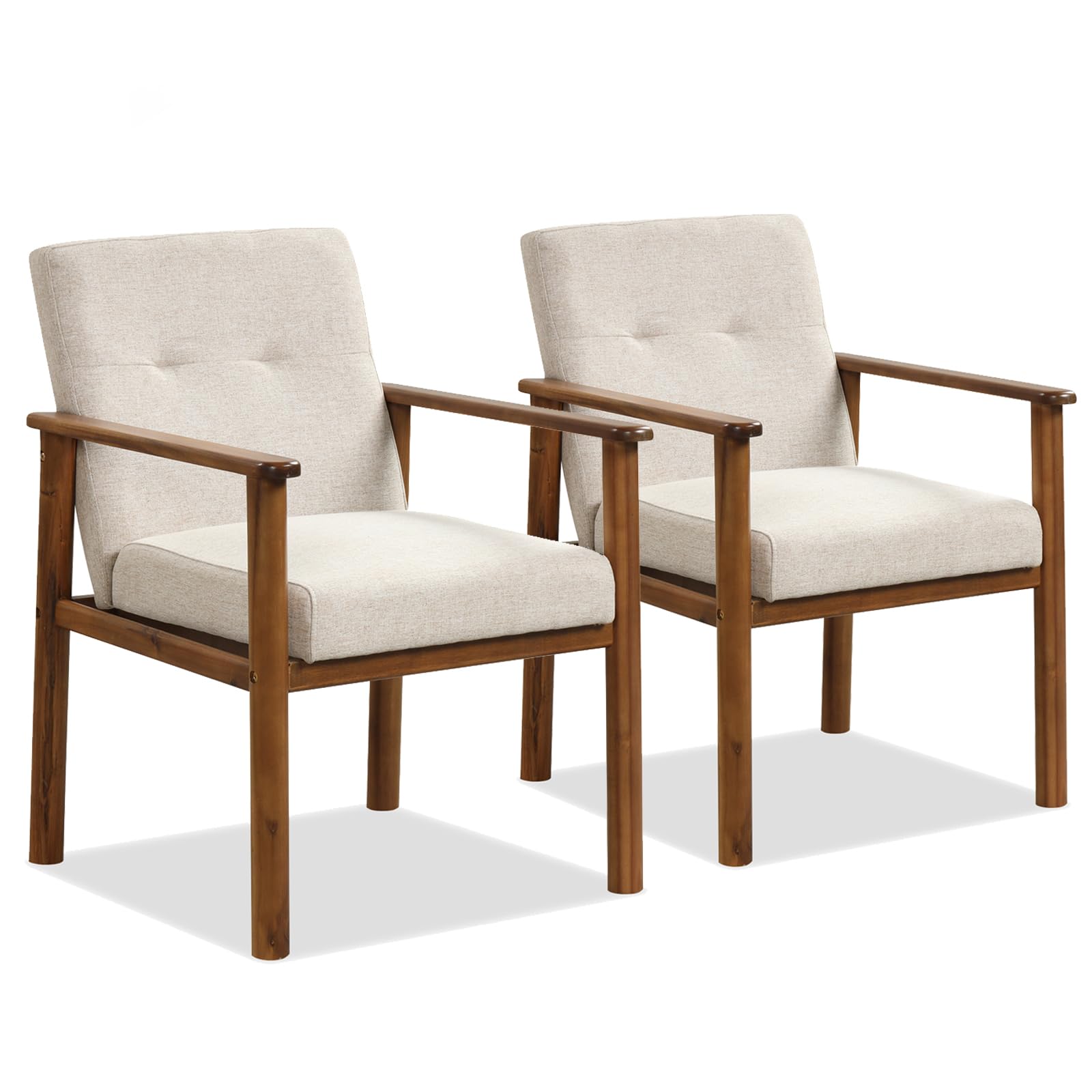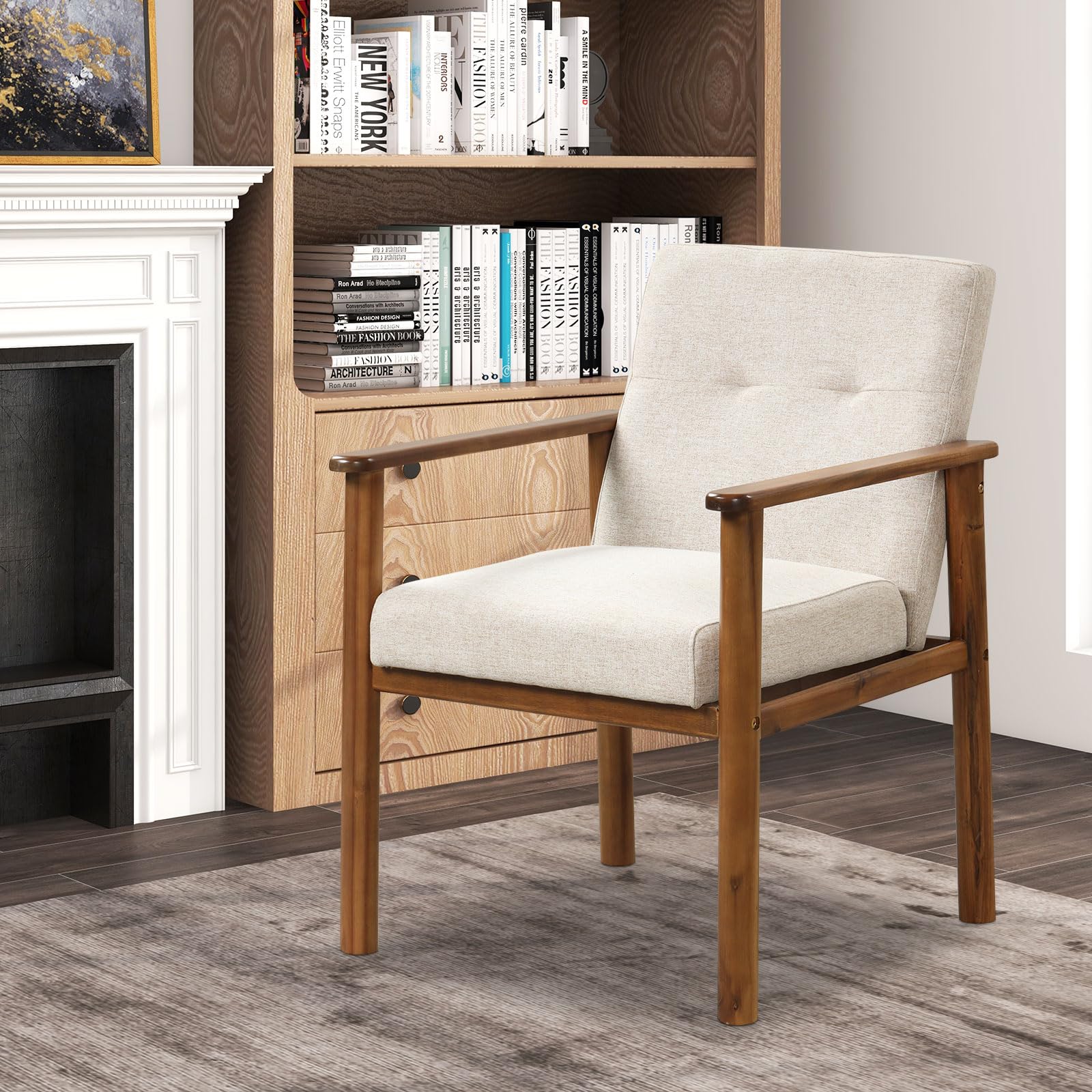 It features an inclined backrest and a comfortable padded seat cushion to provide you with a cozy seating option. High-quality linen fabric and sponge allow you to sit comfortably. Meanwhile, the side armrests are perfect for resting your hands to help you relieve fatigue. Its solid wood construction also allows for a strong weight capacity of 250 lbs. What’s more, with modern style and simple colors, our accent chair matches a variety of room styles. You can place it in your living room, bedroom, study or guest room.