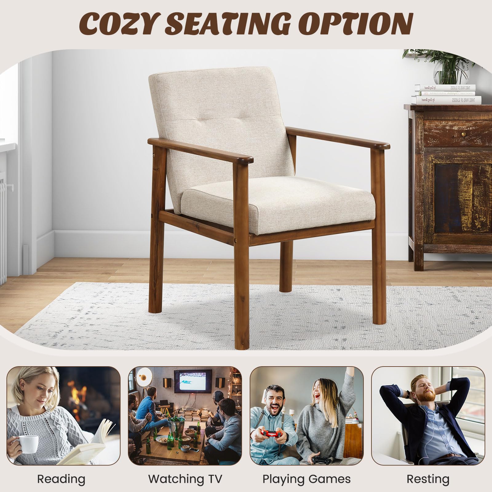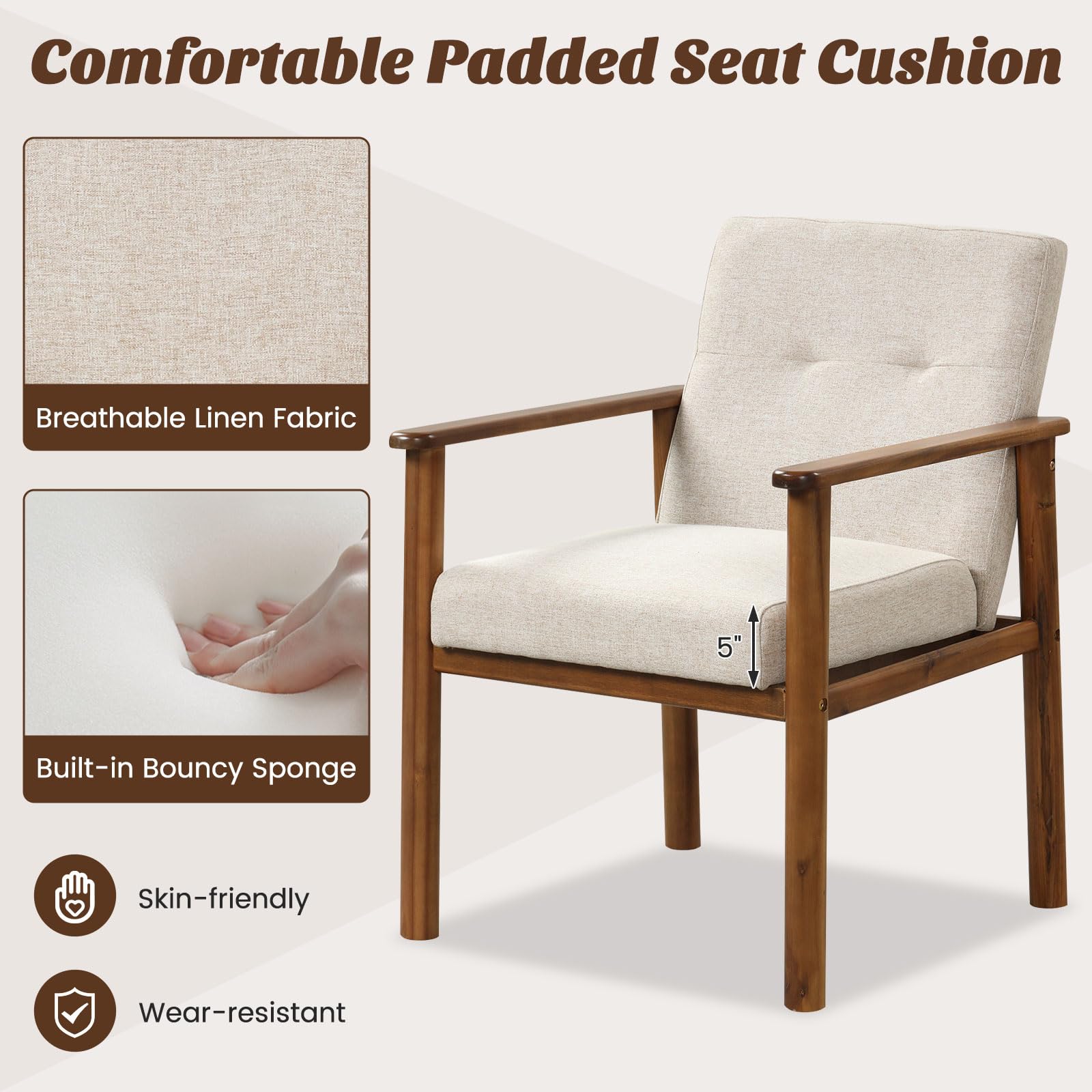- 5" Thick Padded Seat Cushion: Giantex modern accent chair has a 5" thick seat cushion. The seat cushion is covered with breathable linen fabric and filled with elastic sponge for skin-friendly touch and superior softness. Thus, you will feel comfortable even after long-term sitting.