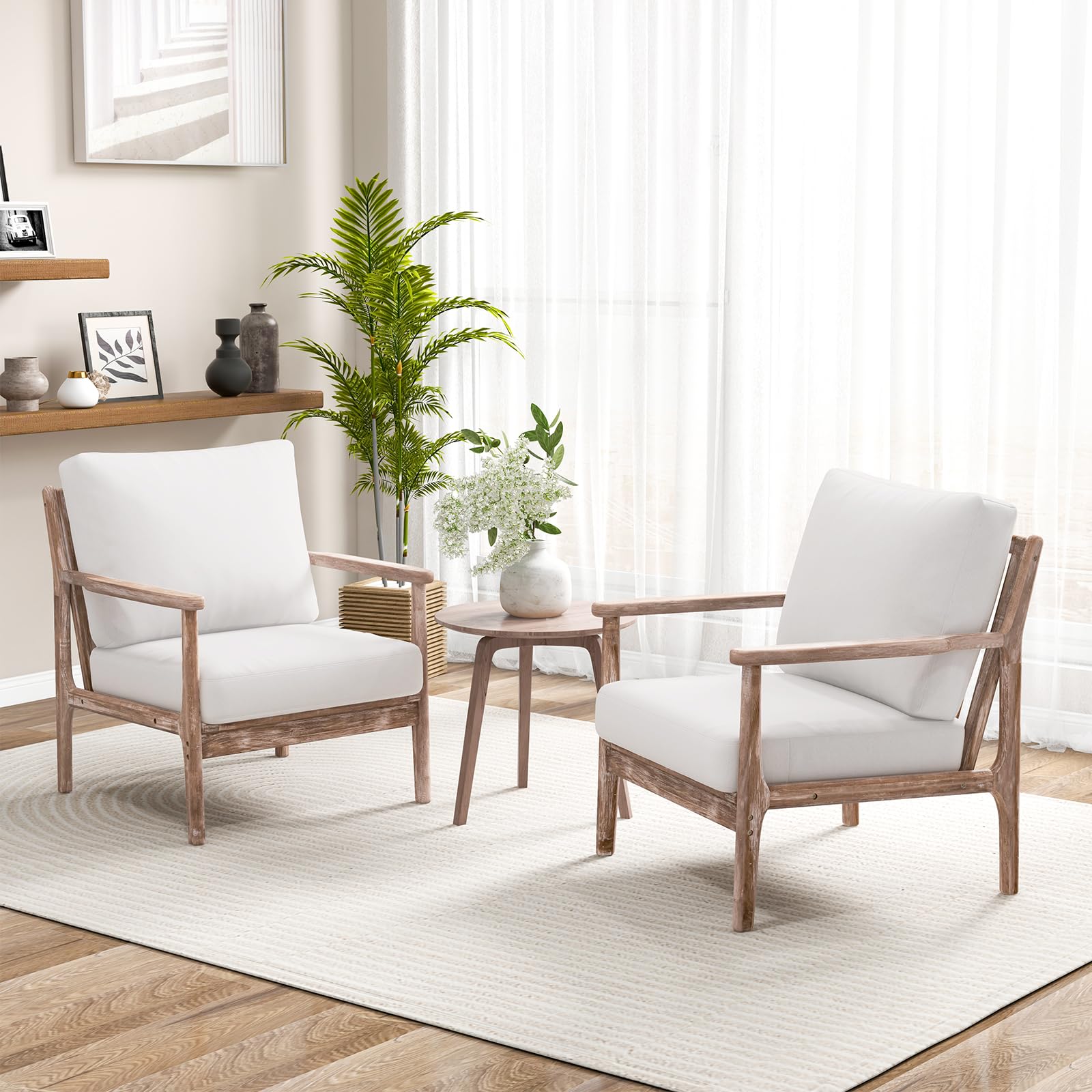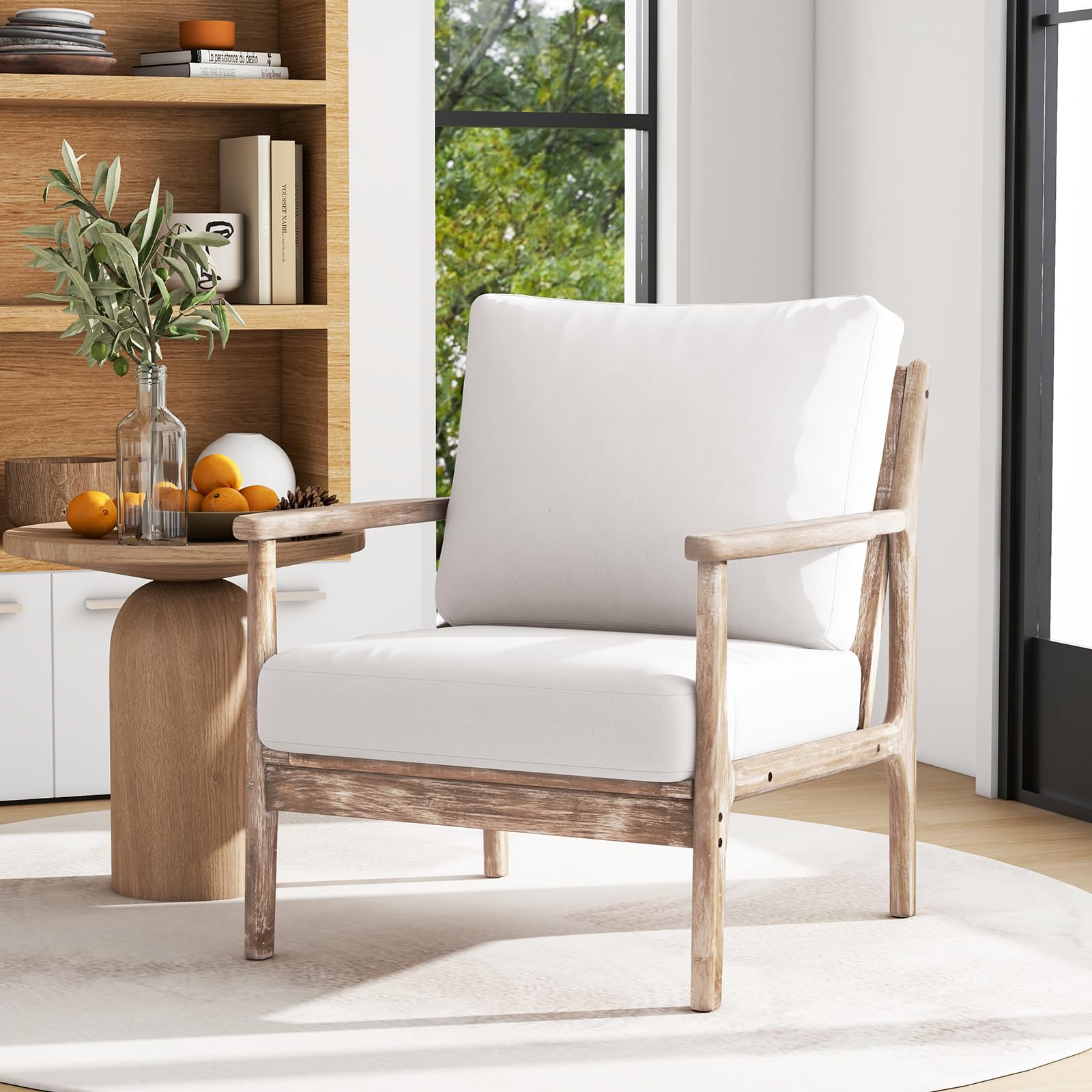 - More Exquisite Details: The breathable fabric upholstery ensures a skin-friendly touch and promotes airflow, and the rubber wood armrests are resistant to cracking and deformation. Additionally, the non-slip foot pads provide stability and prevent your floors from getting scratched.